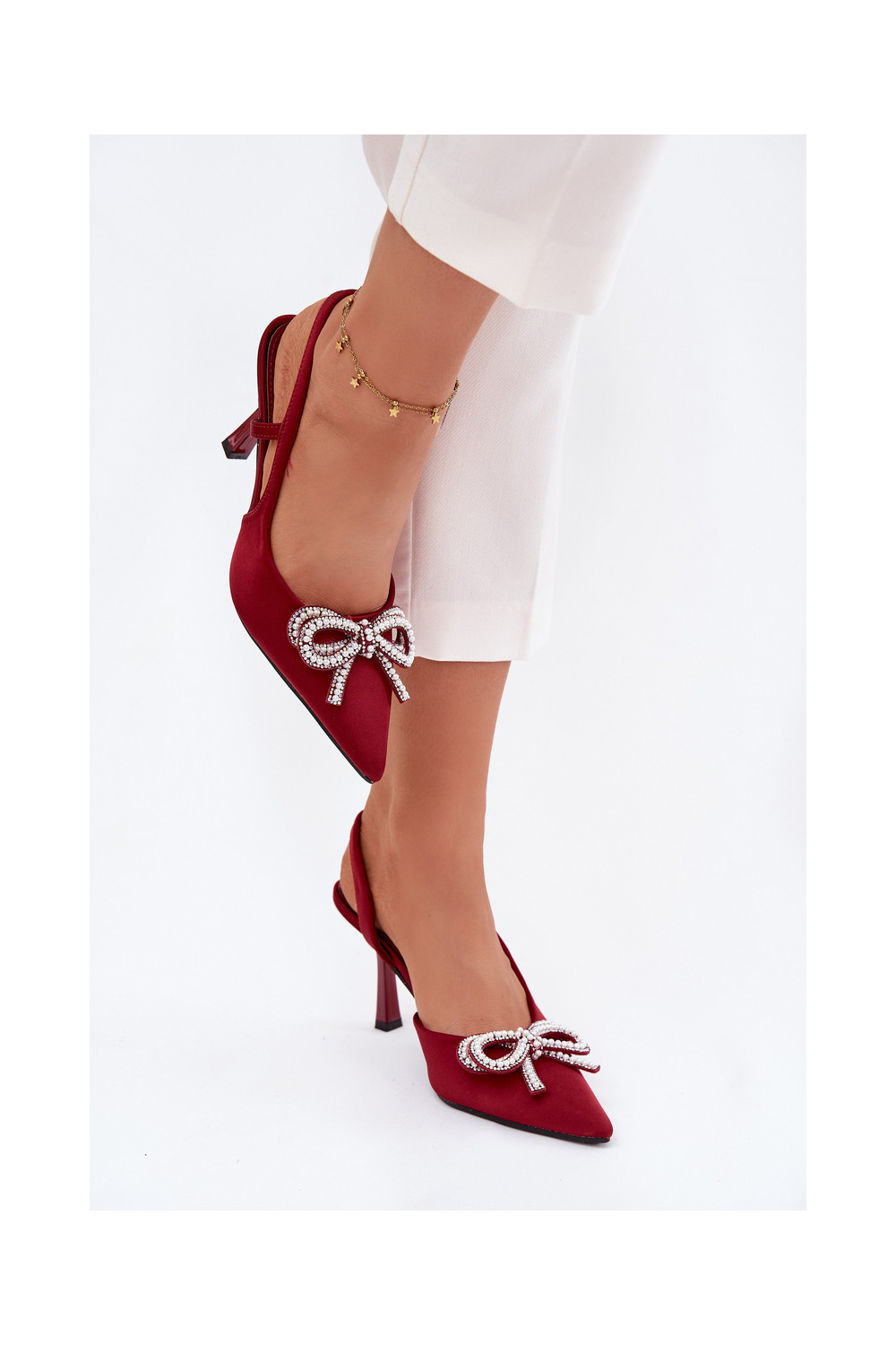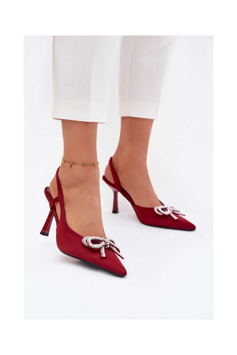 Bordo värvi kõrged kontsasaapad paeltega ja avatud kontsaga Derissa