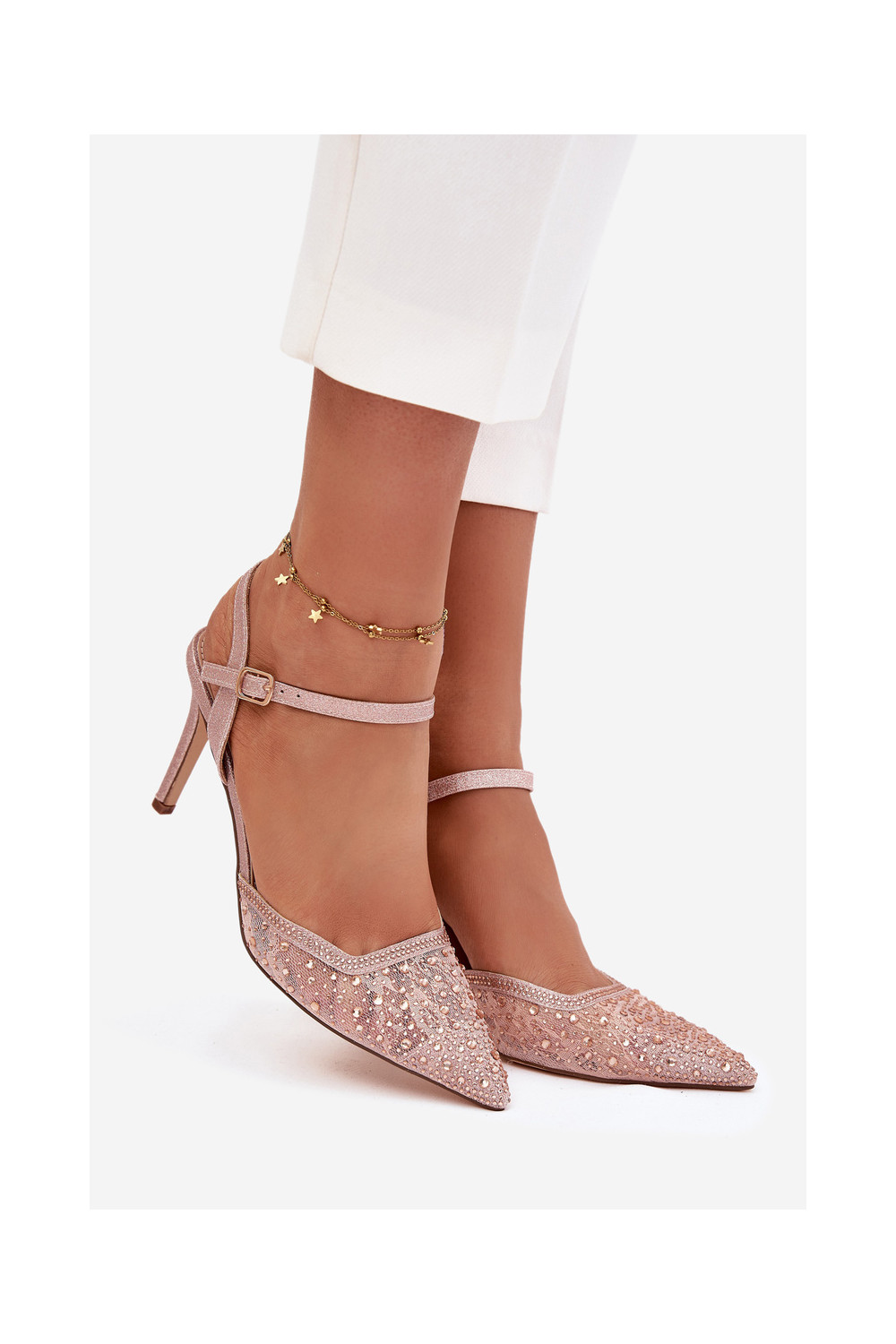 Kaunistustega kõrge kontsaga Terava ninaga jalatsid Szampańskie Nanadra