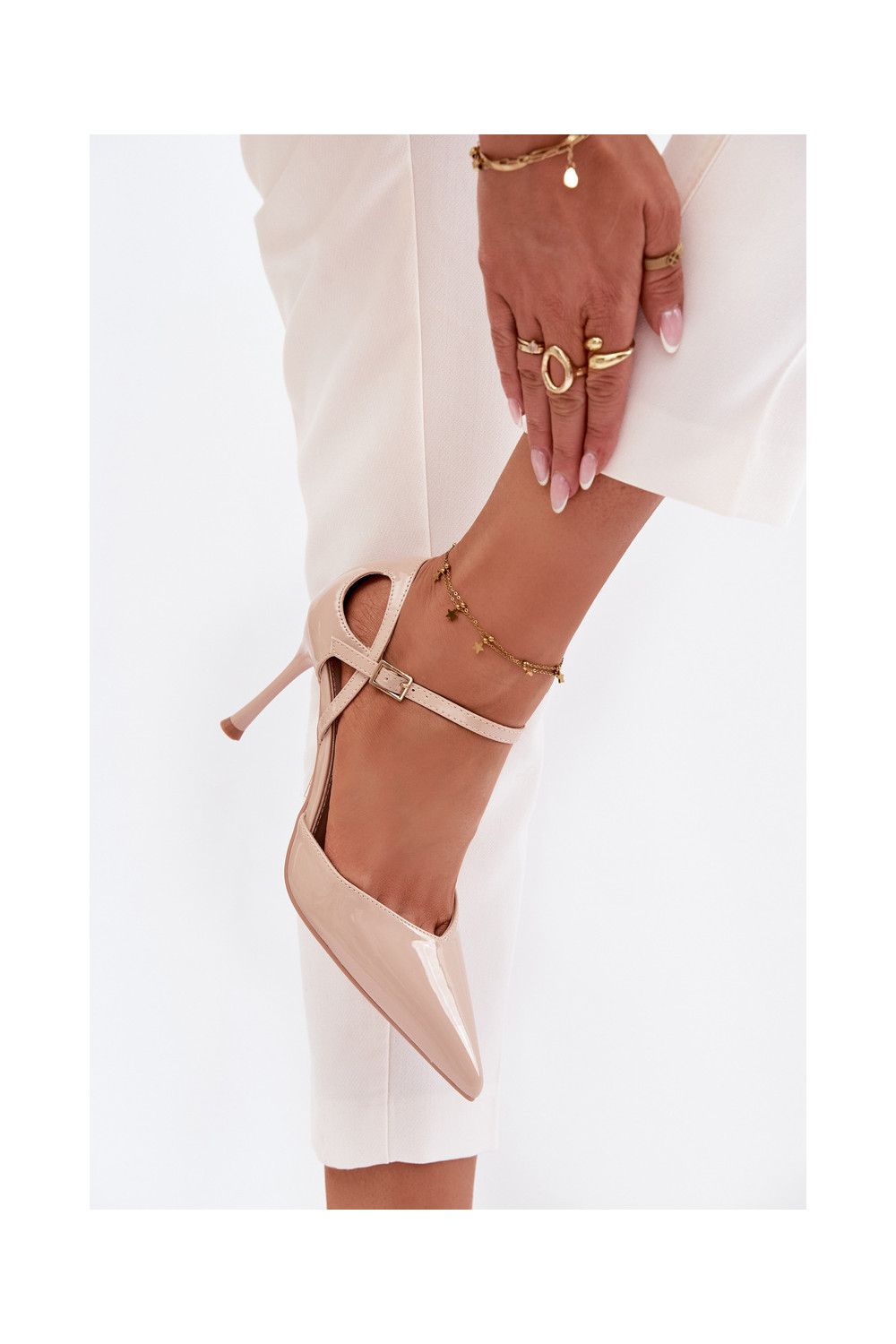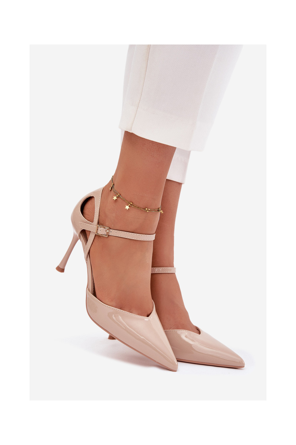 Patent leather heels with strap beige Tarilin