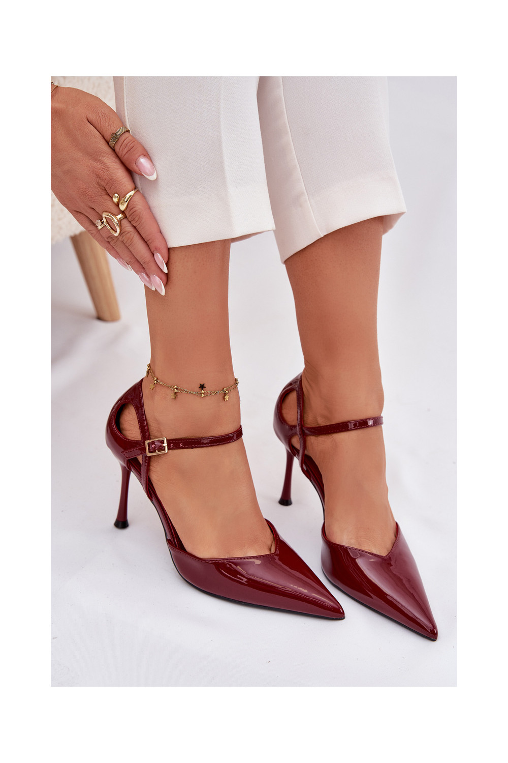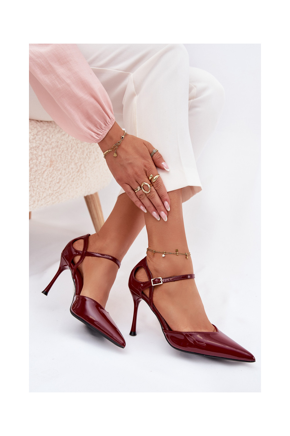 Läikivad kõrge kontsaga kingad rihmadega, bordoo värviga Tarilin