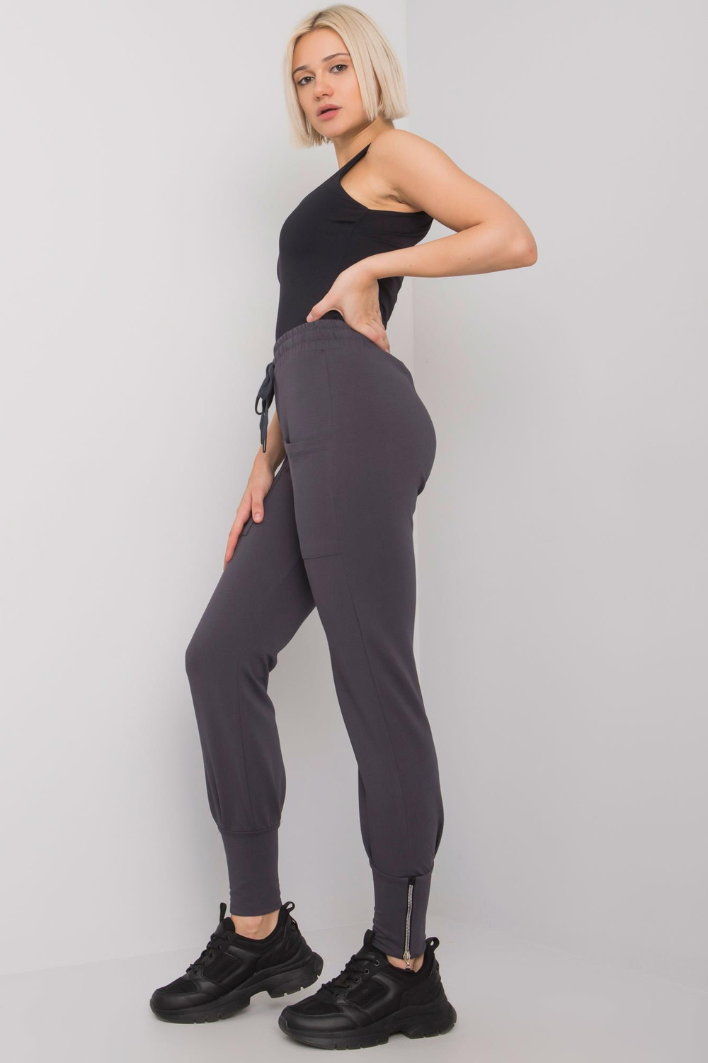 Tõmblukuga grafiitpüksid Cindy RUE PARIS. materjali koostis: 90% puuvill, 10% elastaan pesumeetod: masinpesu 30°C Tootekood: RV-DR-7341.30P domineeriv muster: mustritta Stiil: vabaaja, linna stiilis juhus: vabaaja, linnas, f