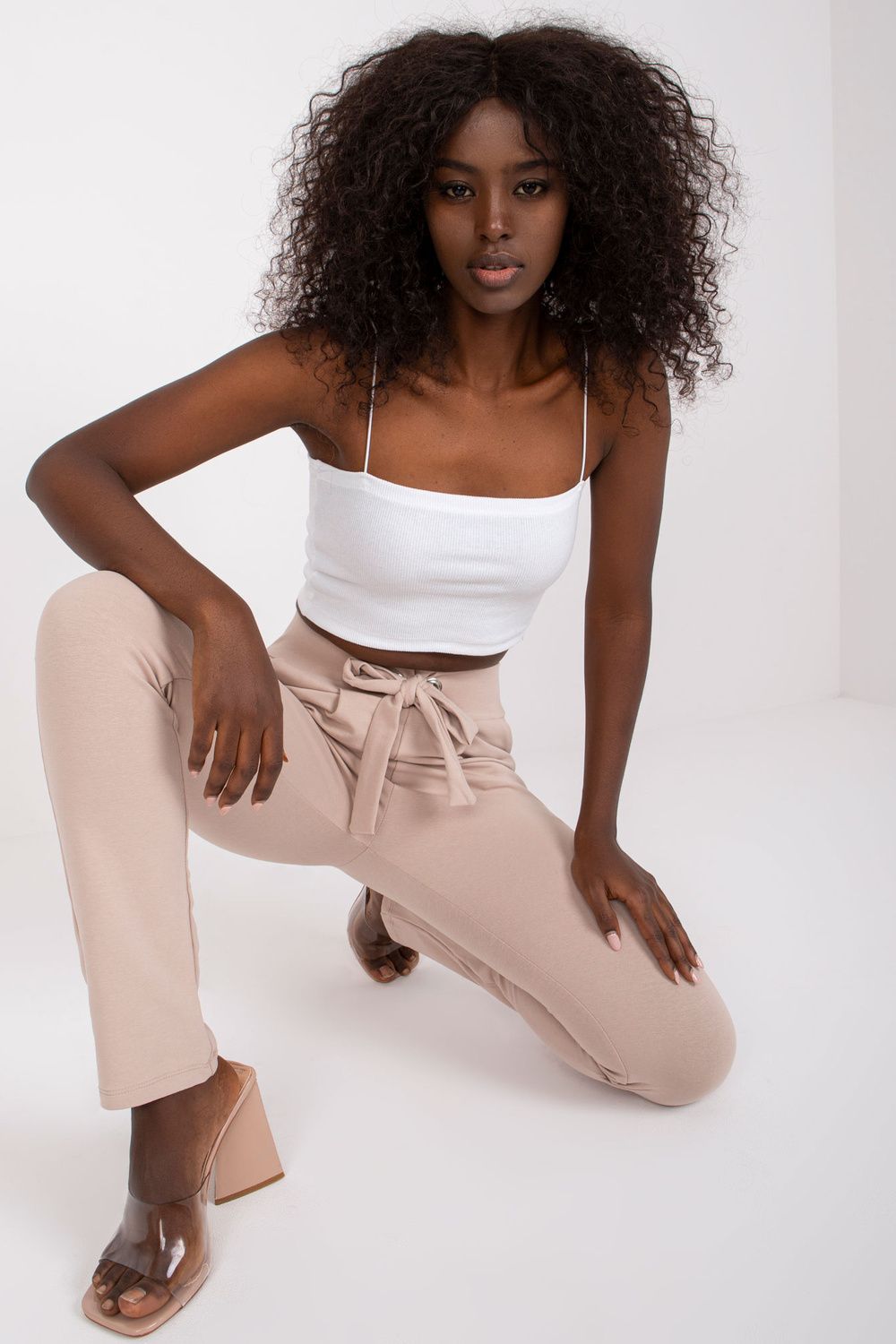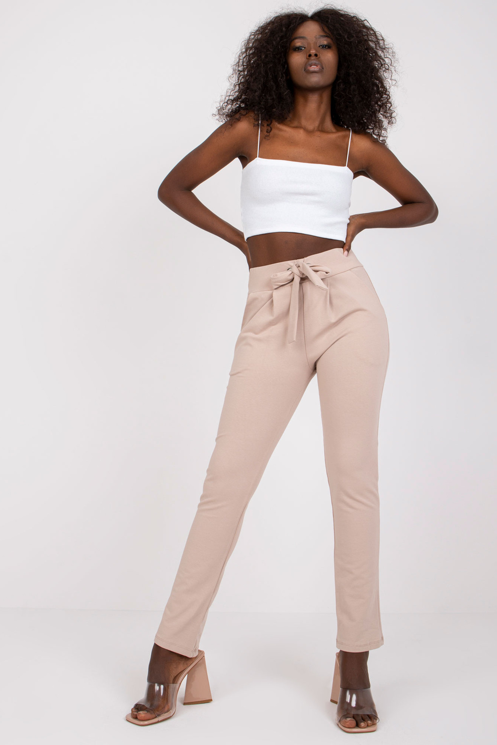 Beežid dressipüksid köitega Santos RUE PARIS . tarvikud: köide, taskud materjalkoostis: 90% puuvill, 10% elastaan pesumeetod: masinpesu 30°C Tootekood: RV-DR-7459.01X domineeriv muster: muster puudub Stiil: vabaaja, Elegantne: casu
