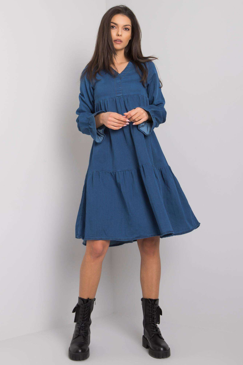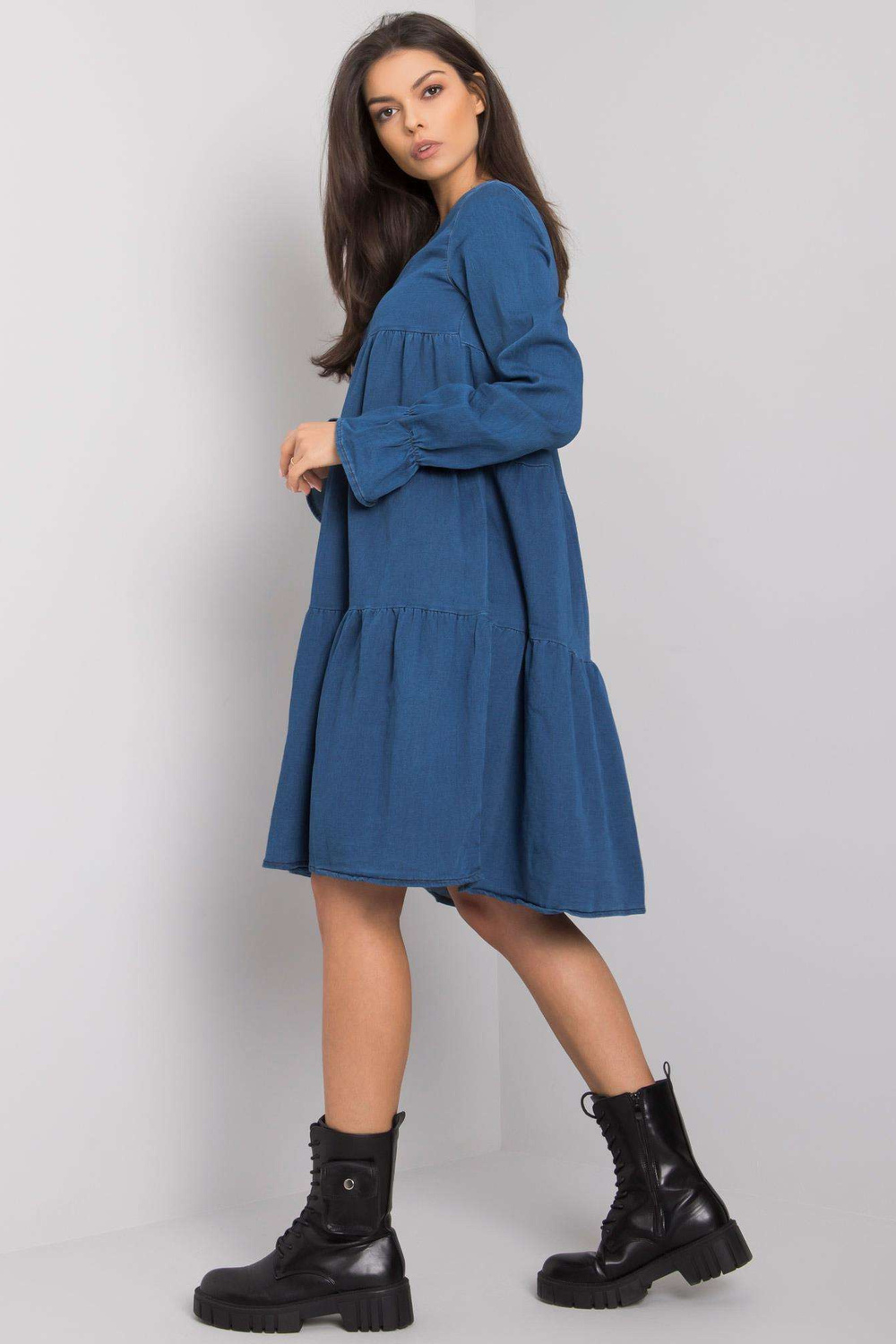 Tumesinise volangiga naiste kleit Abbeville RUE PARIS. materjalkoostis: 98% puuvill, 2% lükra pesumeetod: masinpesu 30°C Mudel kannab suurust S. Modelli mõõdud: kõrgus 173 cm, rind 83 cm, vööümbermõõt 60 cm, puusad 90 cm. Kleidi mõõdud