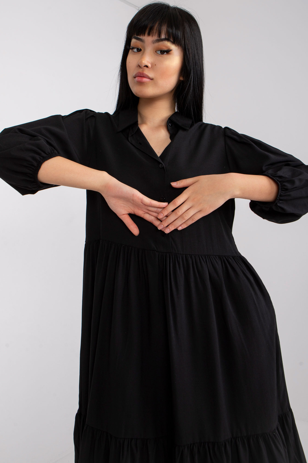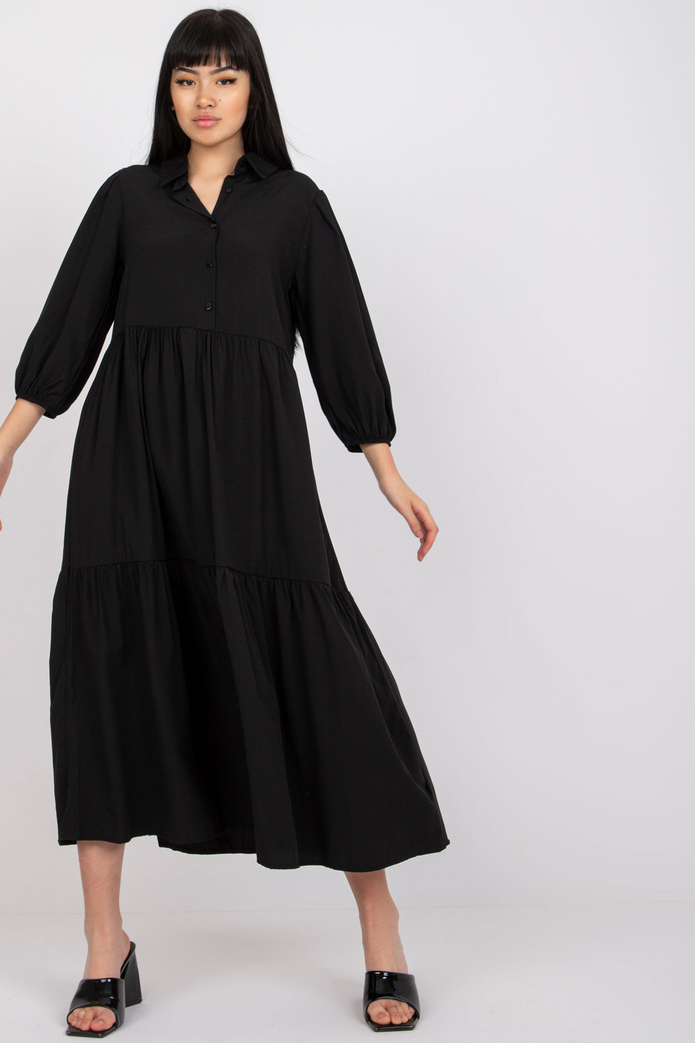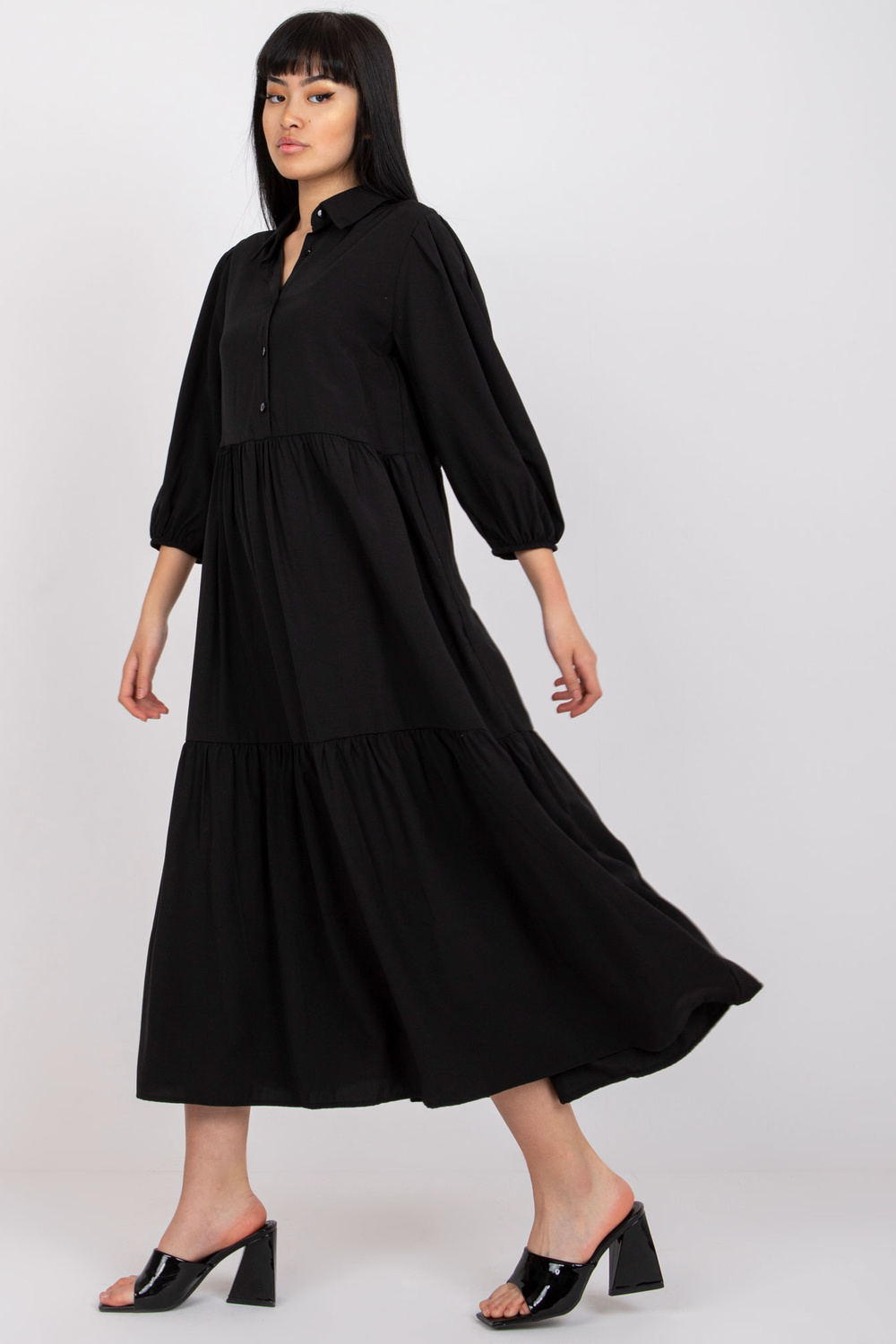 RUE PARIS puuvillase volangiga mustflareline kleit.