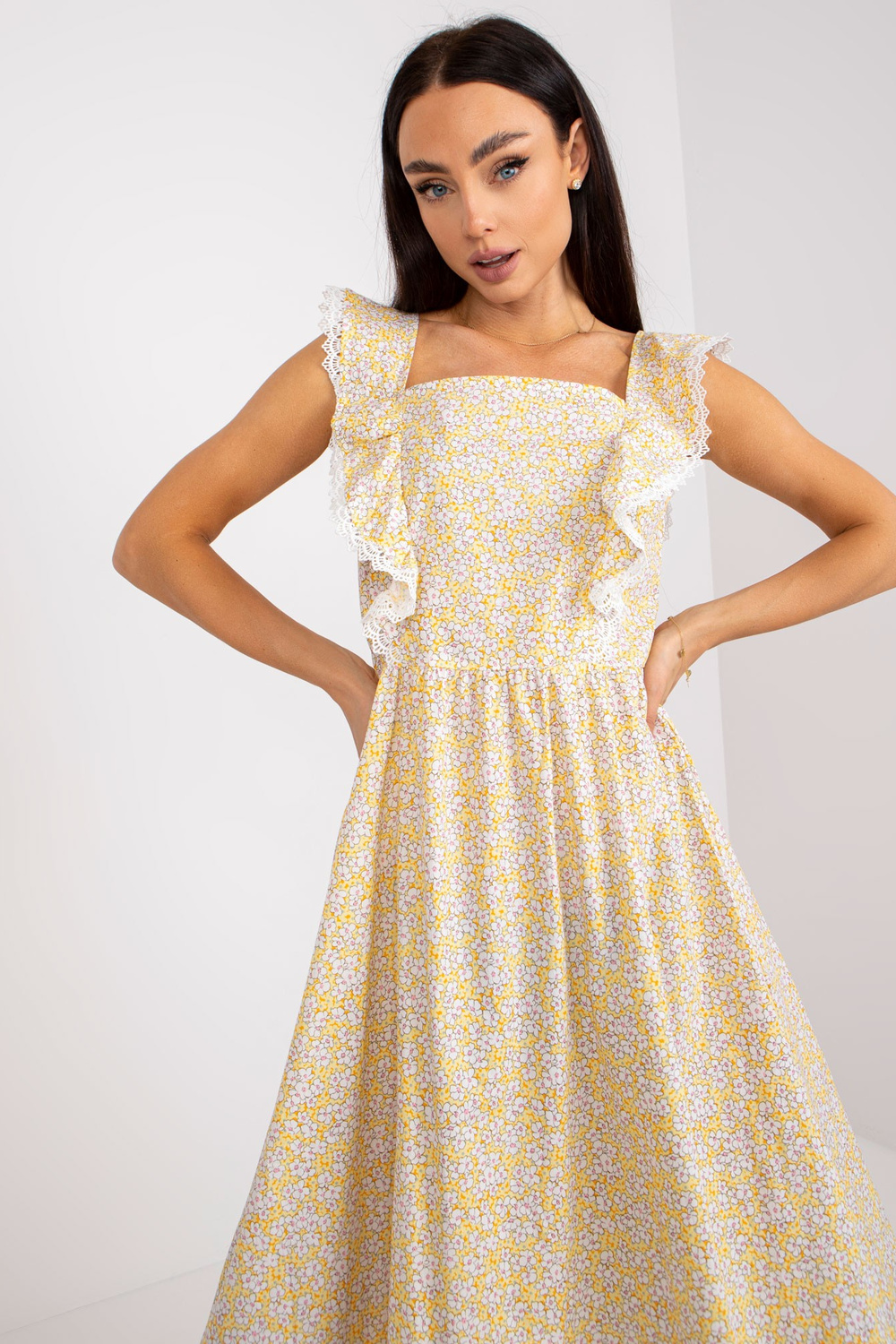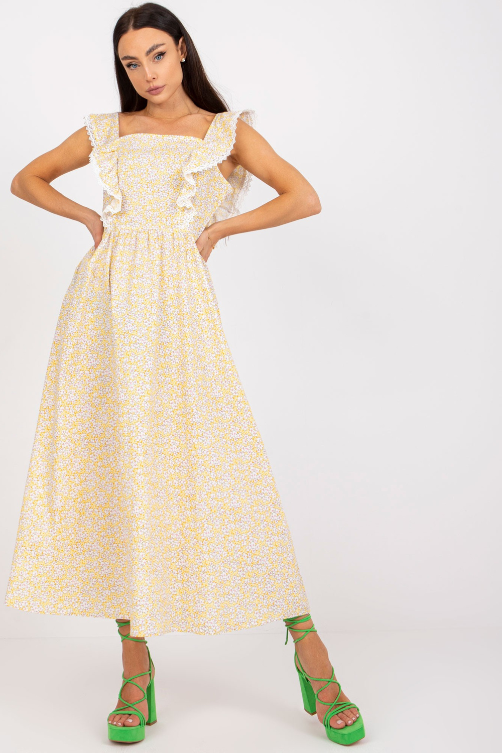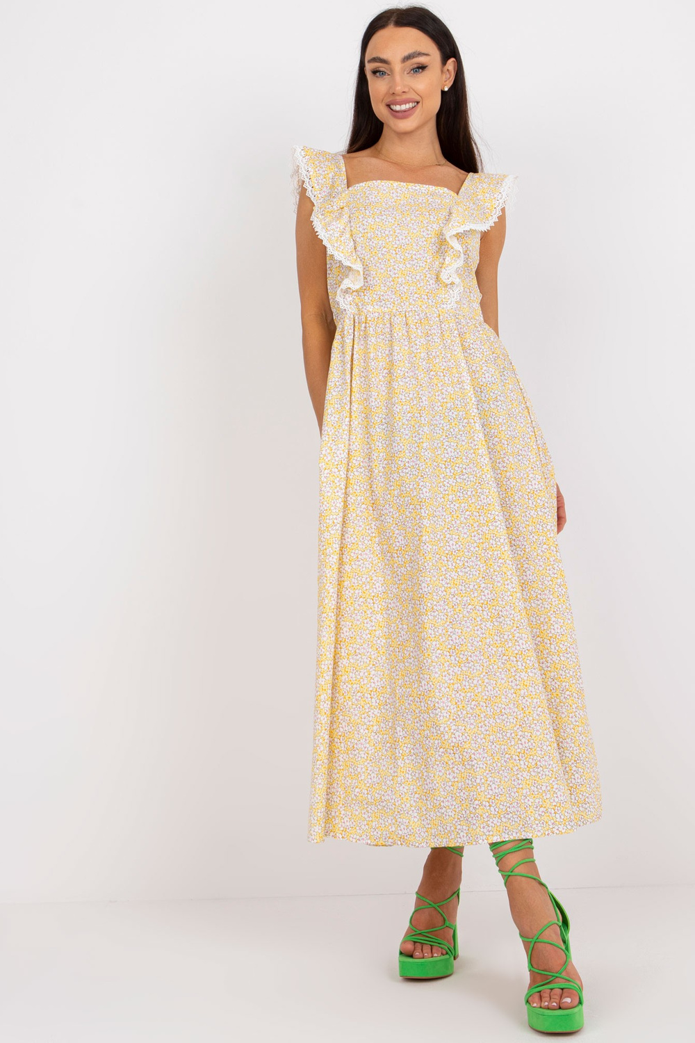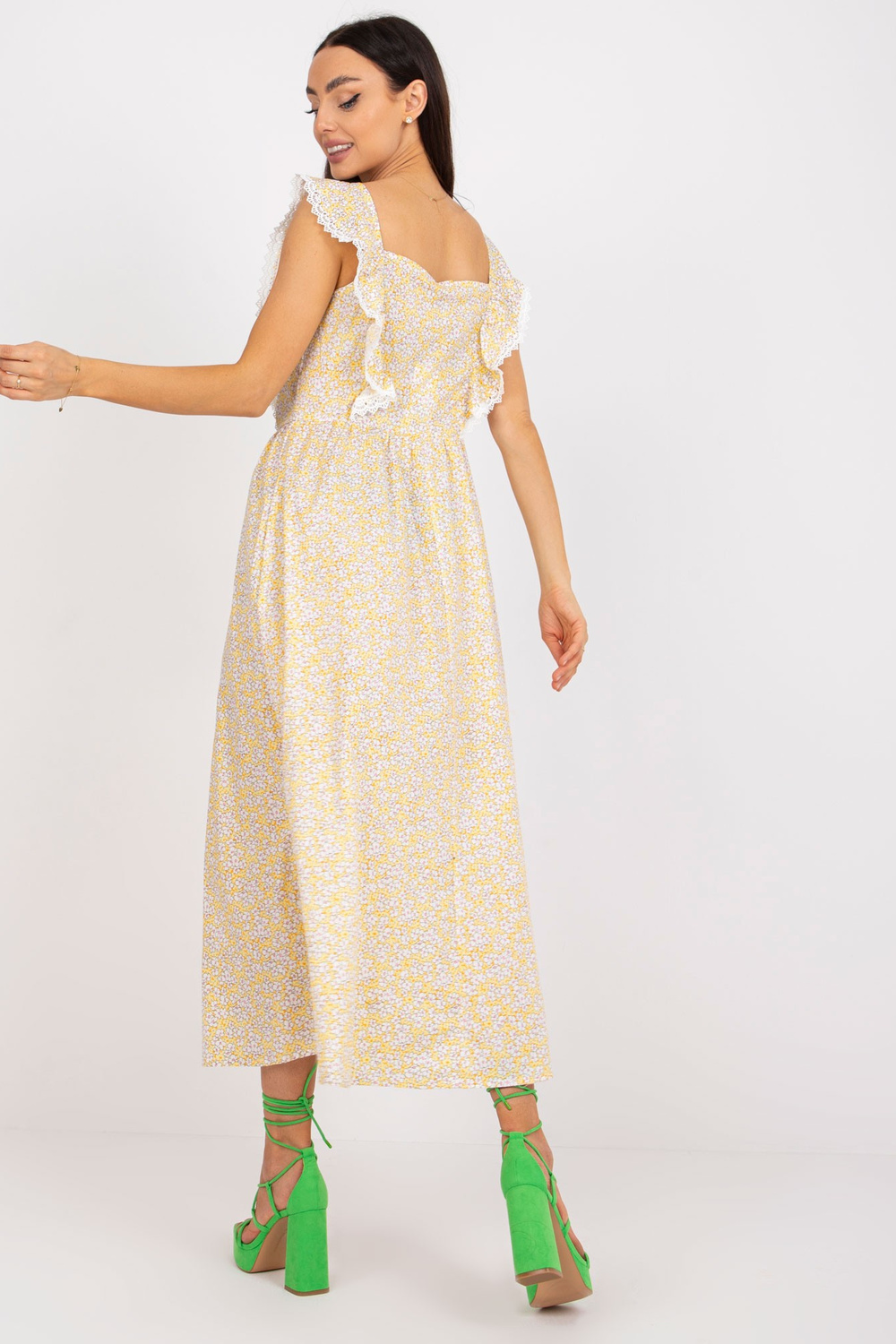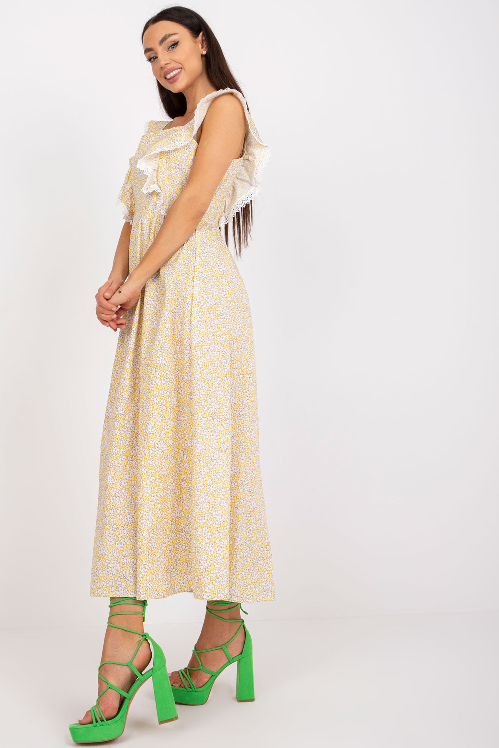 Puuvillasest prindiga kollane suvekleit.