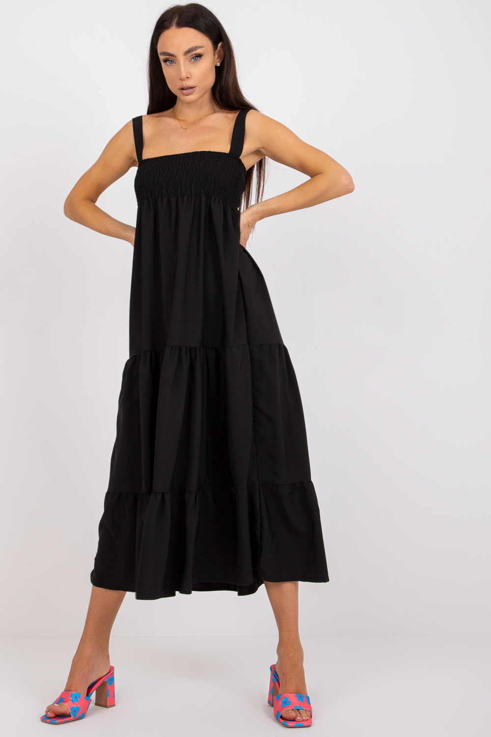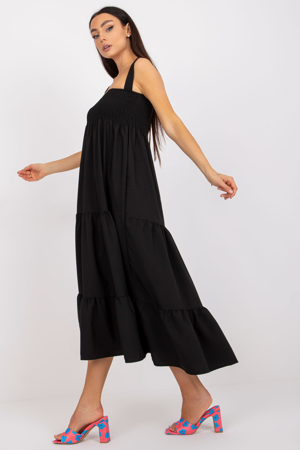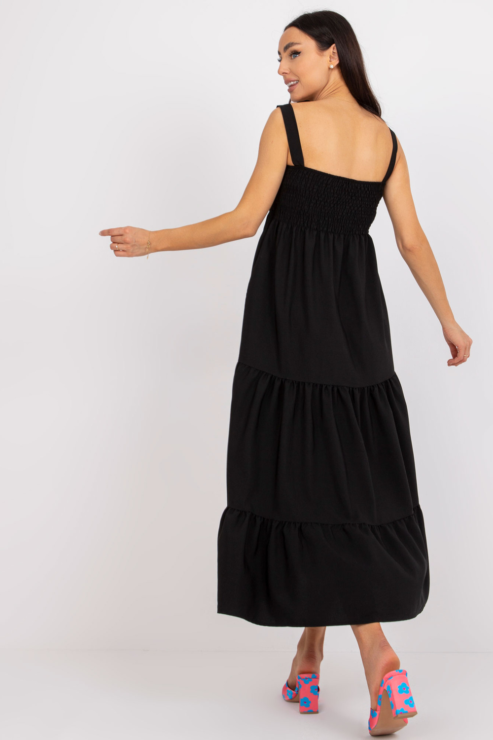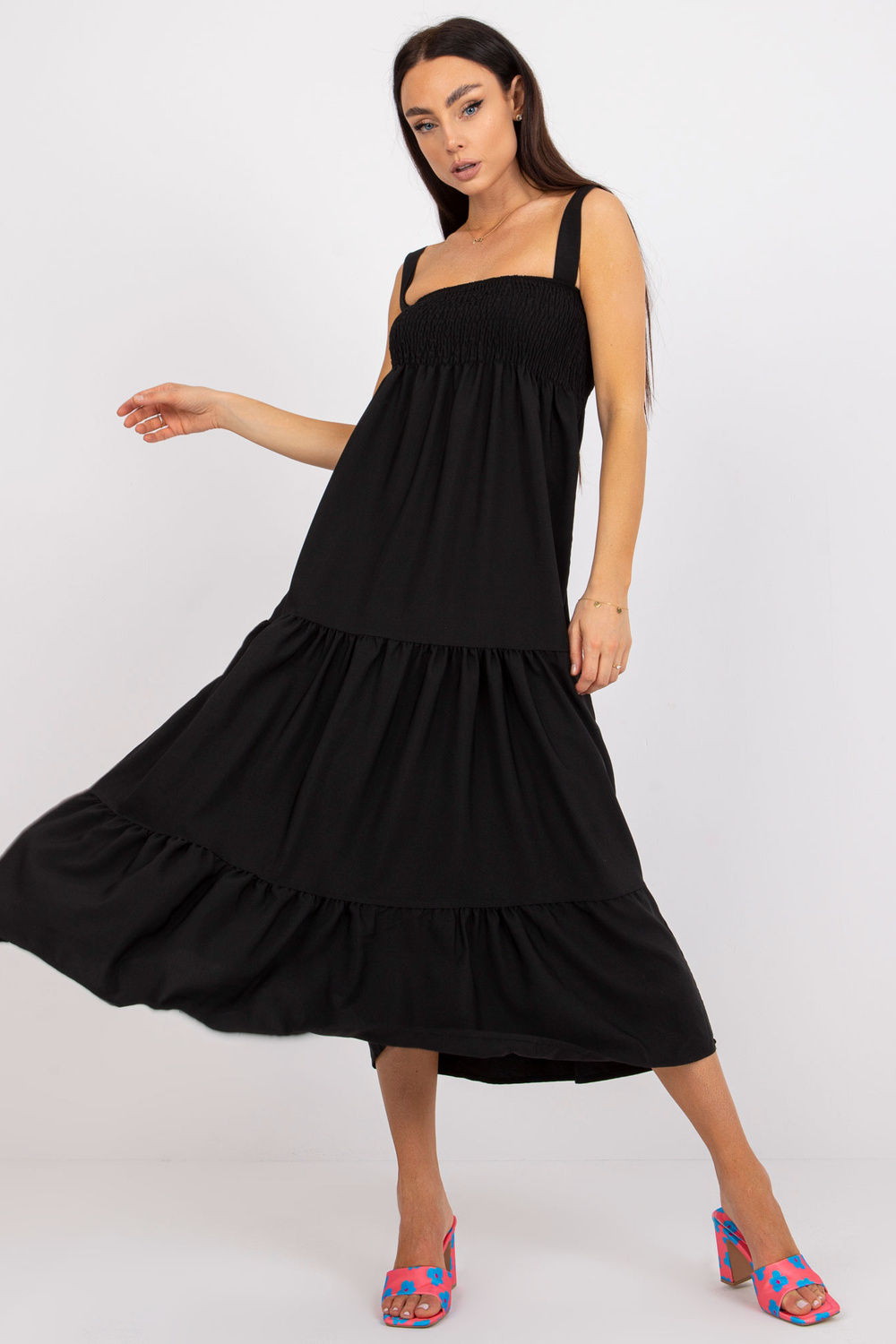 S-suuruse kleidi mõõtmed mõõdetuna tasapinnaliselt: laius kaenla alt - 25 cm, üldpikkus - 128 cm.