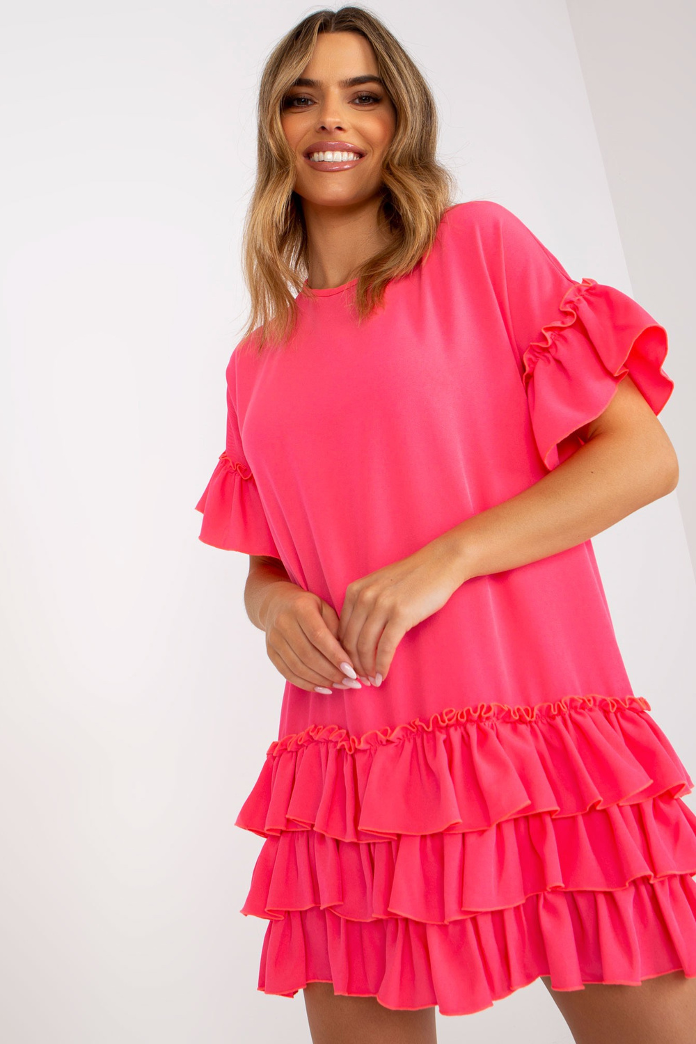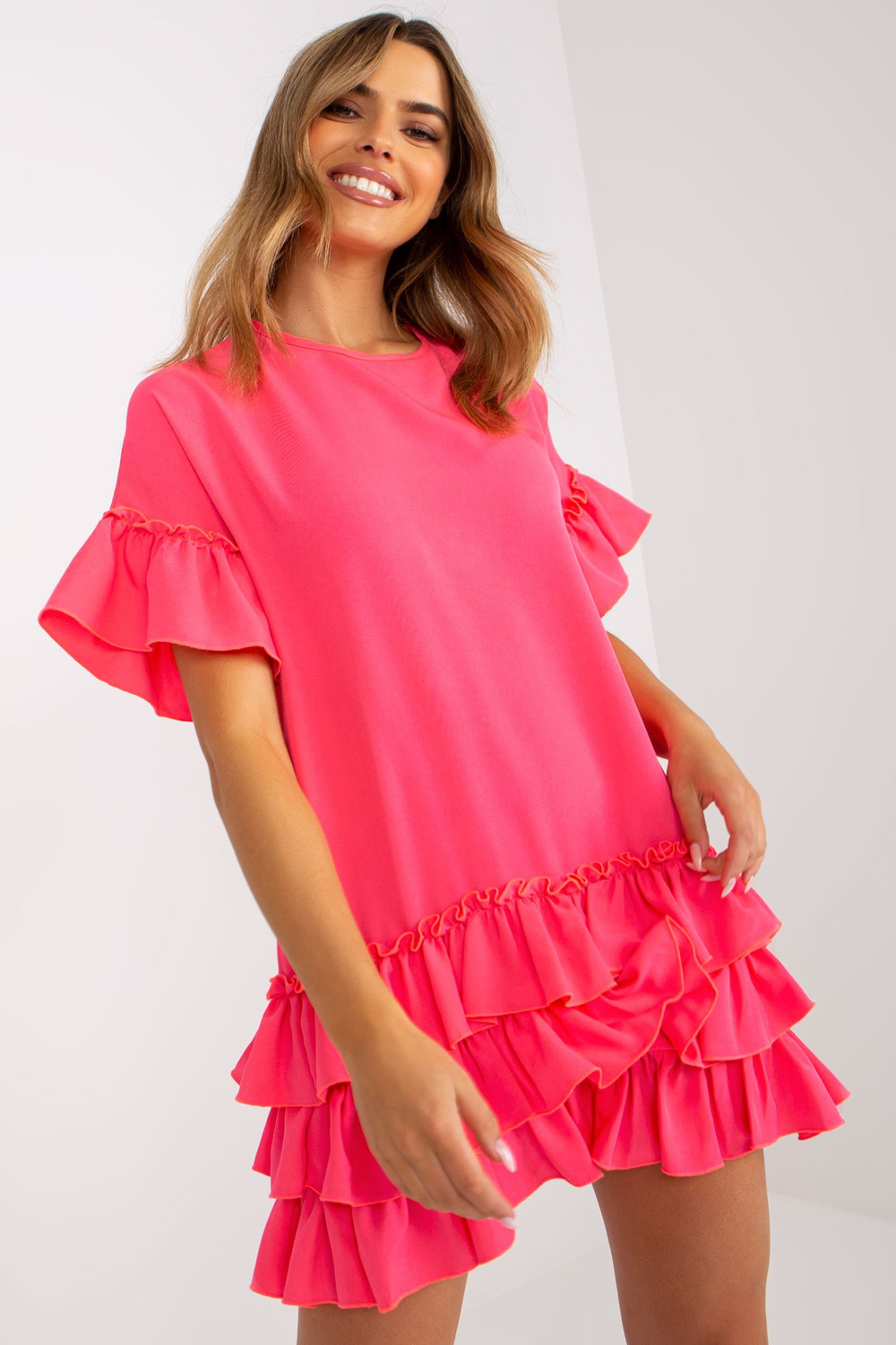 Fluopink satside ja lühikeste varrukatega kleit RUE PARIS .