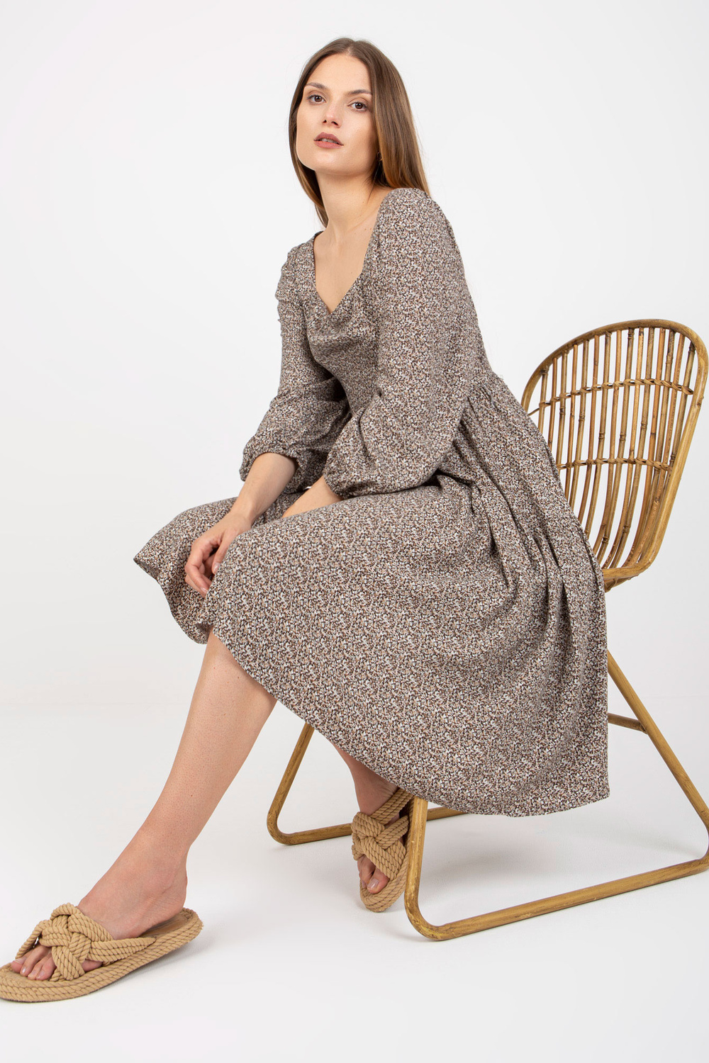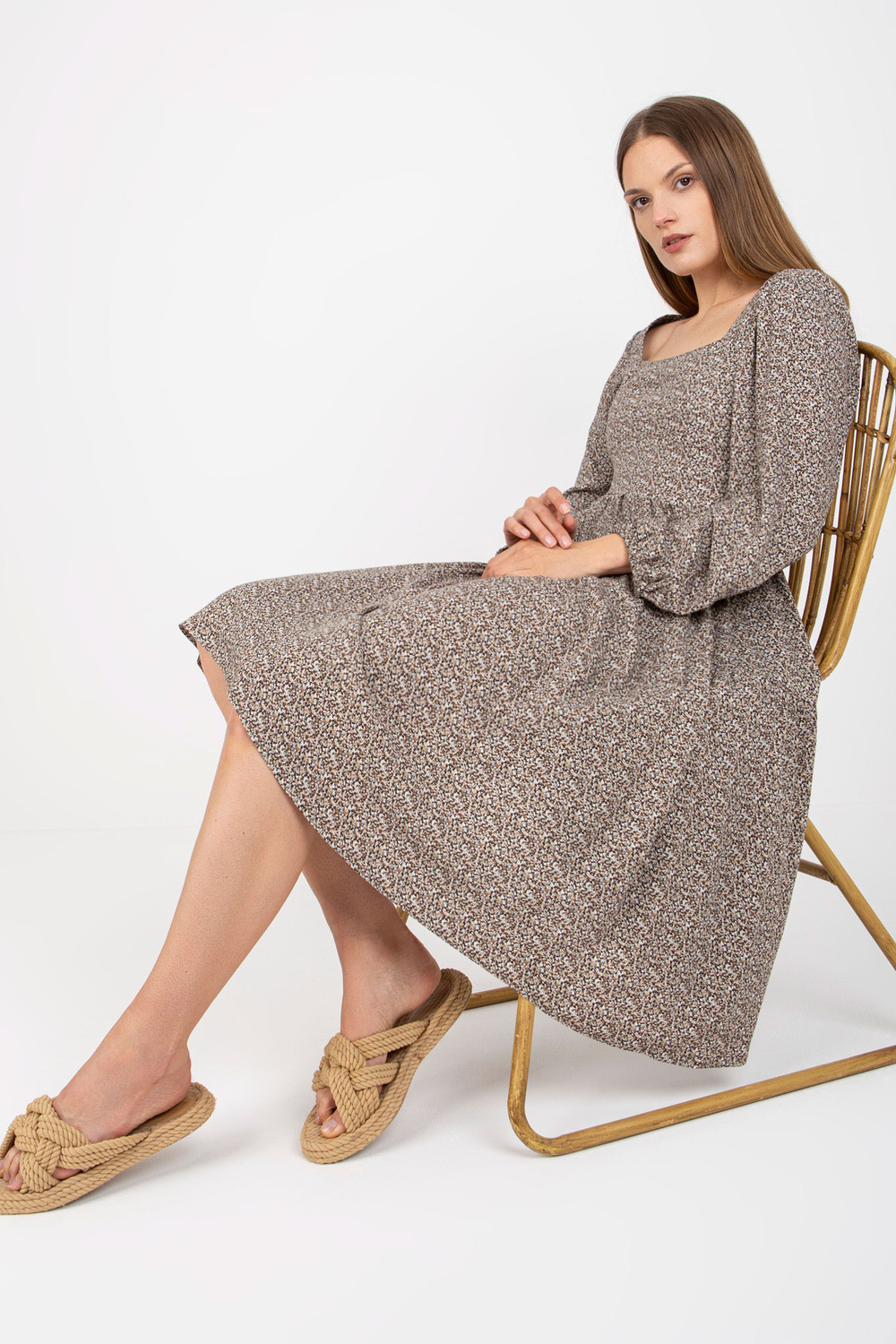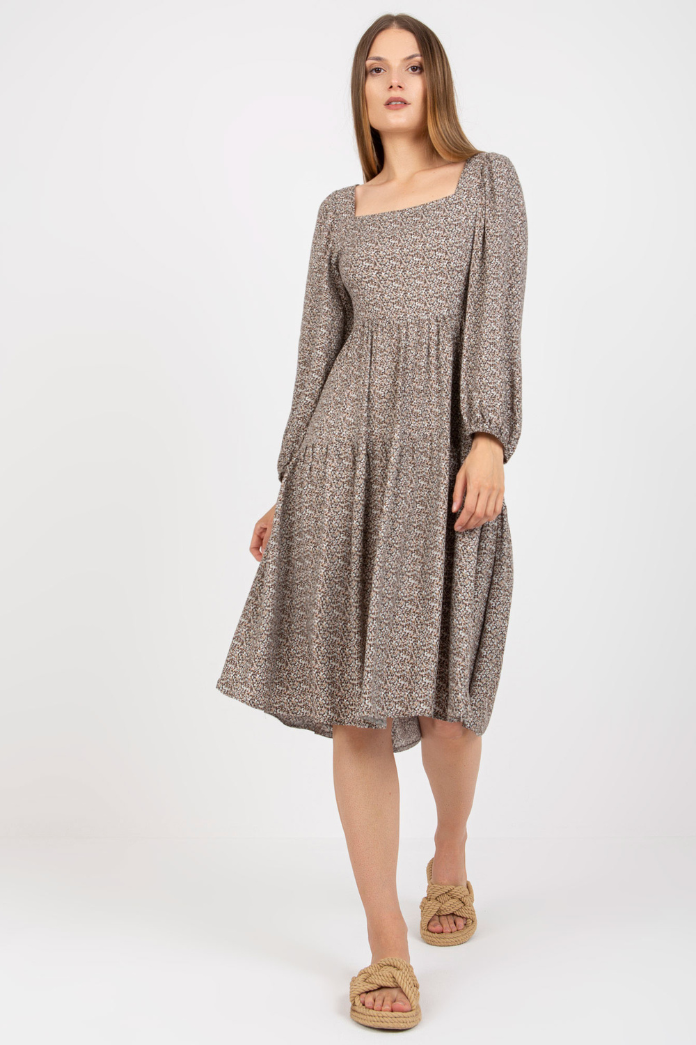 Beež midikleit viskoostrükistega ZULUNA. materjali koostis: viskoos, polüester pesumeetod: masinpesu 40°C