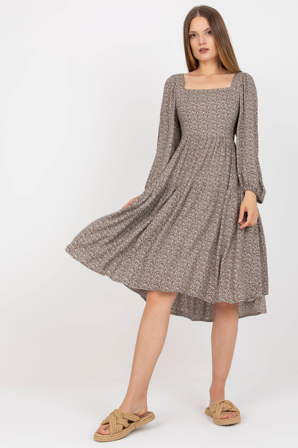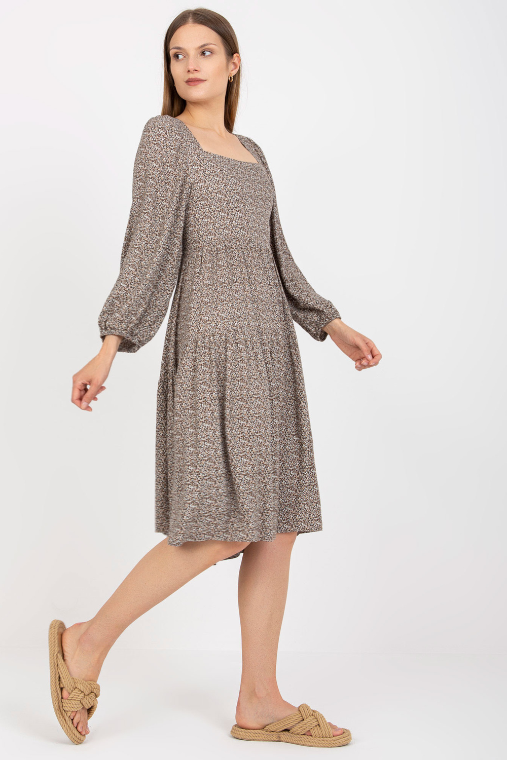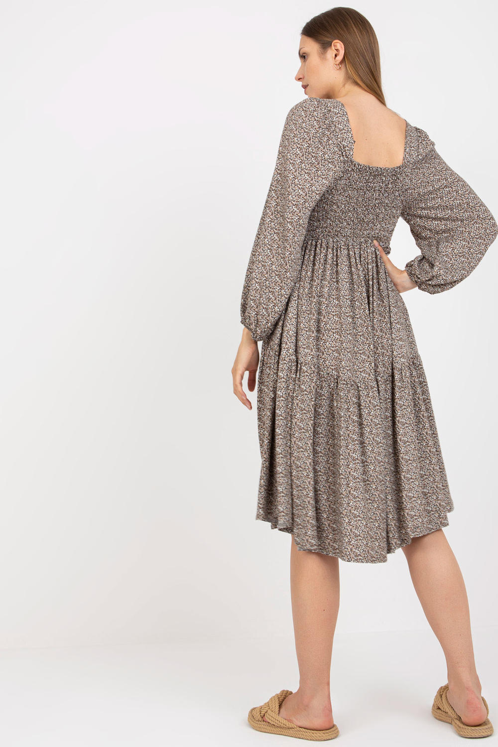 Beež midikleit viskoostrükistega ZULUNA. materjali koostis: viskoos, polüester pesumeetod: masinpesu 40°C