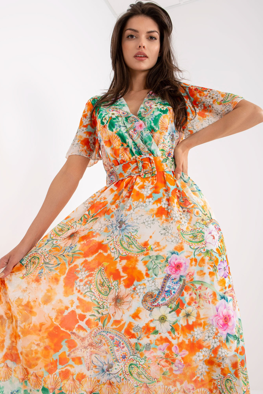 Ühe suuruse kleidi mõõtmed tasapinnaliselt: laius kaenla alt - 40 cm, kogupikkus - 121 cm
