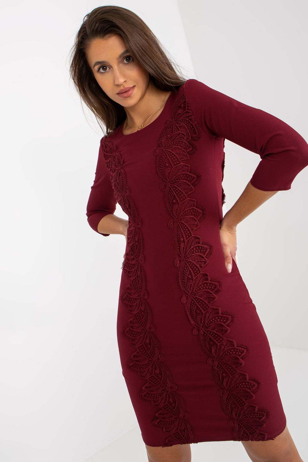 3/4 varrukatega Burgundia pliiatsiga kokteilikleit.