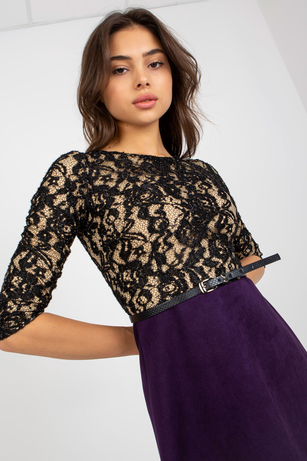 Must ja tumelilla 3/4 varrukatega kokteilikleit.