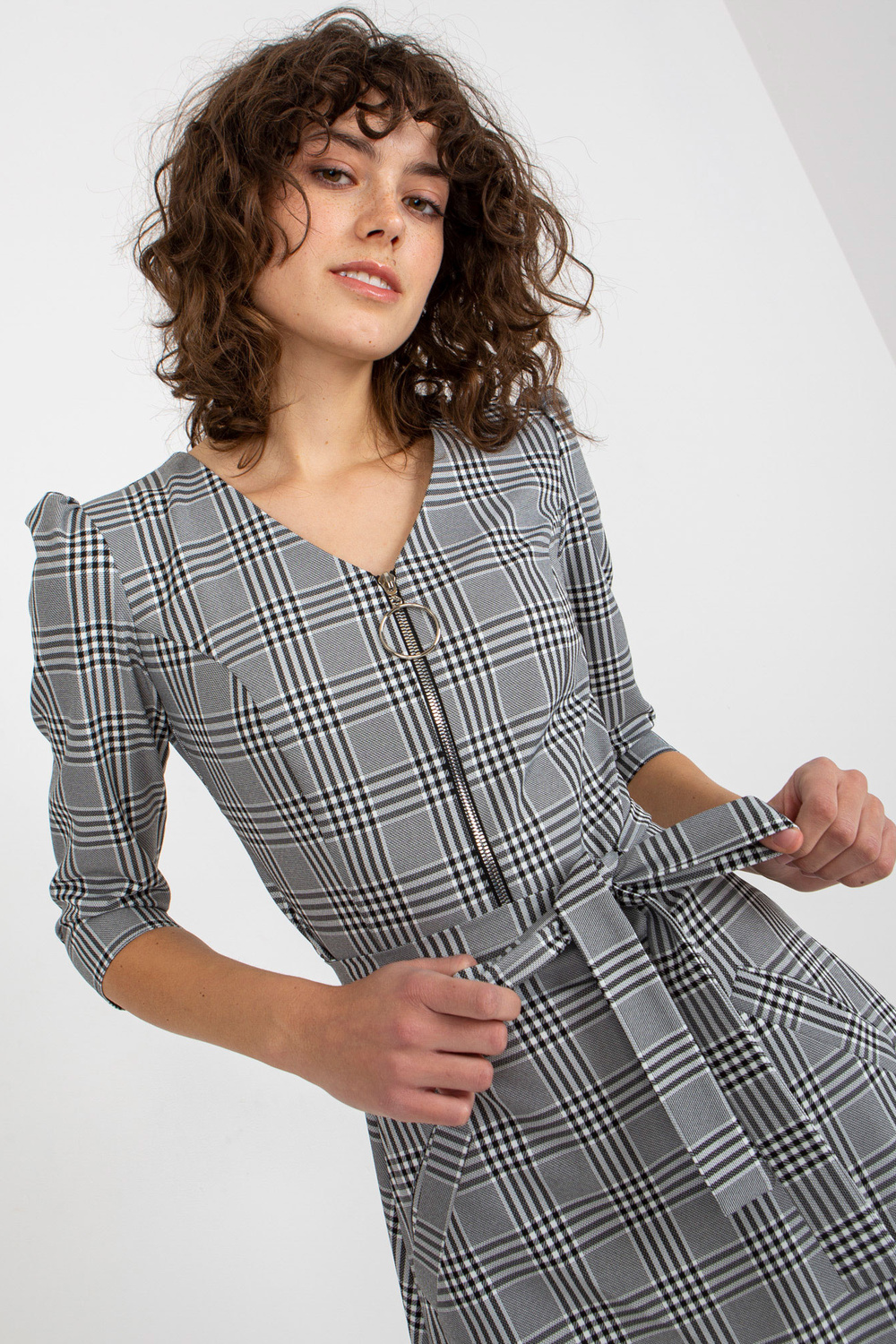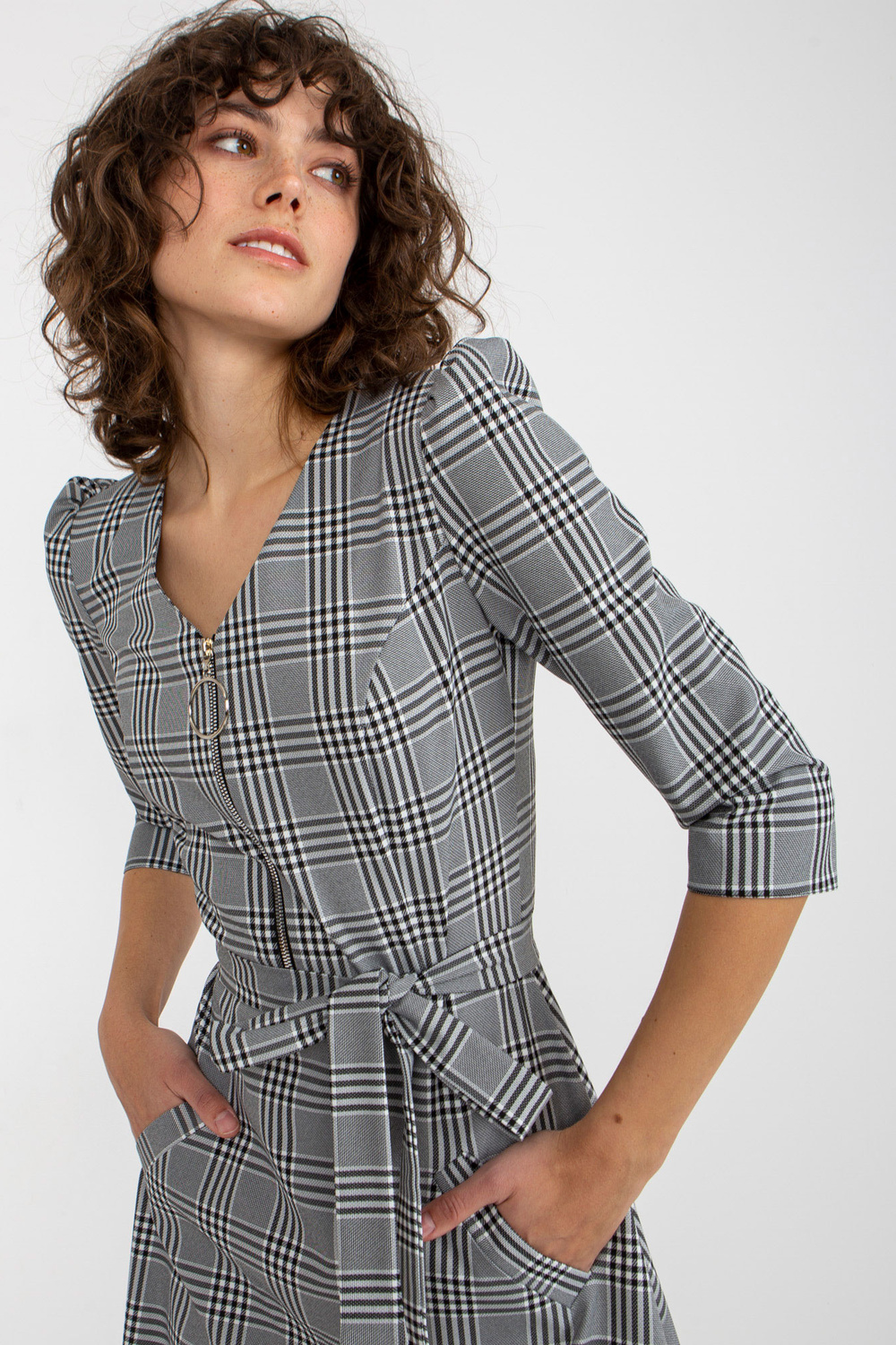 Taskutega valge ja musta ruuduline kokteilikleit.