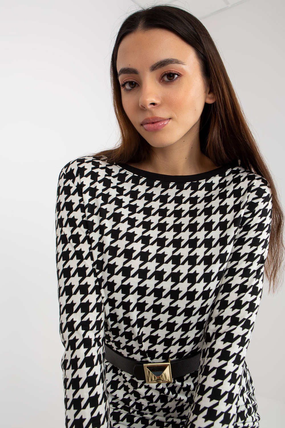 Must-valge elegantne kokteilikleit hagijahambaga OCH BELLA.