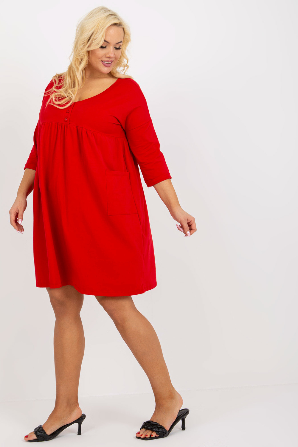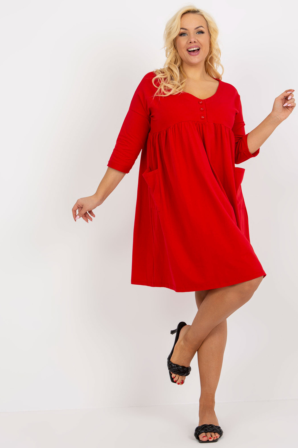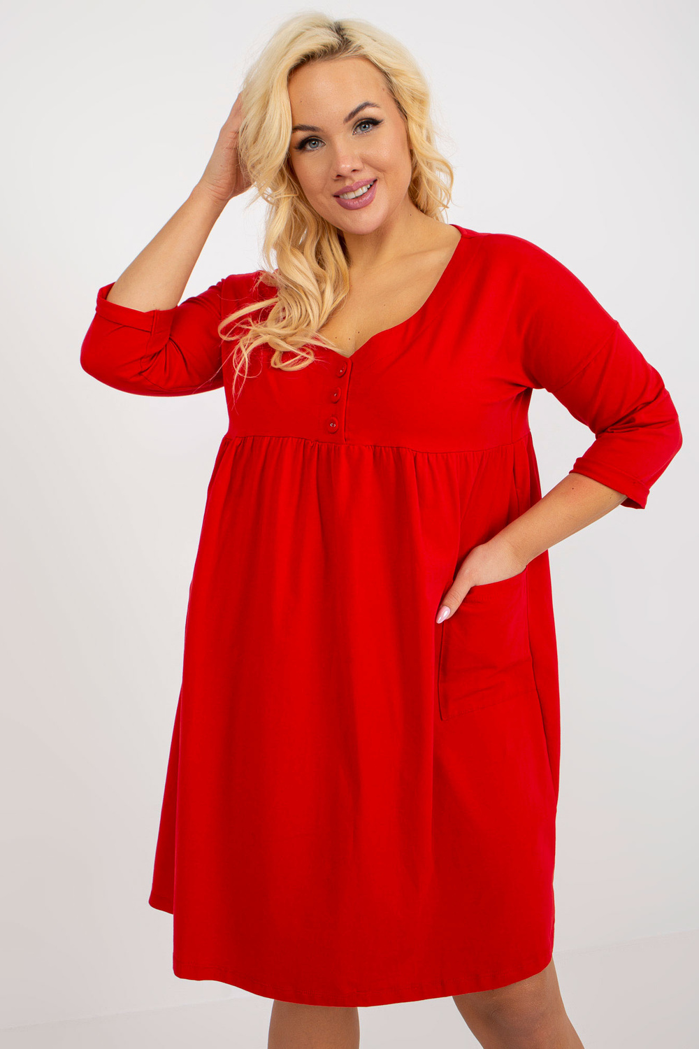 Punane pluss suuruses põhikleit kaeluses nööpidega.