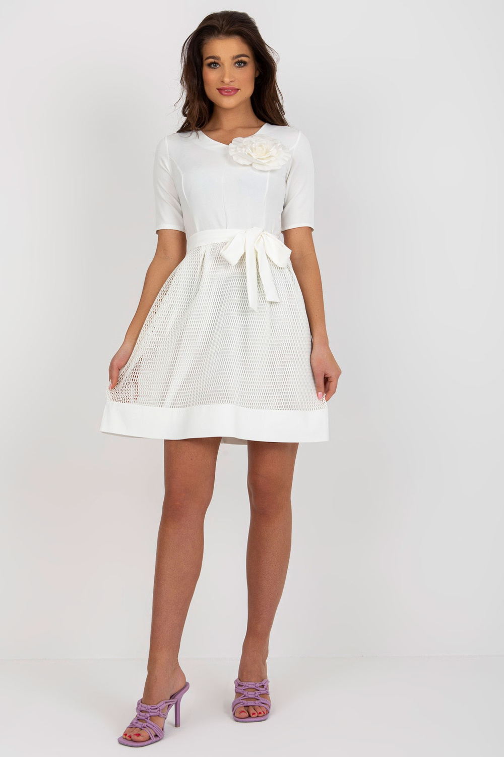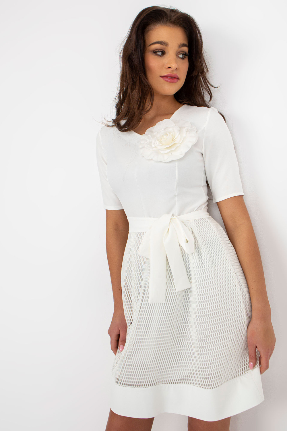 Ecru mini kokteilikleit vööga.