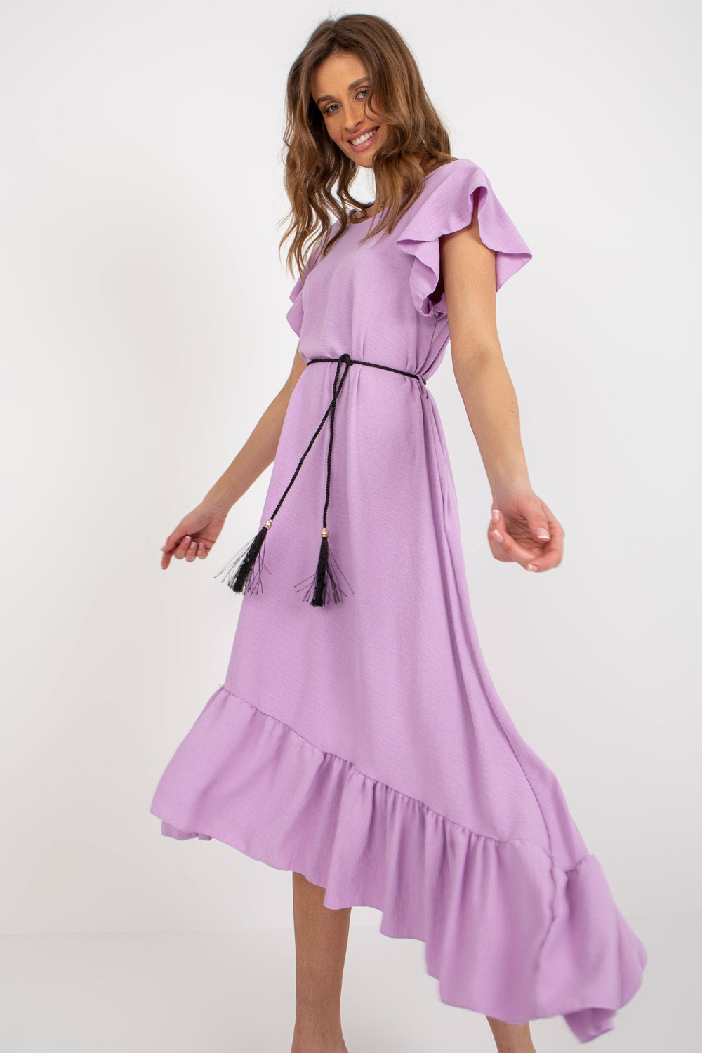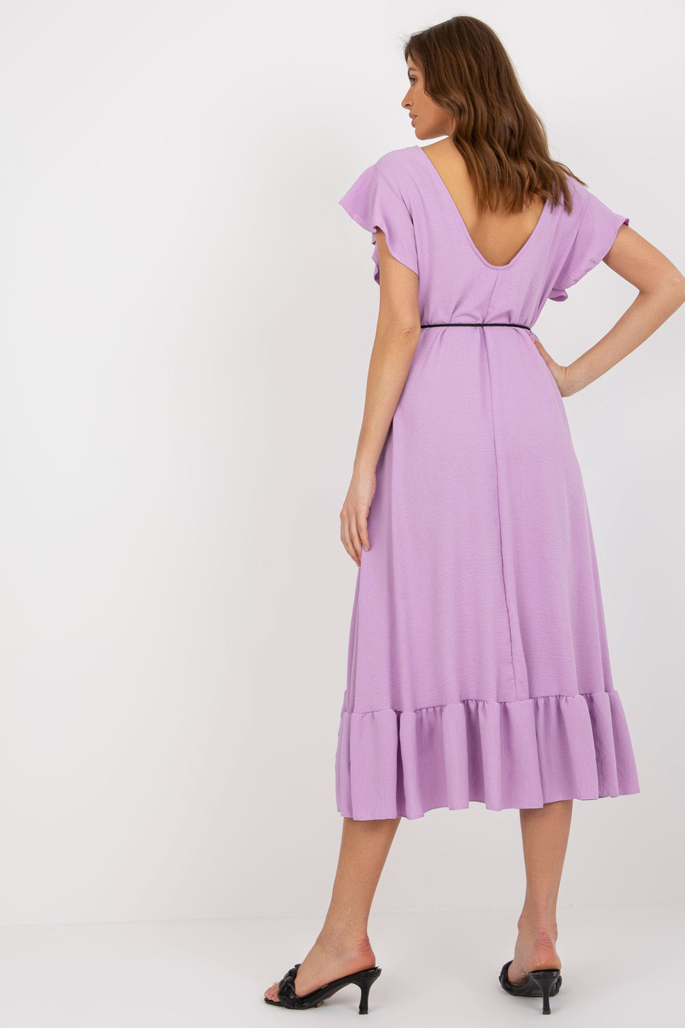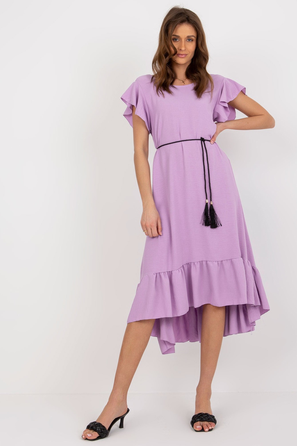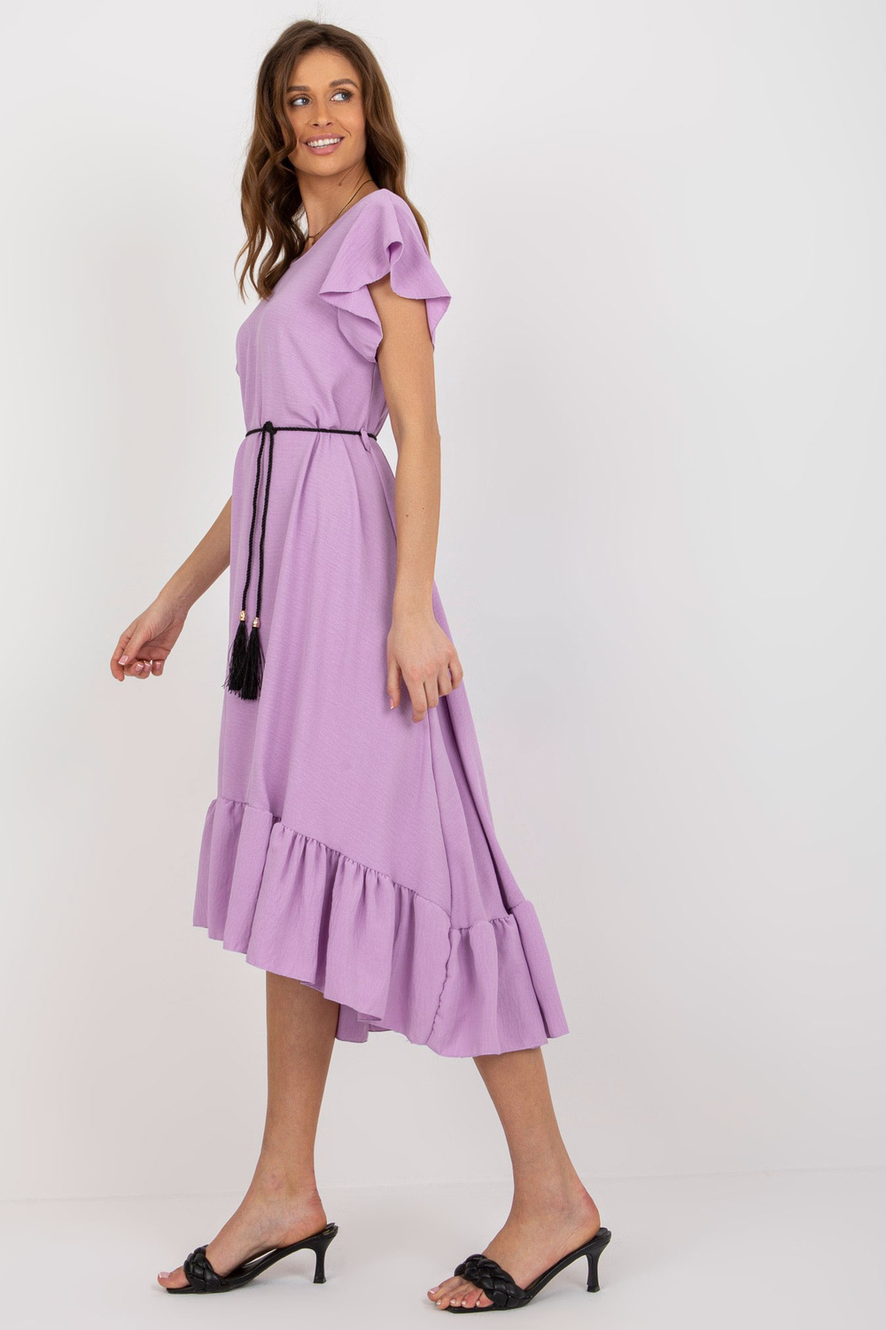 Helilla midi-kleit volangi ja narmastega.