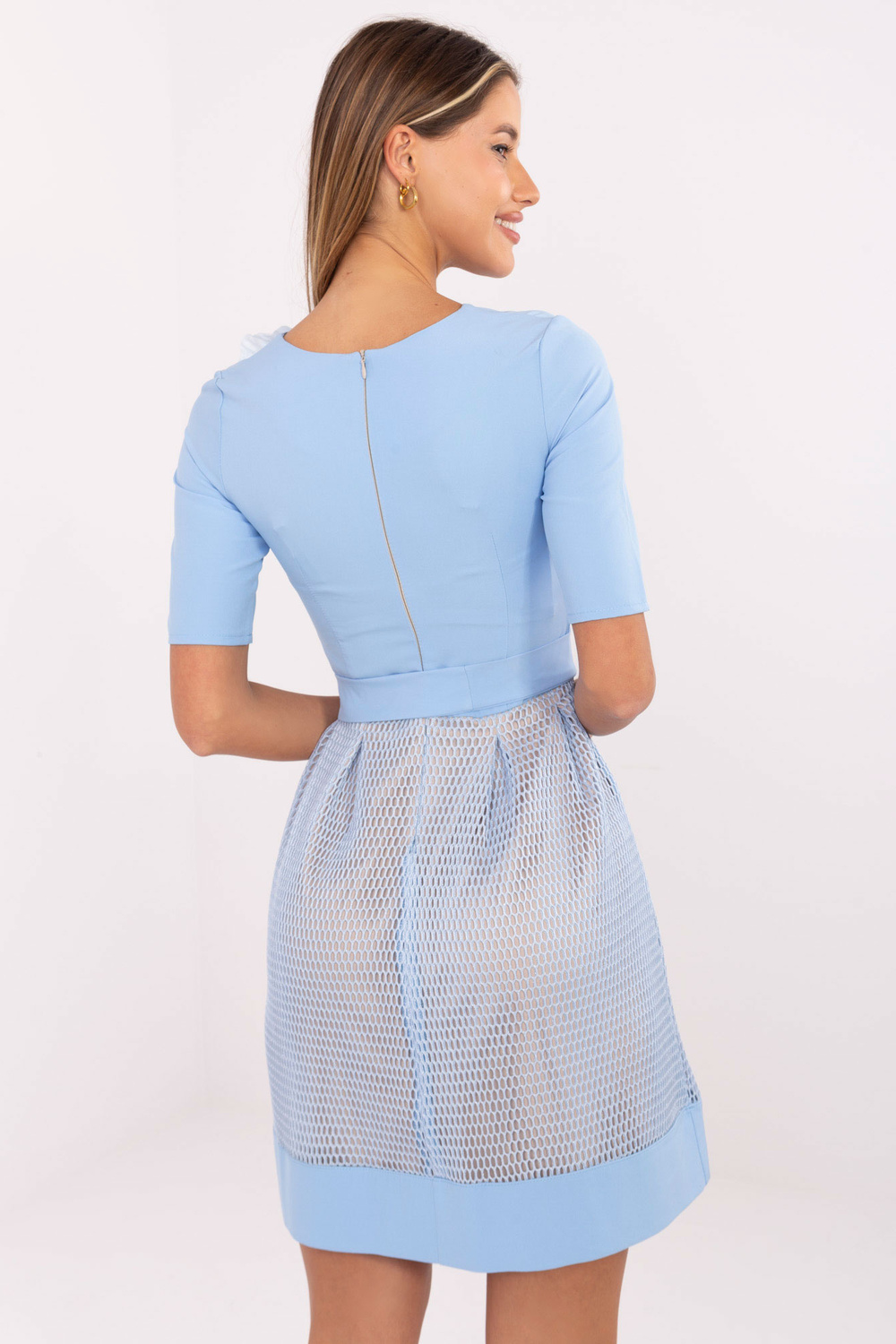 Helesinine laienev kokteilikleit pulmadeks. tootekood: LK-SK-506551.76P domineeriv muster: materjali mitmekesine tekstuur Stiil: Elegantne sündmus: õhtuks, pulmadeks, kohtinguks Modell kannab suurust 36. Modelli mõõdud: kõrgus 172 cm,