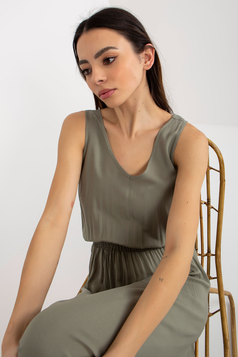 Khaki värvusega maksikleit, varrukateta FRESH MADE