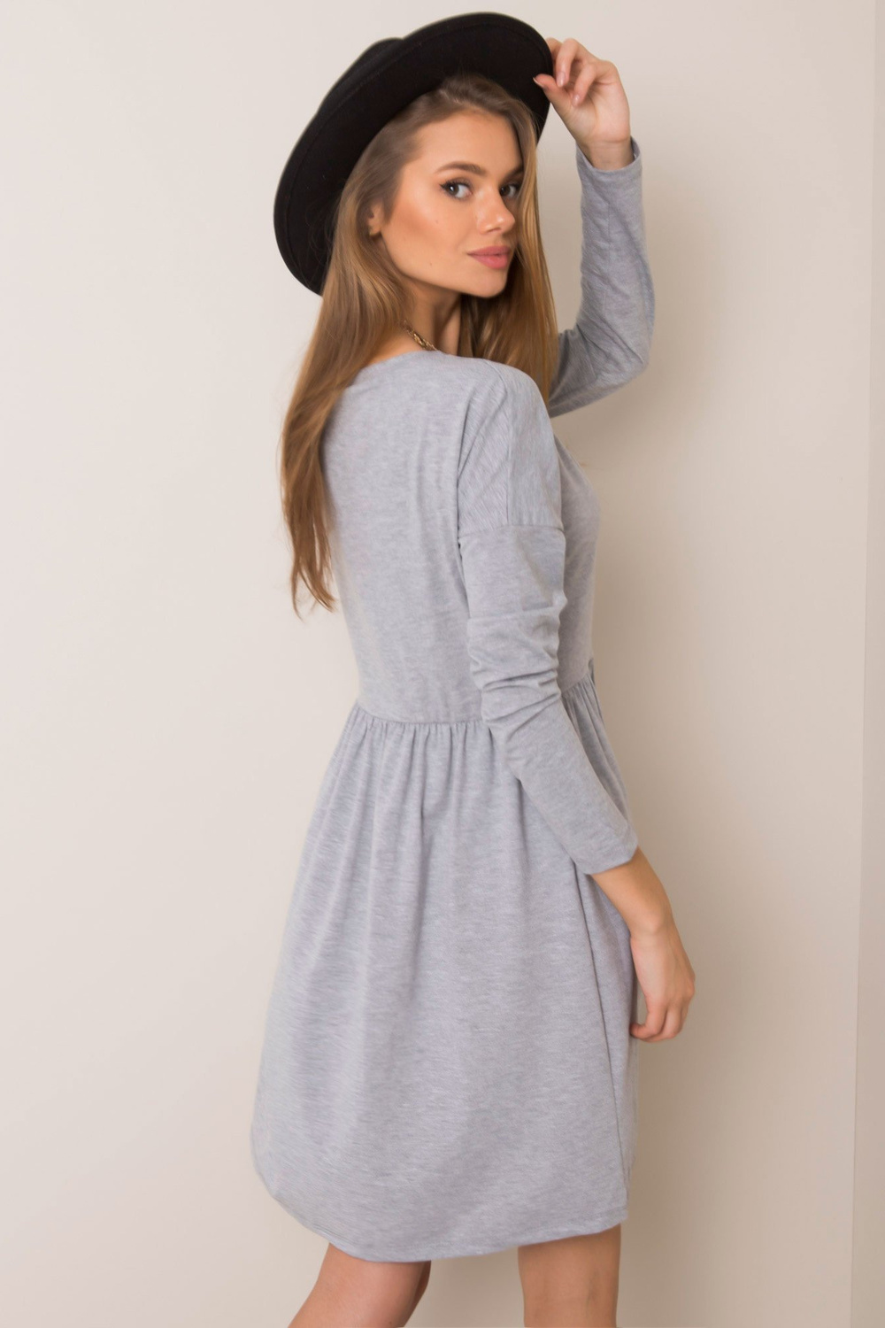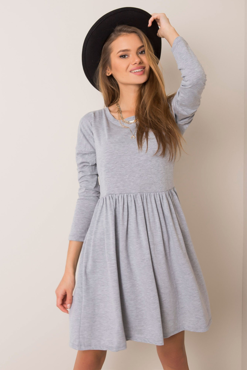 Halli värvi kleit Vega RUE PARIS. Melange trikotaažist valmistatud halli värvi puuvillane kleit on igapäevaste moekate kleitide osas täielik klassika. Pakutav mudel on langetatud õlajoonega ja vöökohalt ära lõigatud, mis lisab tüdrukulikku võlu