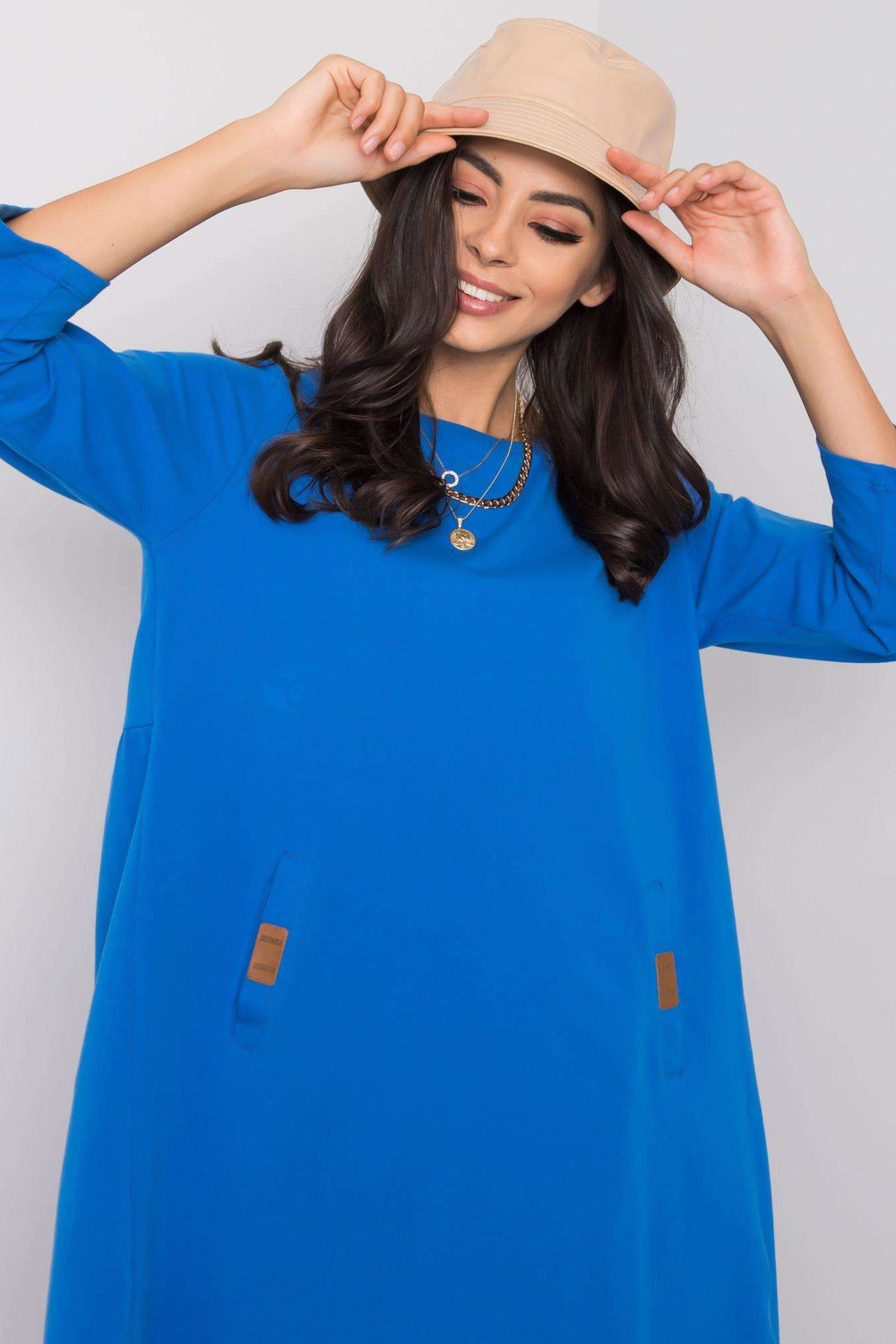 Tumesinine ümmarguse kaelusega kleit Dalenne. materjali koostis: 90% puuvill, 10% elastaan pesumeetod: masinpesu 30°C Mudel kannab suurust S/M. Modelli mõõdud: kõrgus 175 cm, rind 84 cm, vöö 61 cm, puus 91 cm. Kleidi mõõdud s