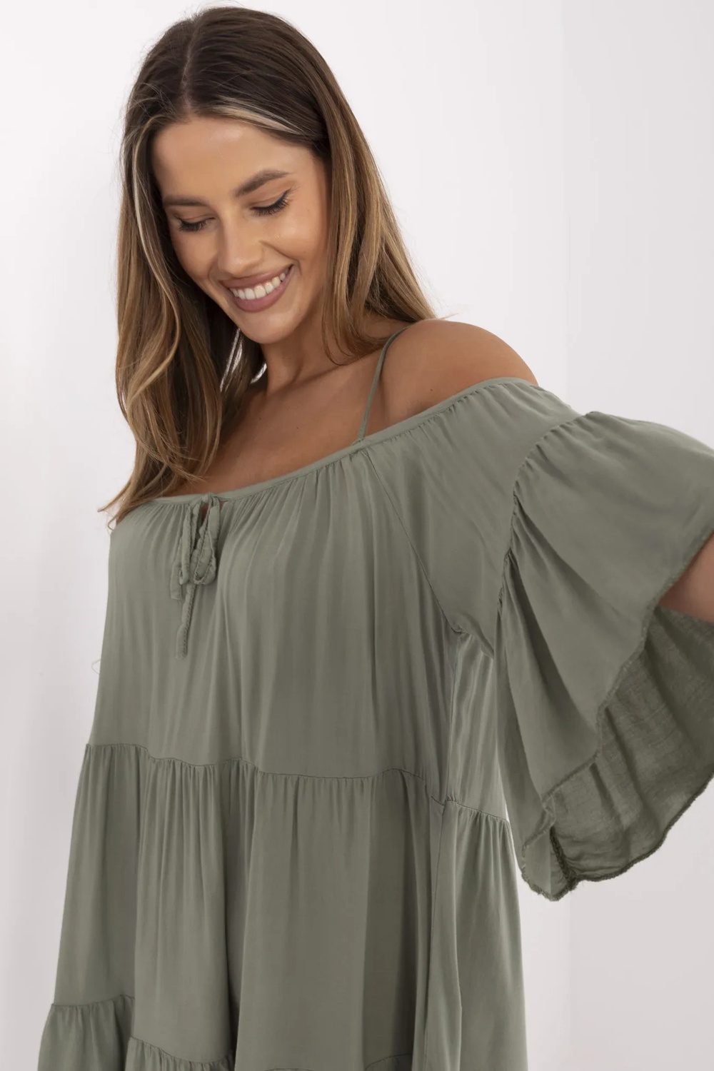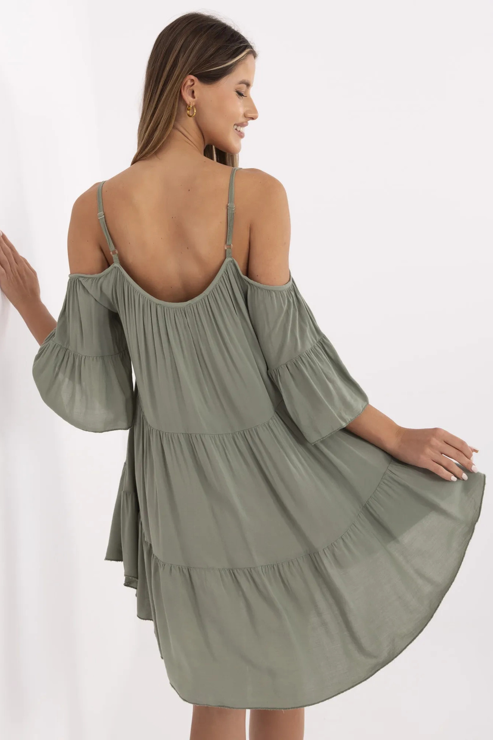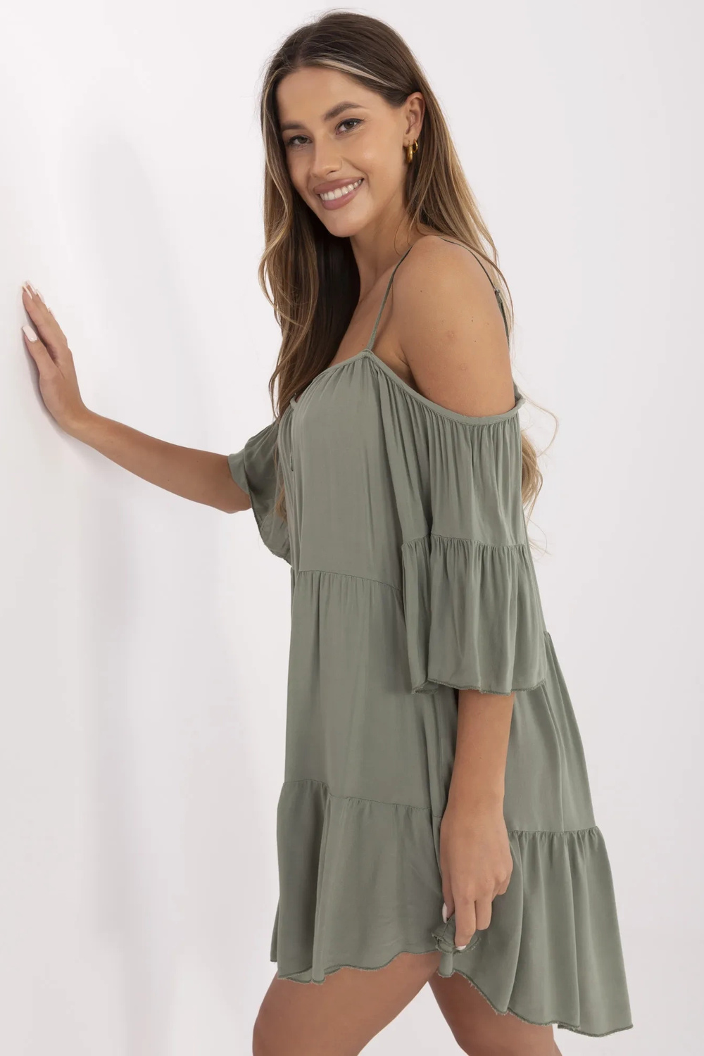 Khakidress Veronique Tõeline moehitt meie kollektsioonis! See võluv naiste kleit on ideaalne täiendus paljudele suvistele välimustele. See on sul kindlasti vaja, kui sa ei tea, mida oma puhkusekohvrisse pakkida. See tuleb kasuks ka linnas veedetud suvepäevadel. Moodne kleit on tänu kvaliteetsele materjalile äärmiselt kerge ja meeldiv puudutusele. Vaba lõige ei piira liikumist ja pakub meeldivat mugavust ka kõige palavamatel päevadel. Tüdrukulikku graatsilisust lisavad õhuline volang ja moekad väljalõiked õlgadel. Pane meie moodne kleit kokku boho sandaalidega. Ärge unustage ka avarat punutud korvi. Moekas väljalõigetega kleit on Sinu garderoobis puuduv moeese, seega ära viivita ja lase end juba praegu meie e-poes ostuhullusest kaasa haarata.
