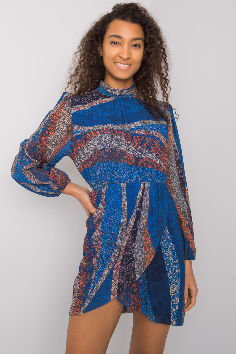 Model kannab suurust üks. Modelli mõõdud: kõrgus 178 cm, rind 82 cm, vöö 61 cm, puus 88 cm.