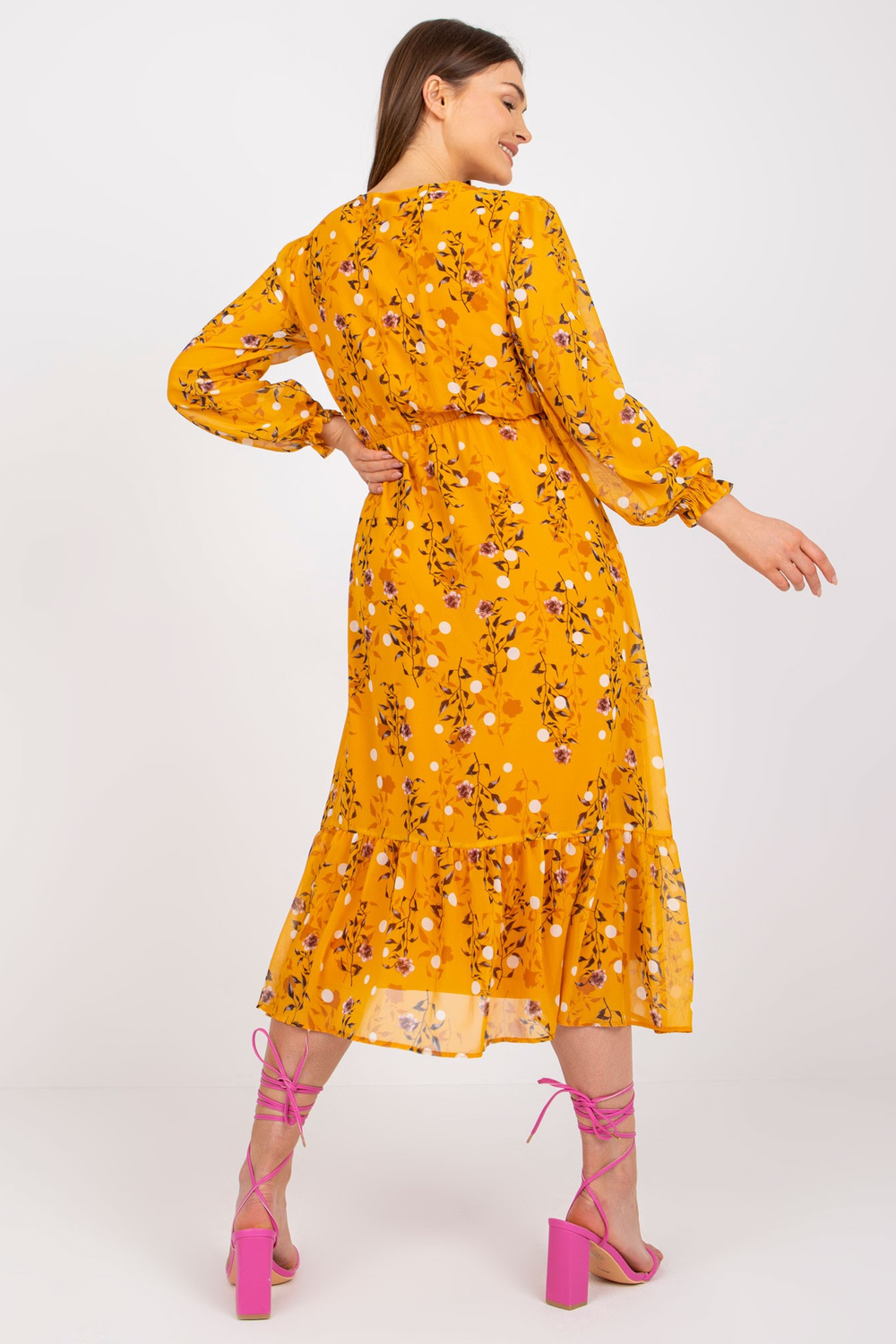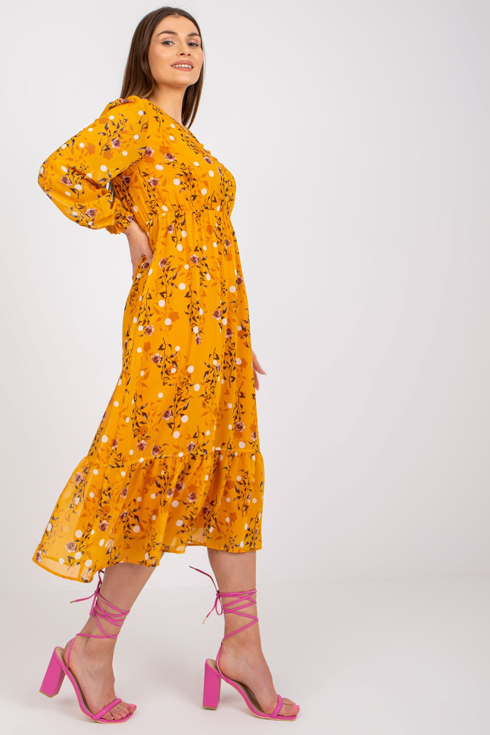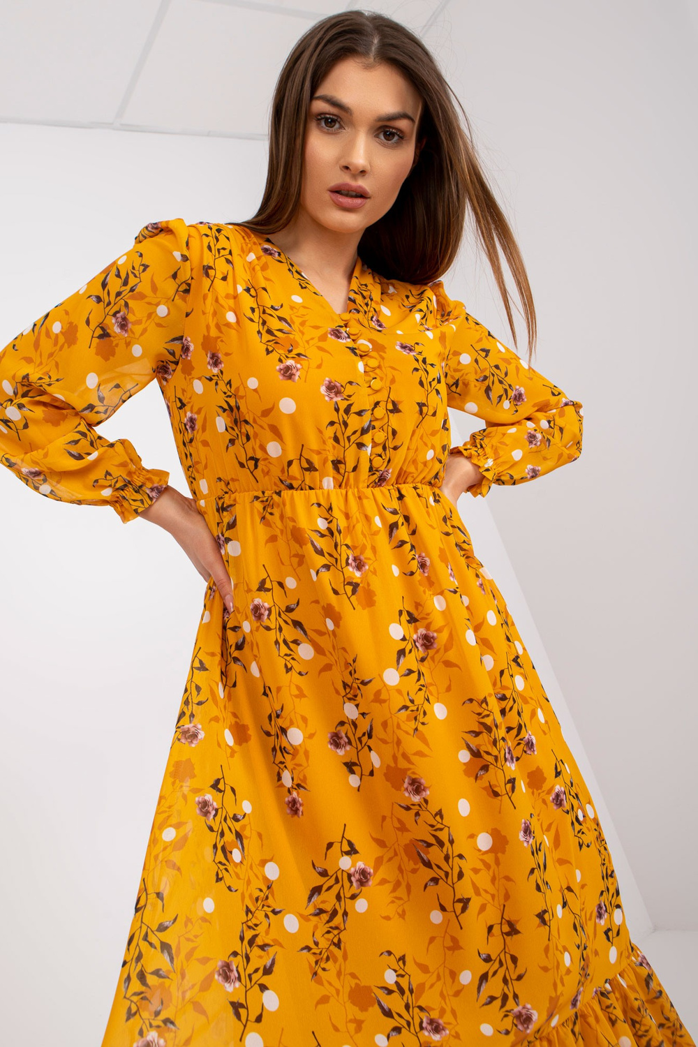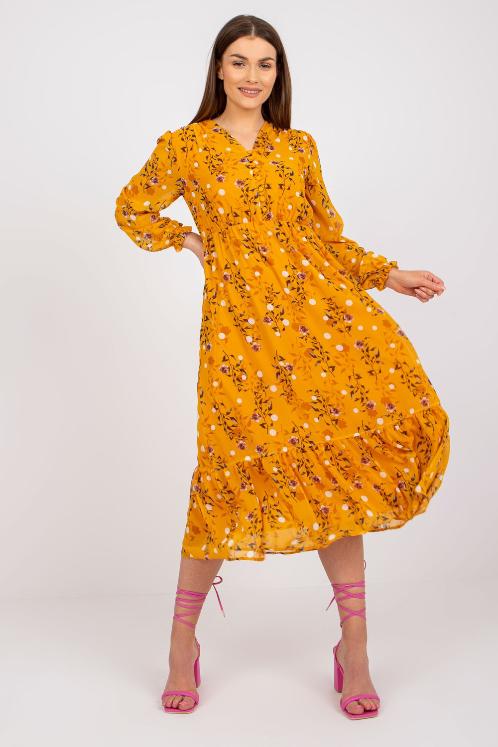 Tumekollane trükiste ja volangidega midikleit RUE PARIS