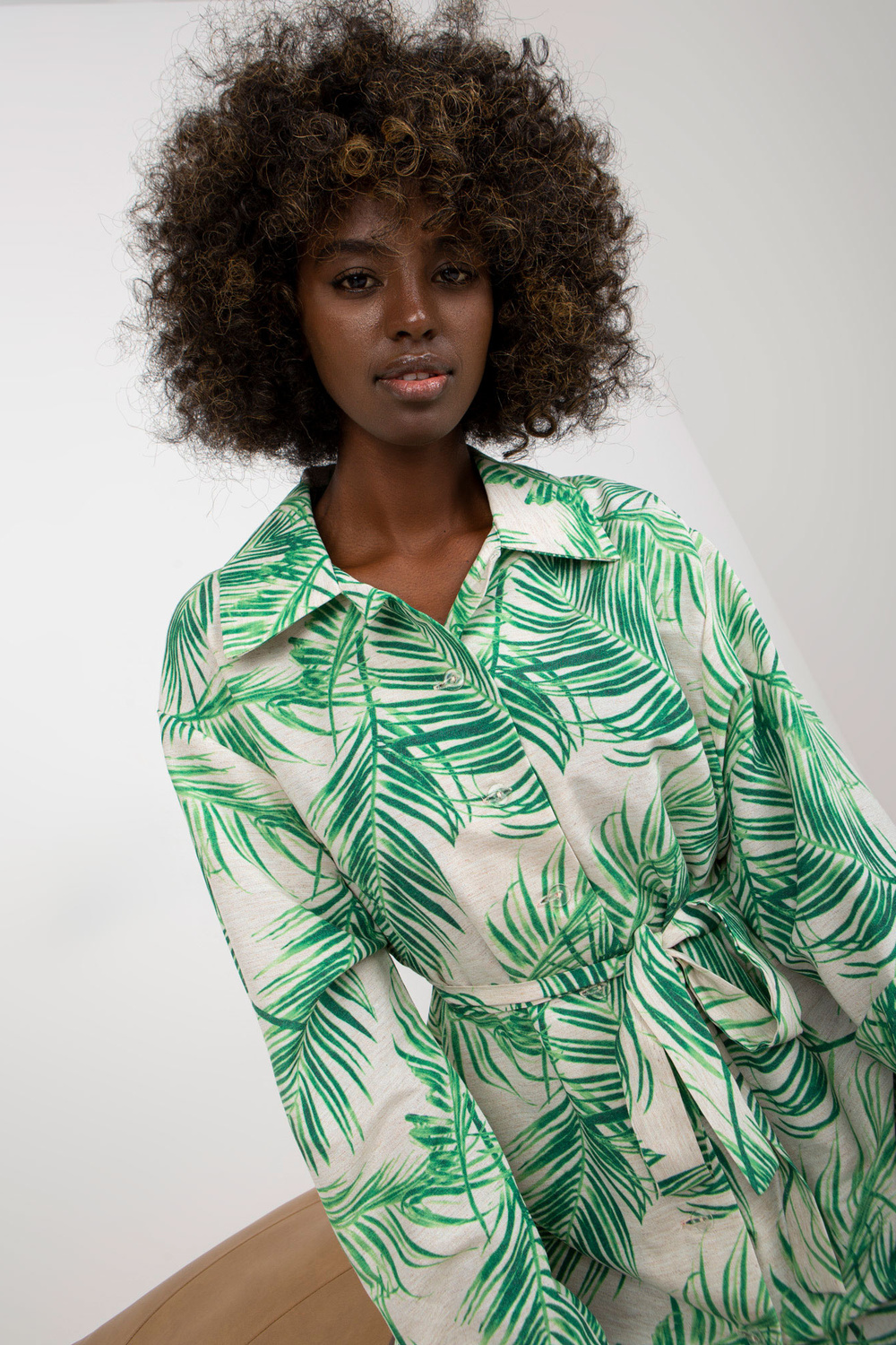 Rohekasbeež linane kleit trükiga .