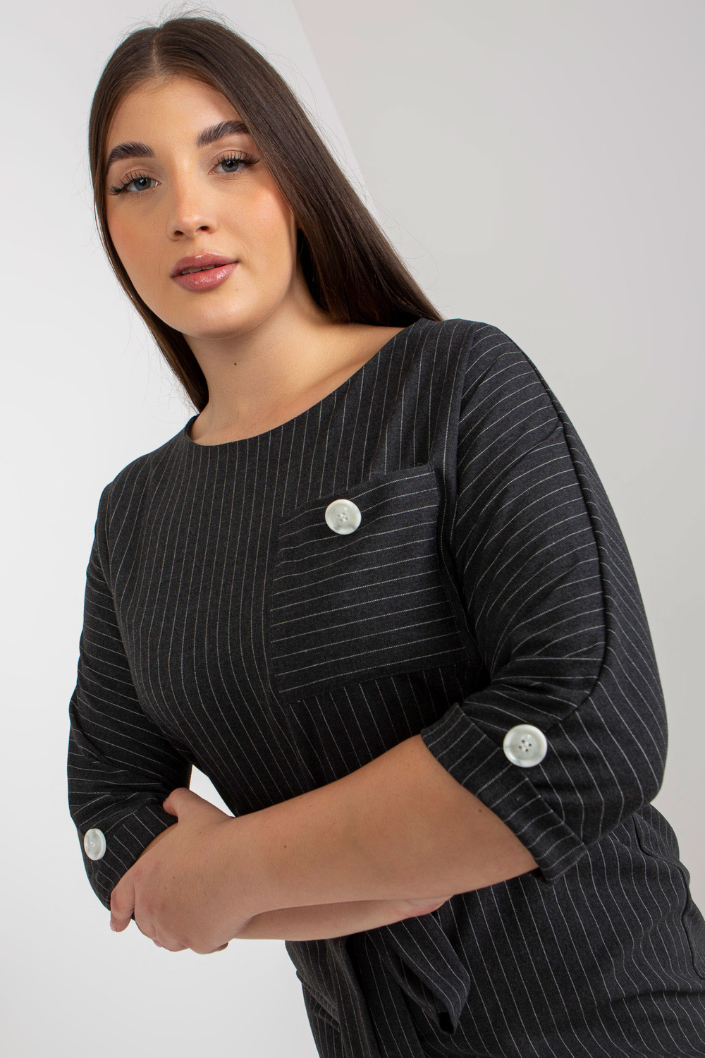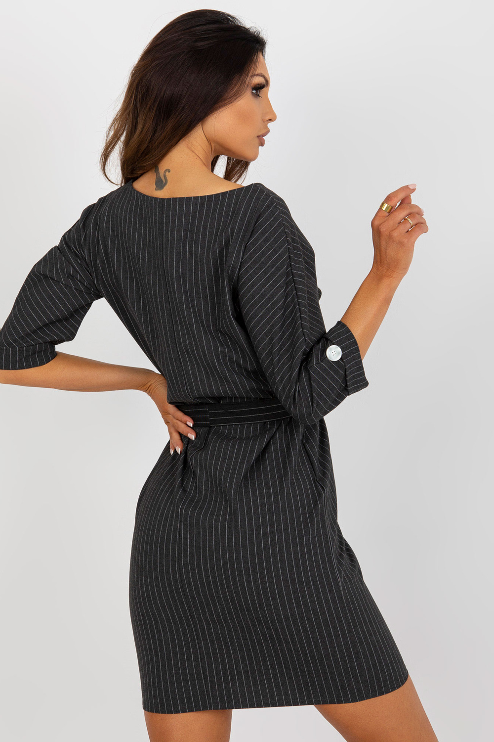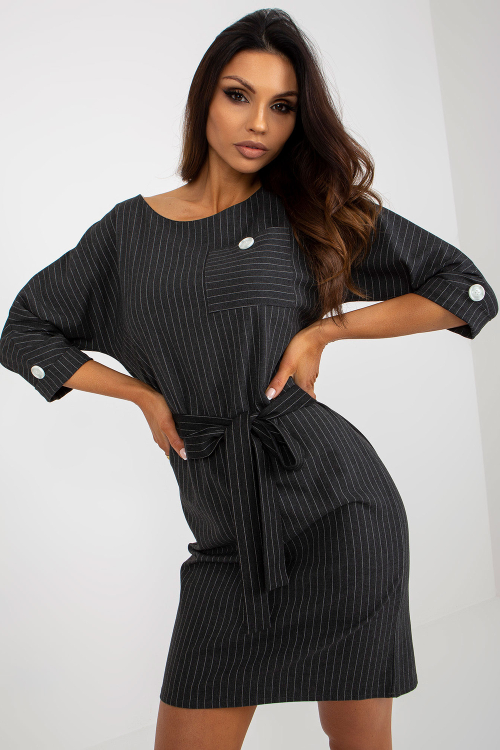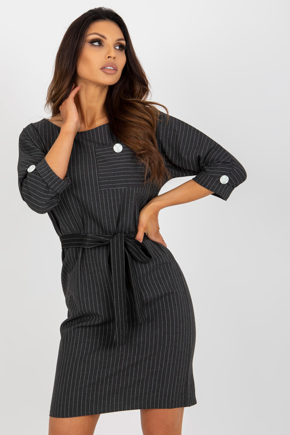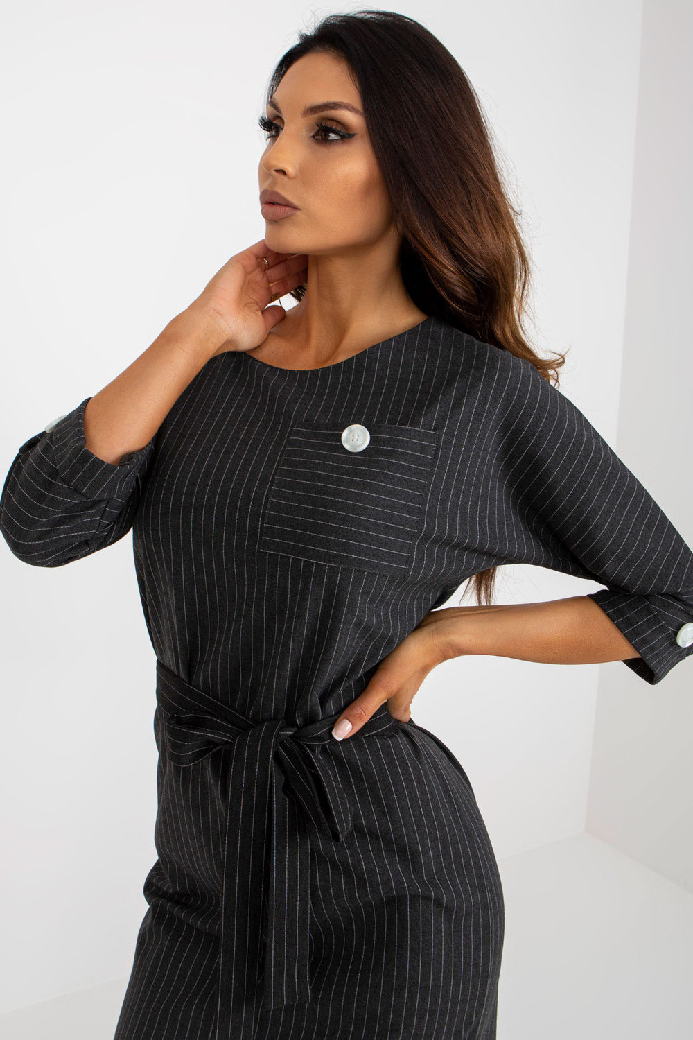 Tumehall pliiatsiga plusssuuruses villatriibuline kleit. Tootekood: LK-SK-507724.10 domineeriv muster: triibud Stiil: Elegantne võimalus: tööle, kohtingule, ametlikule kohtumisele Modell kannab suurust 44. Modelli mõõdud: kõrgus 174 cm, rinnaümber