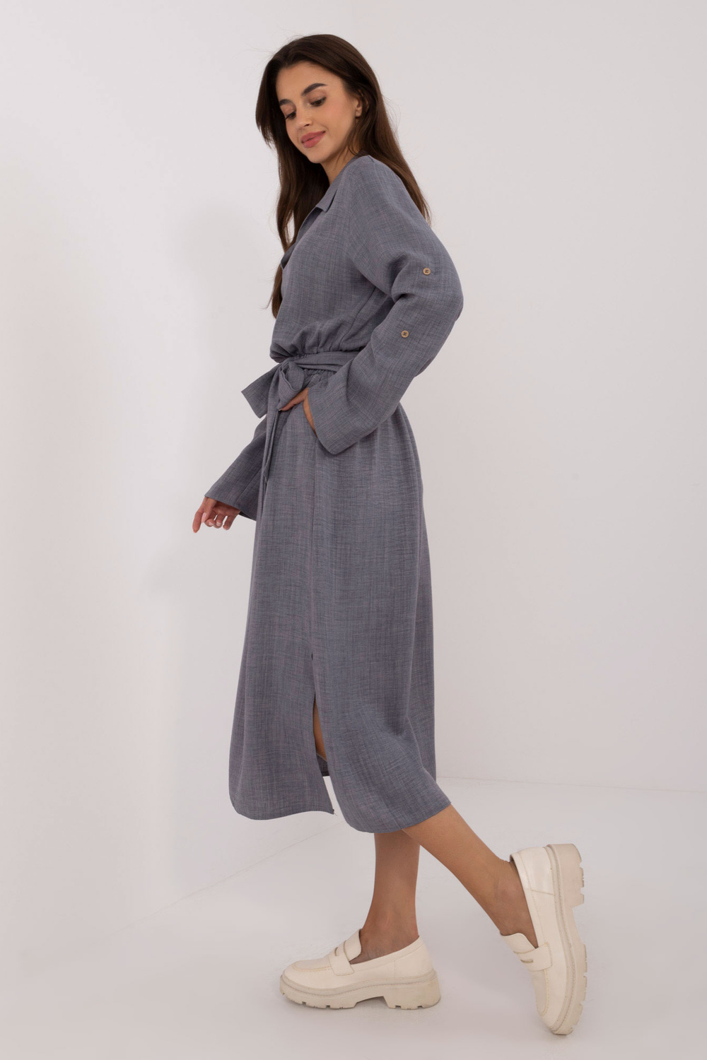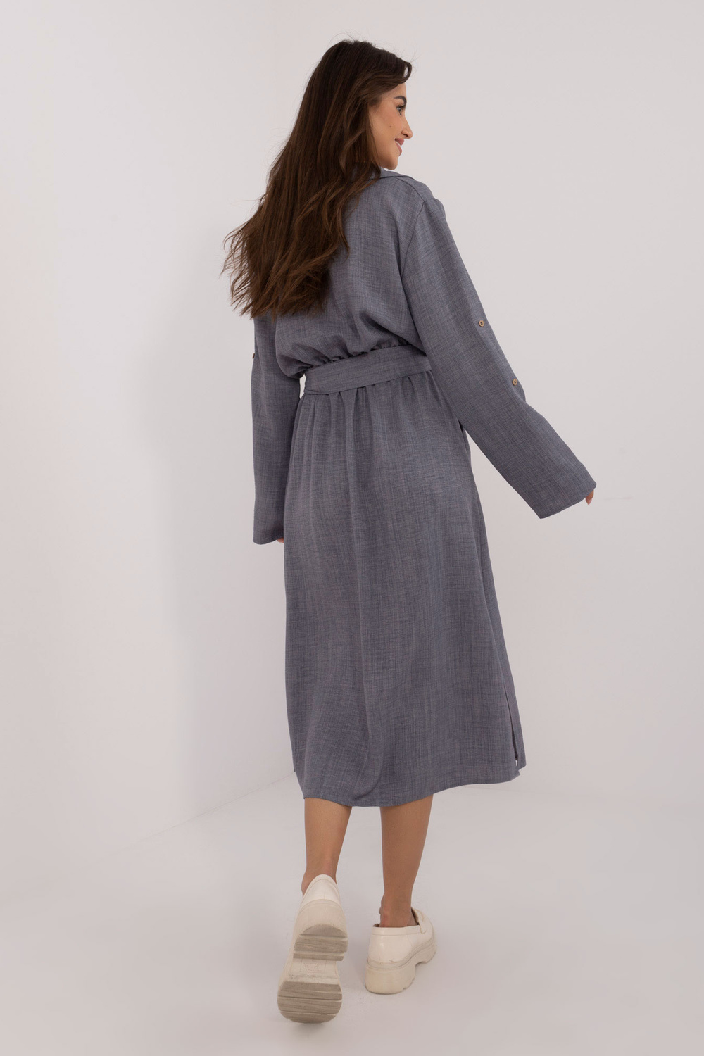 Kleidi mõõdud S/M suurusel tasapinnaliselt mõõdetuna: kaenla laius - 54 cm, varruka pikkus - 60 cm, üldpikkus - 125 cm.