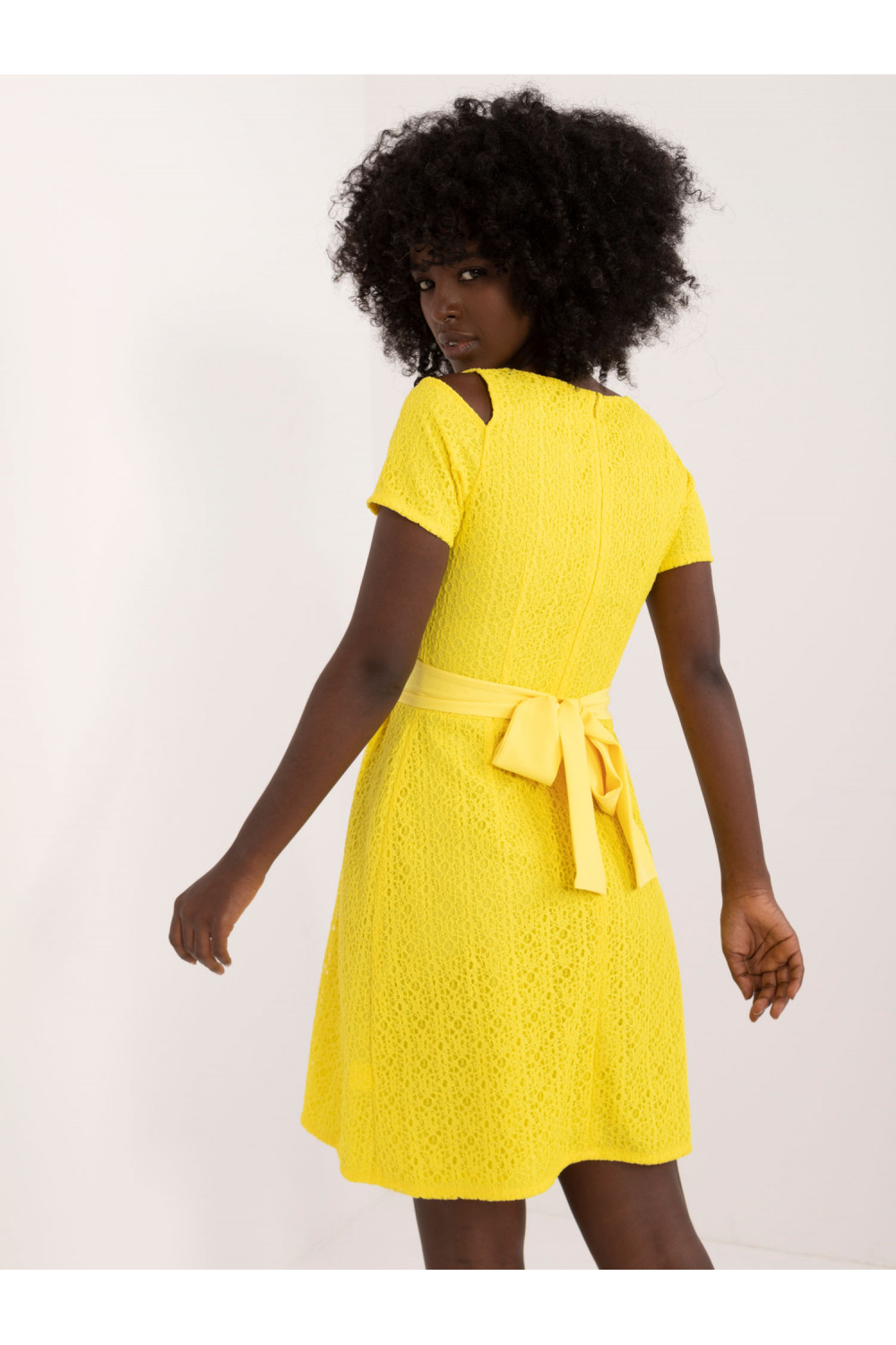 Modell kannab suurust 36. Modelli mõõdud: pikkus 168 cm, rind 82 cm, vöö 62 cm, puus 93 cm.