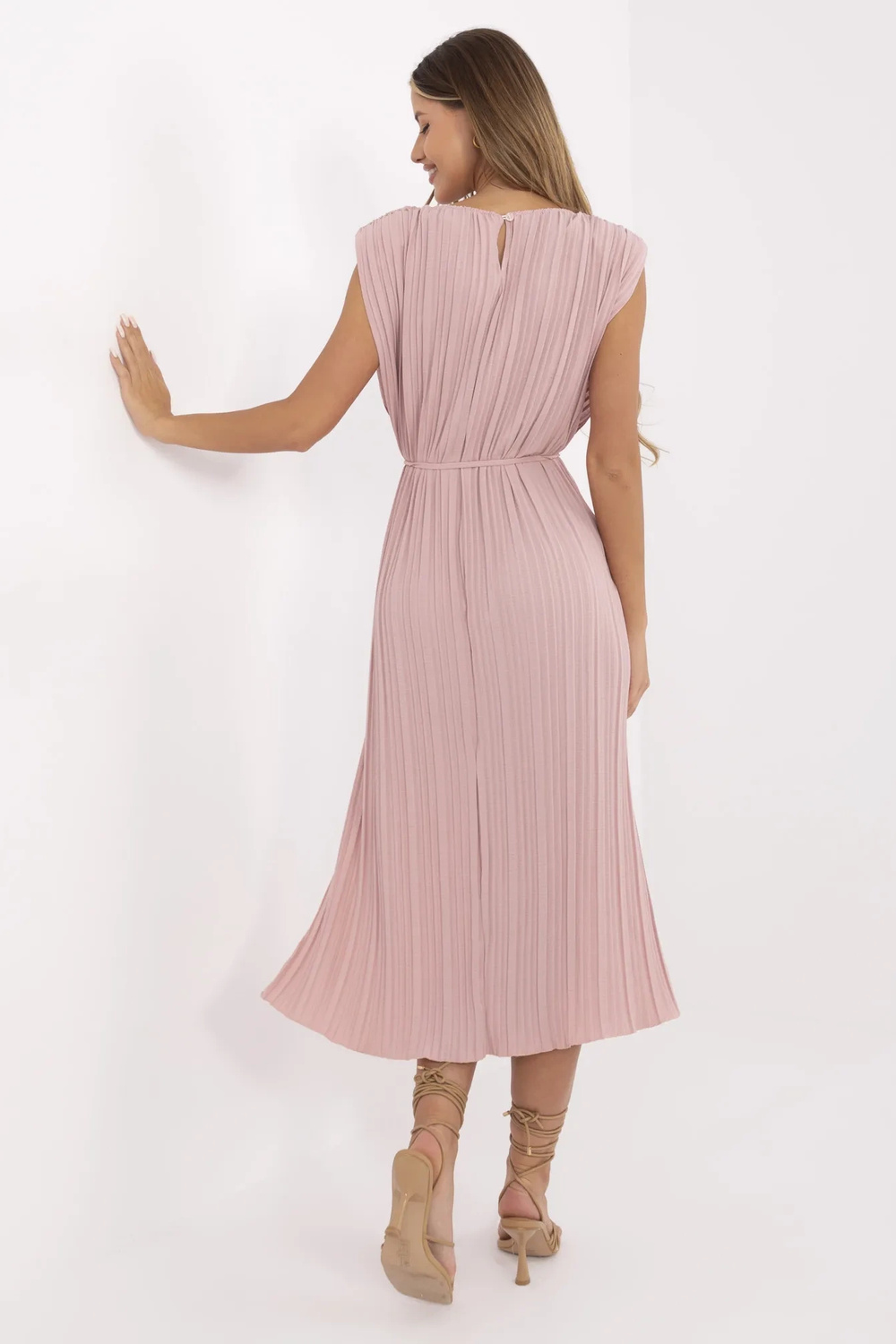 Kleidi mõõdud ühes suuruses: laius kaenla alt - 62 cm (lamedalt lamades), laius kaenla alt - 95 cm (pärast venitamist), vöökoha laius - 60 cm (lamedalt lamades), vöökoha laius - 99 cm (pärast venitamist), puusa laius - 65 cm (lamedalt lamades), puusa laius - 95 cm (pärast venitamist), kogupikkus - 130 cm (veniv materjal).