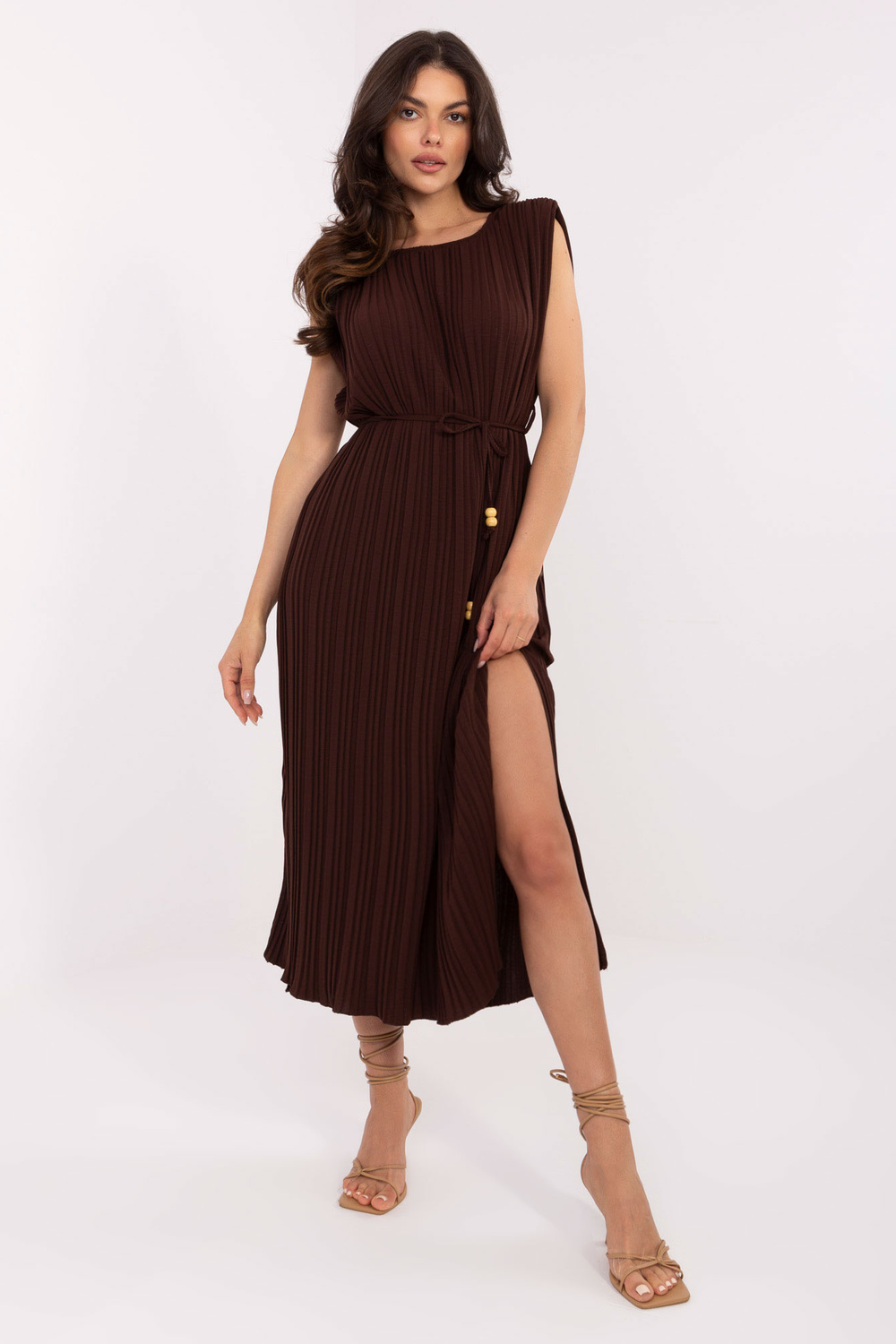 Kleidi mõõdud ühes suuruses: laius kaenla alt - 62 cm (lamedalt lamades), laius kaenla alt - 95 cm (pärast venitamist), vöökoha laius - 60 cm (lamedalt lamades), vöökoha laius - 99 cm (pärast venitamist), puusa laius - 65 cm (lamedalt lamades), puusa laius - 95 cm (pärast venitamist), kogupikkus - 130 cm (veniv materjal).