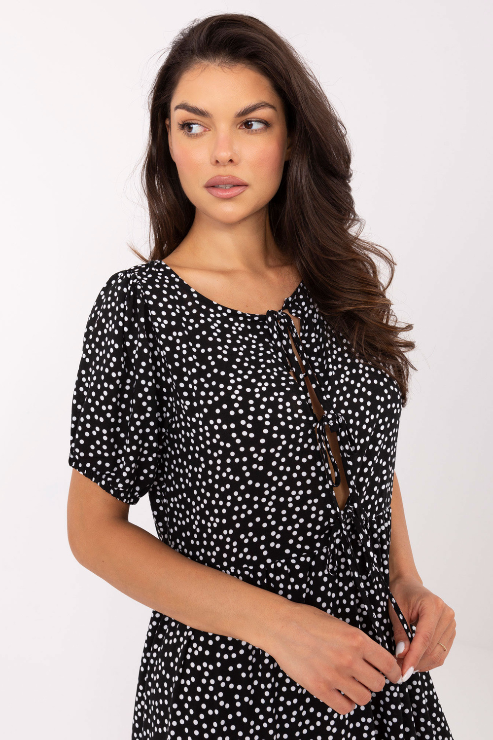 Kleidimõõdud suuruses S: laius kaenla alt - 49 cm, talje laius - 44 cm, varruka pikkus - 25 cm, puusade laius - 75 cm, kogupikkus - 98 cm.