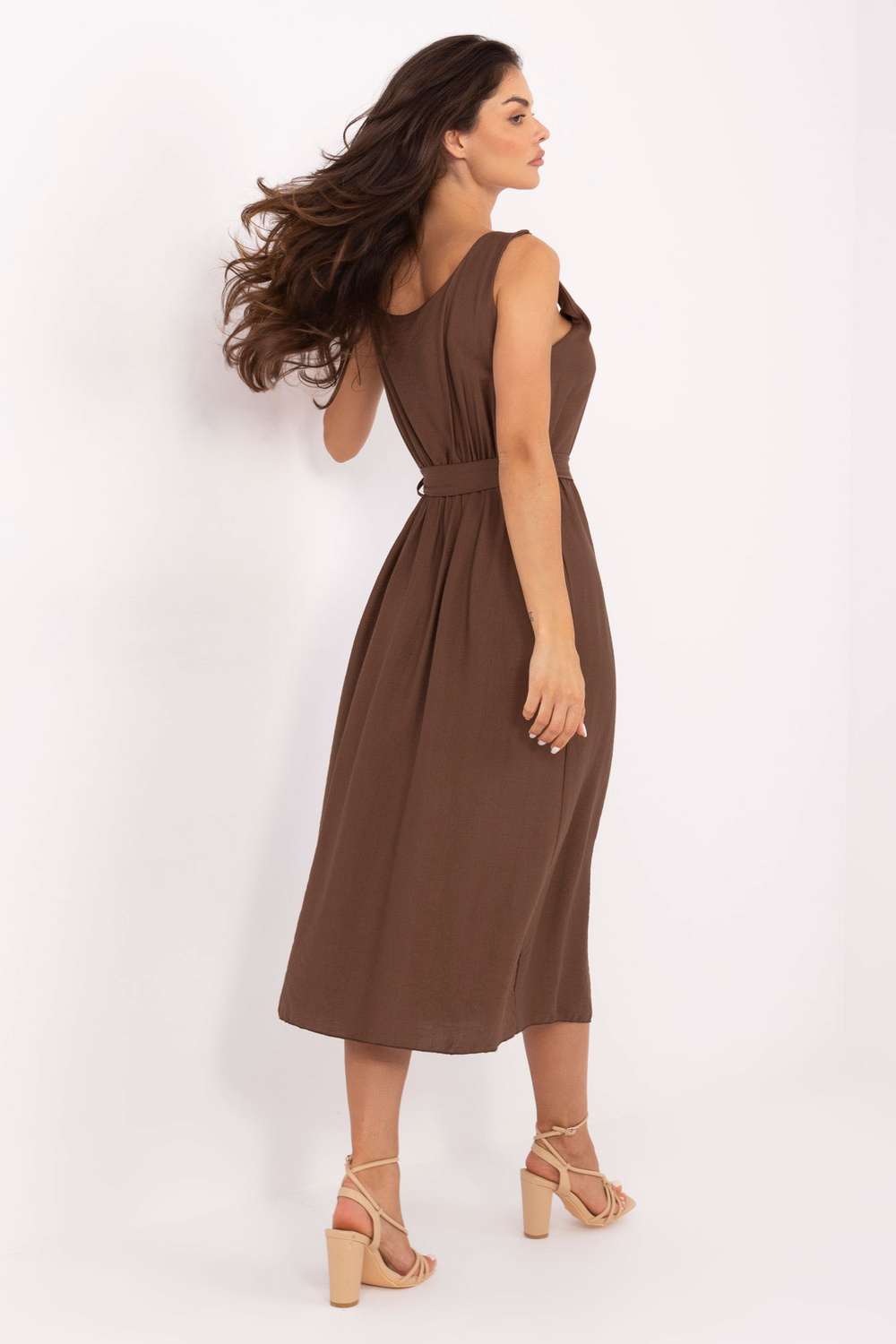 Kleidi mõõtmed ühes suuruses: laius kaenla alt - 48 cm, vöökoht - 38 cm, puusade laius - 55 cm, kogupikkus - 127 cm.