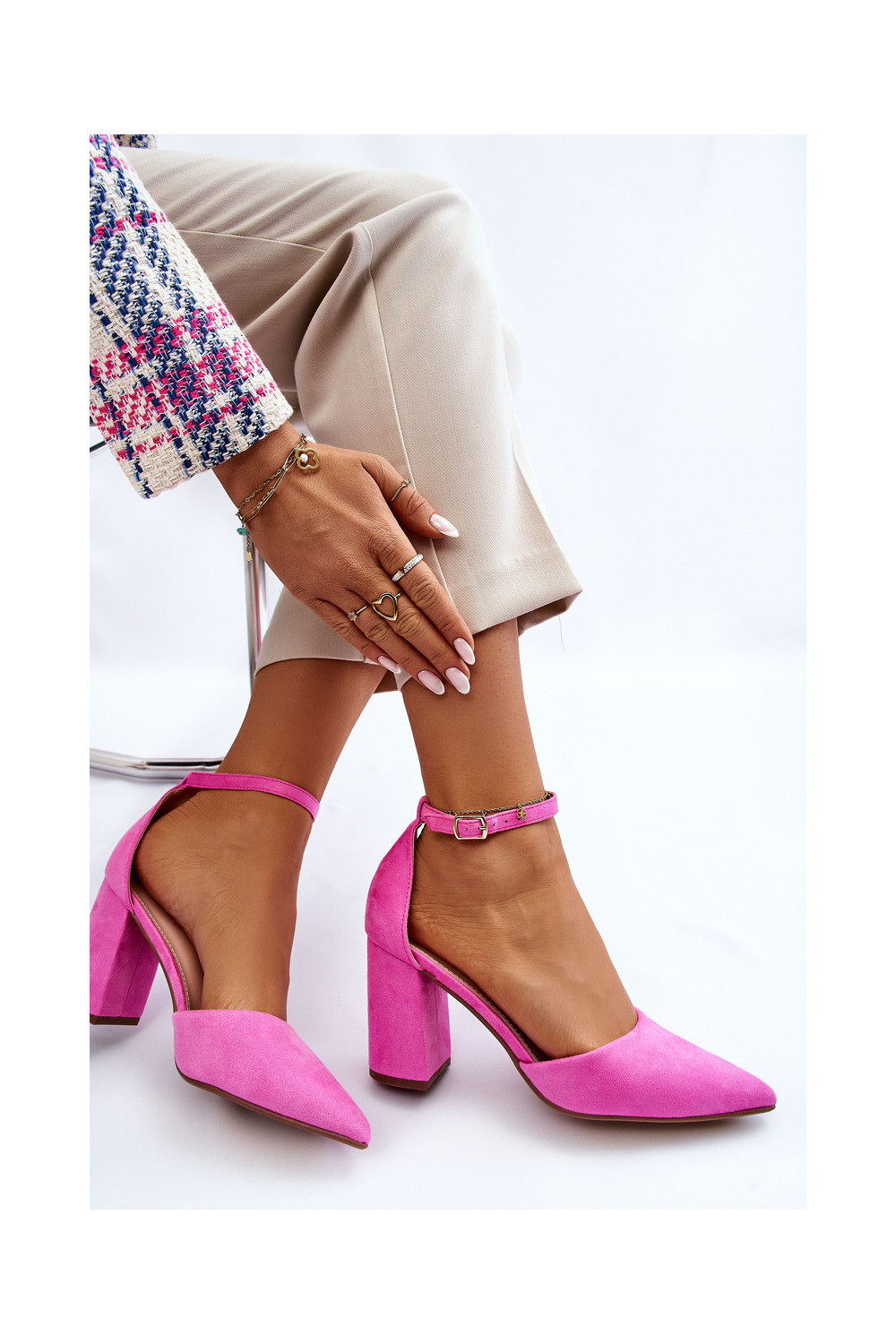Kingad kõrge jämeda kontsaga Tumeroosad värvi Lexie