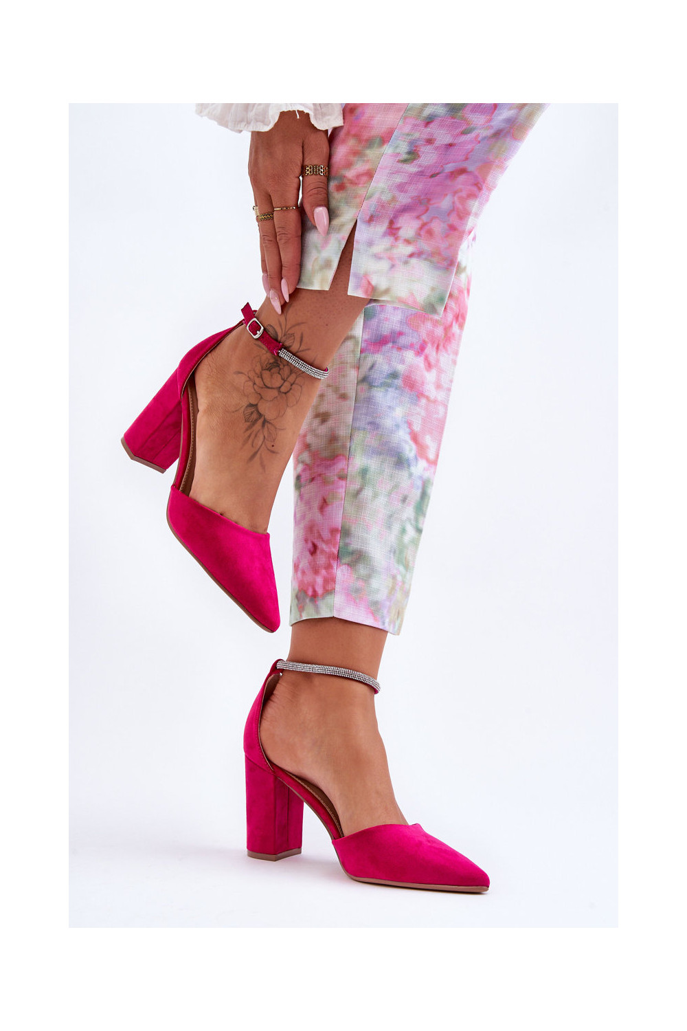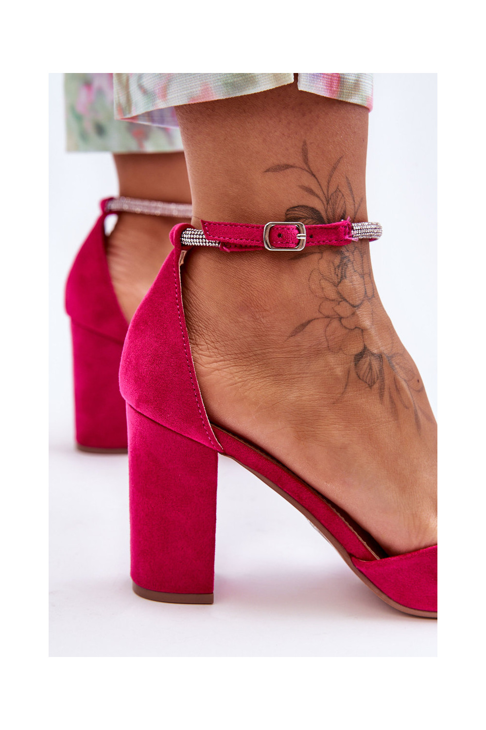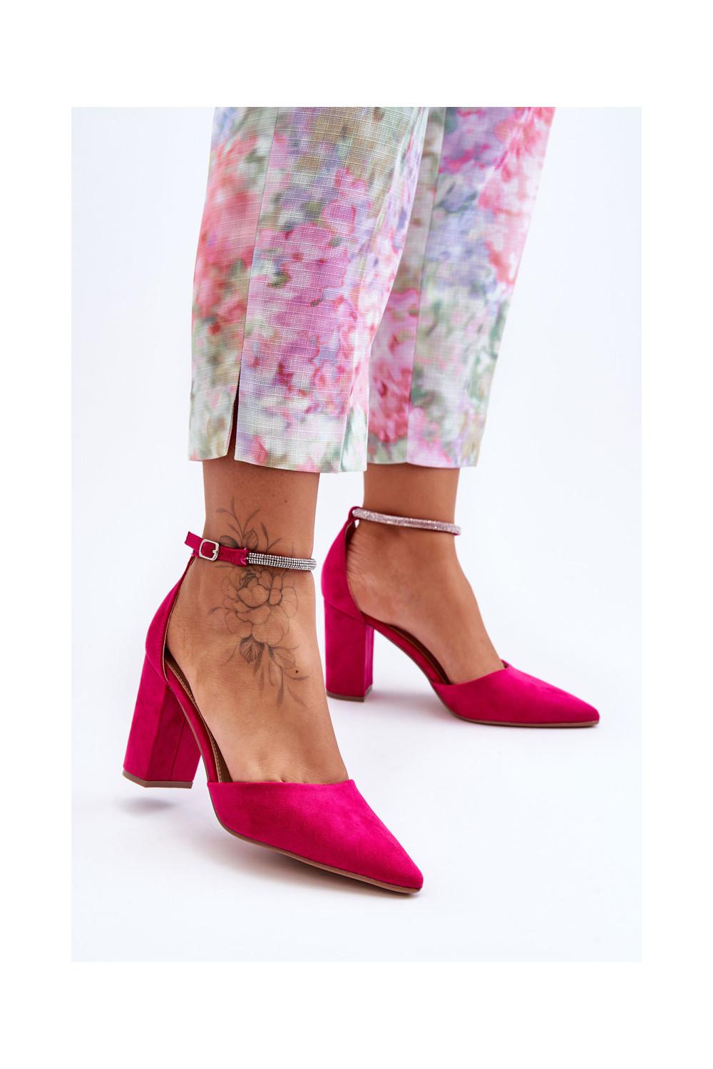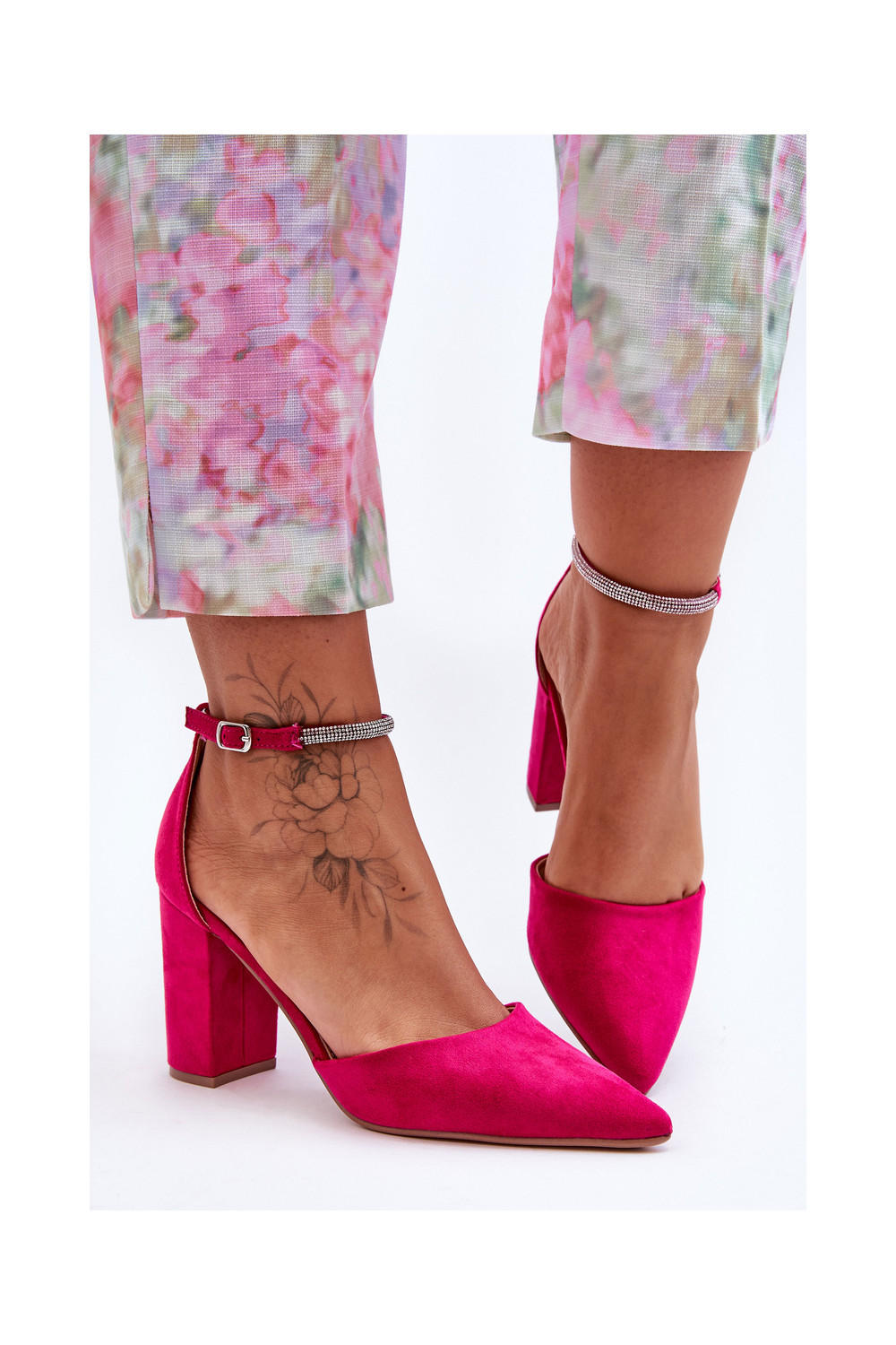 Suede Pumps with Rhinestones Fuchsia Diamond