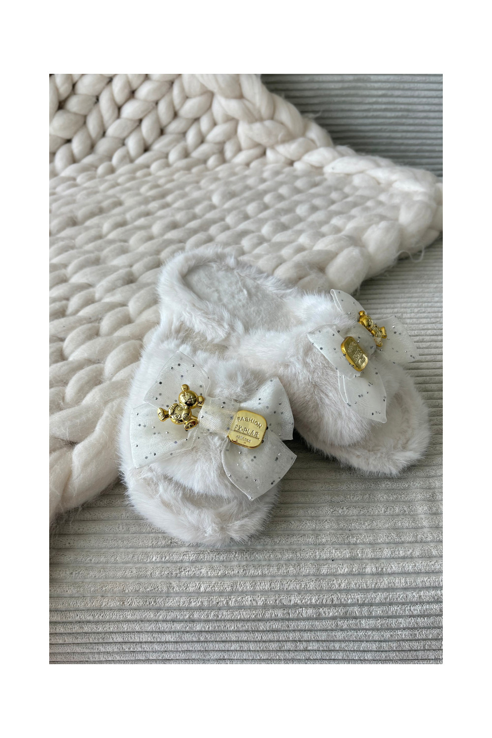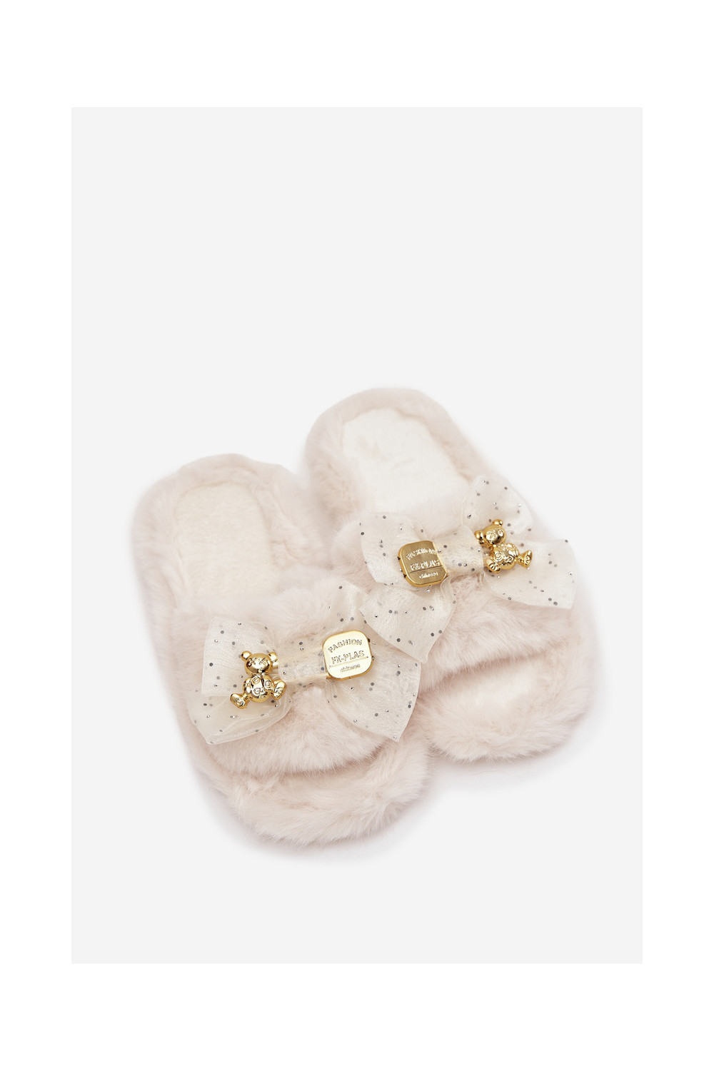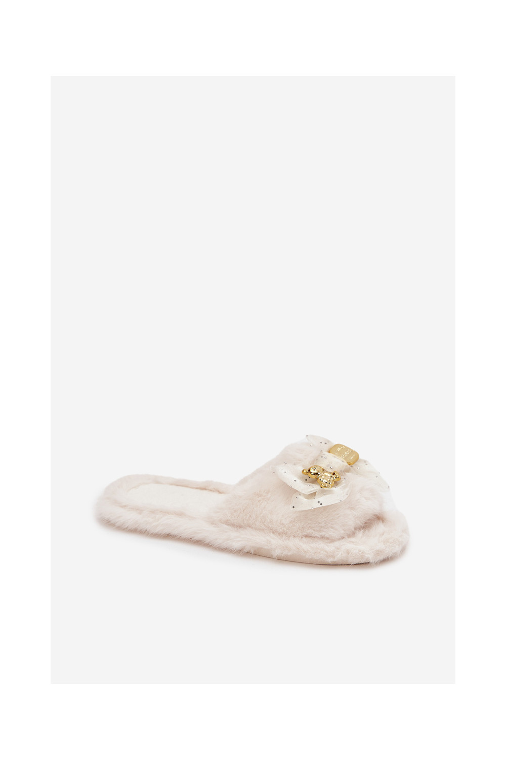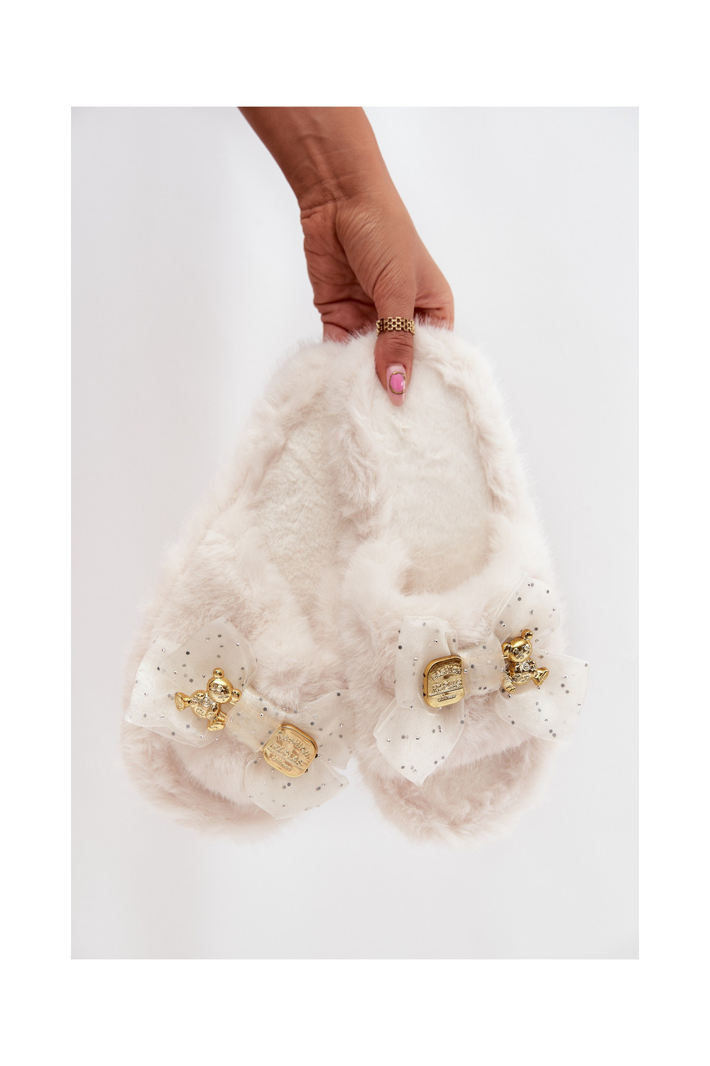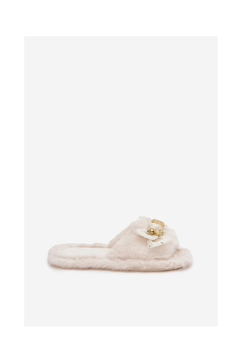 Elevandiluust värvi naiste sussid karusnahaga, lipsud ja kuldne kaunistus „Nolara"