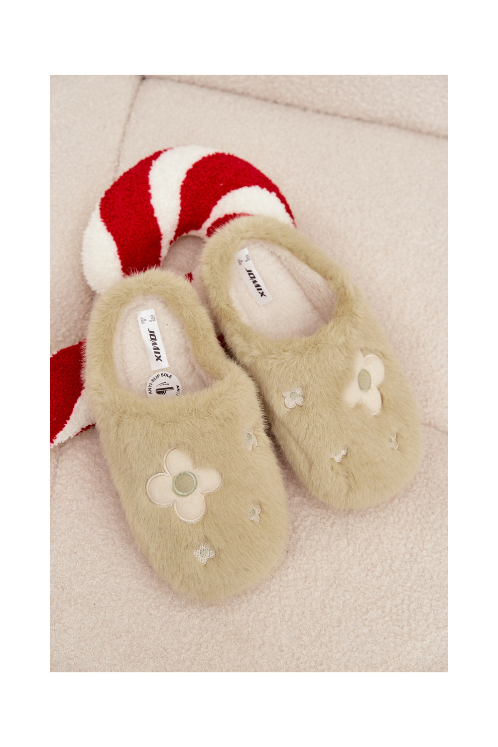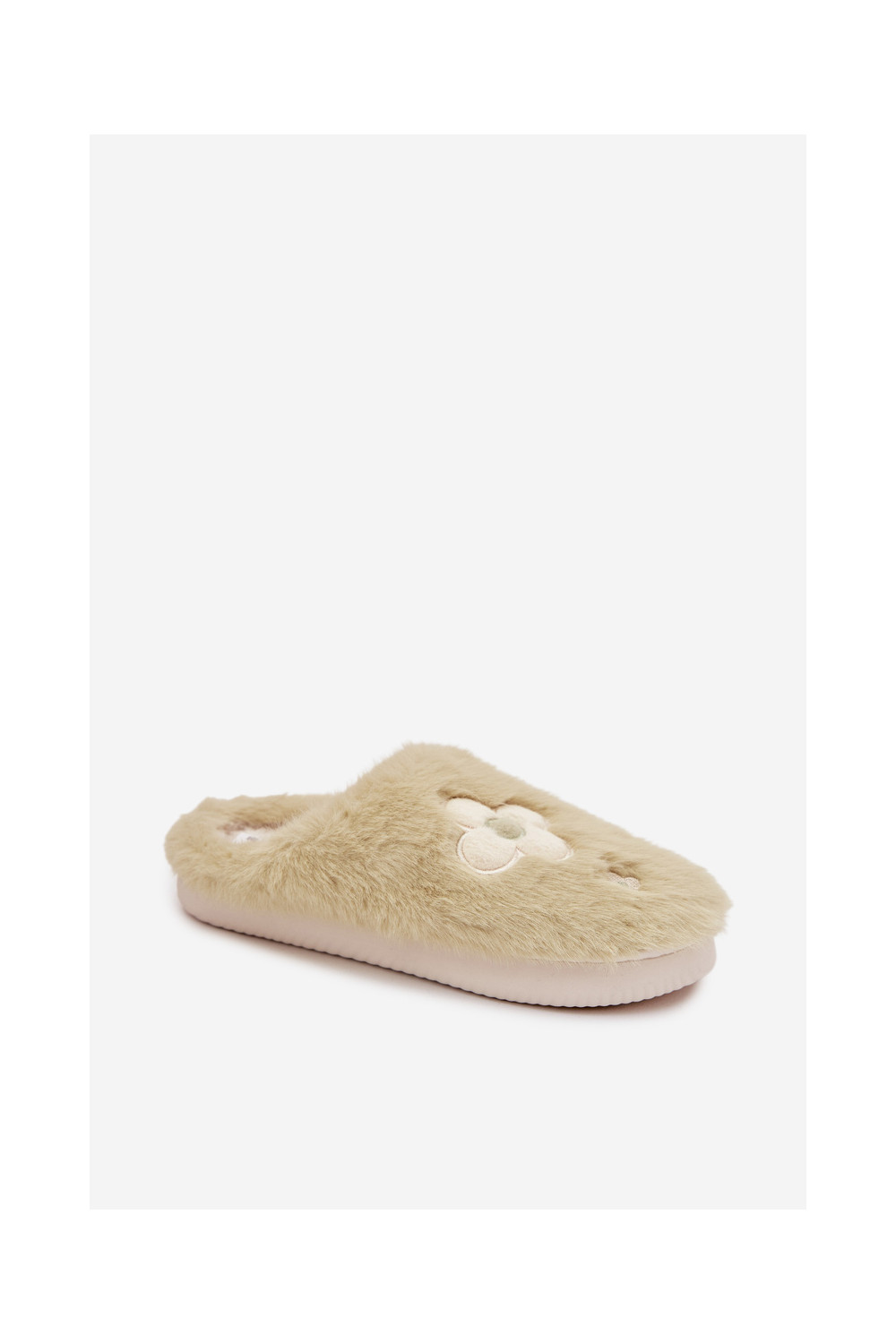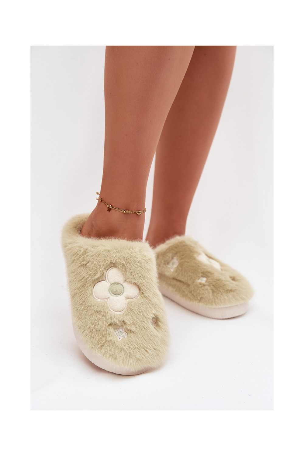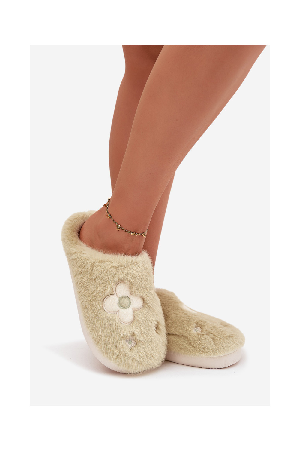 Furry slippers with flowers pistachio Selinne