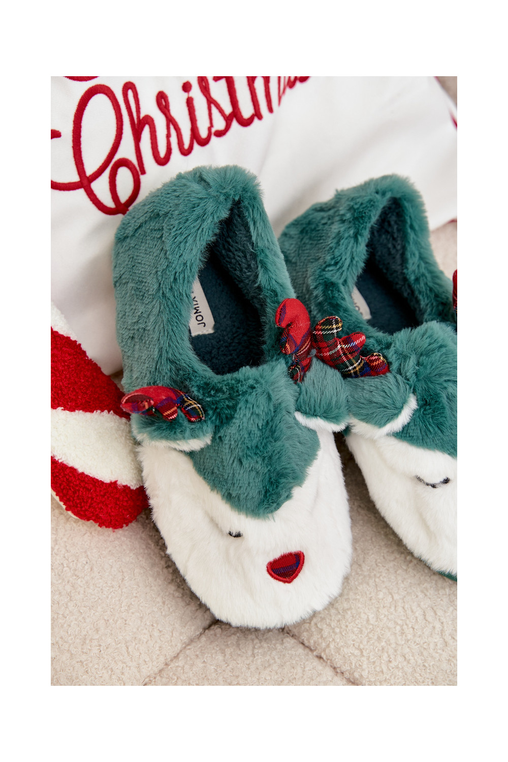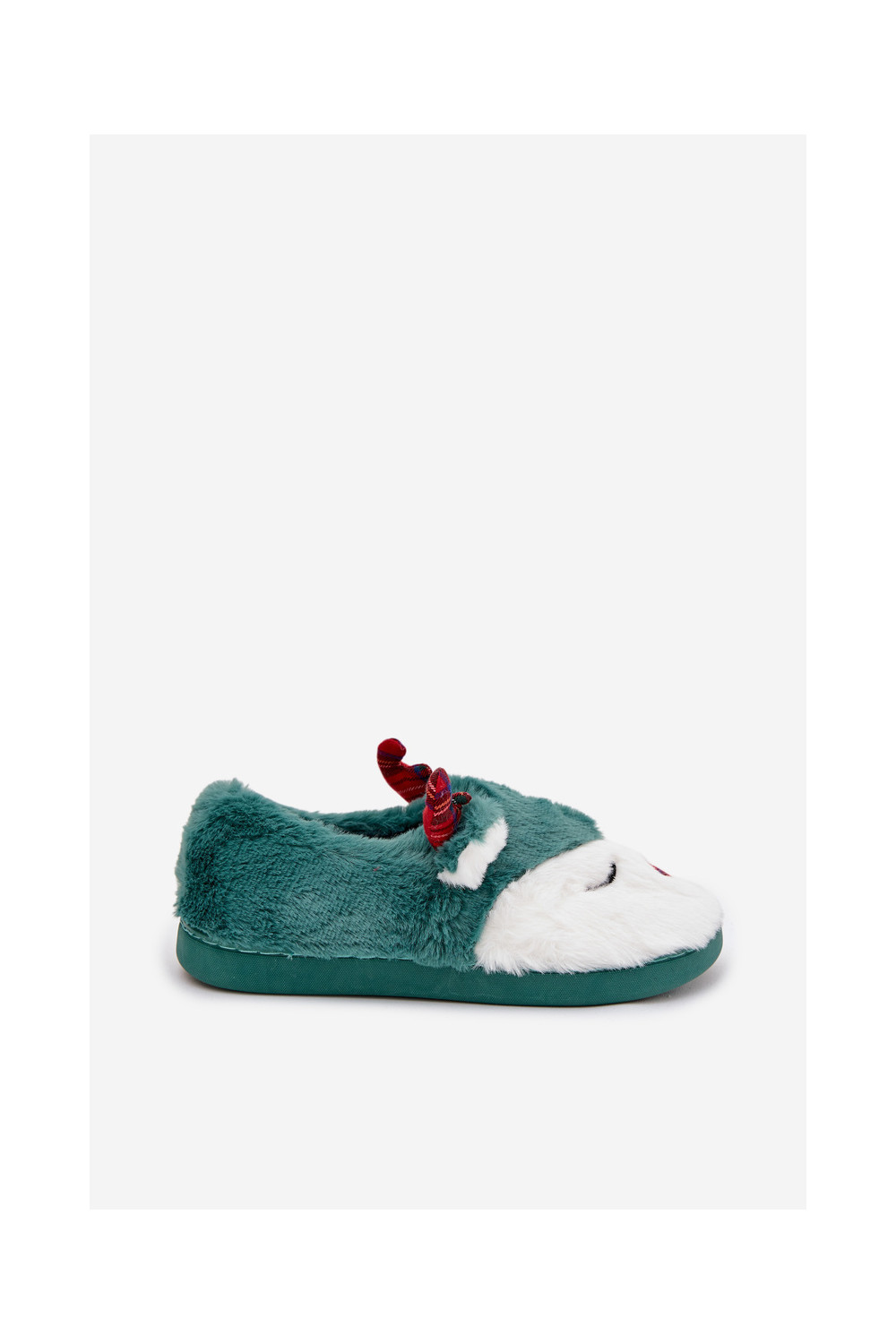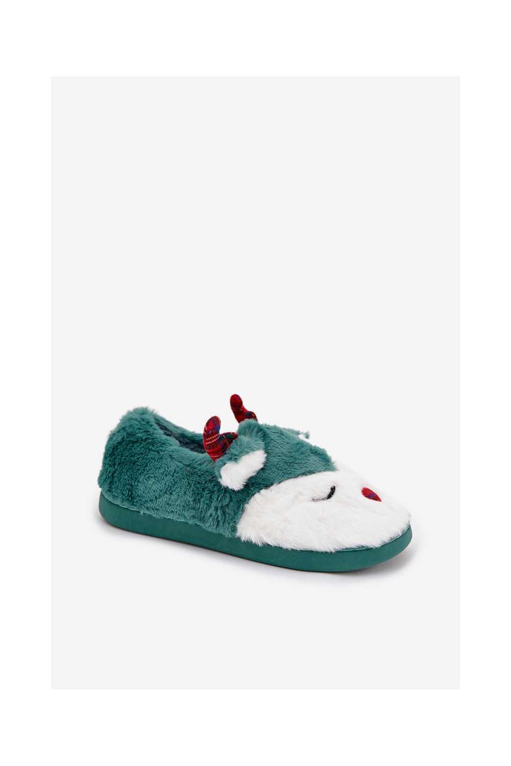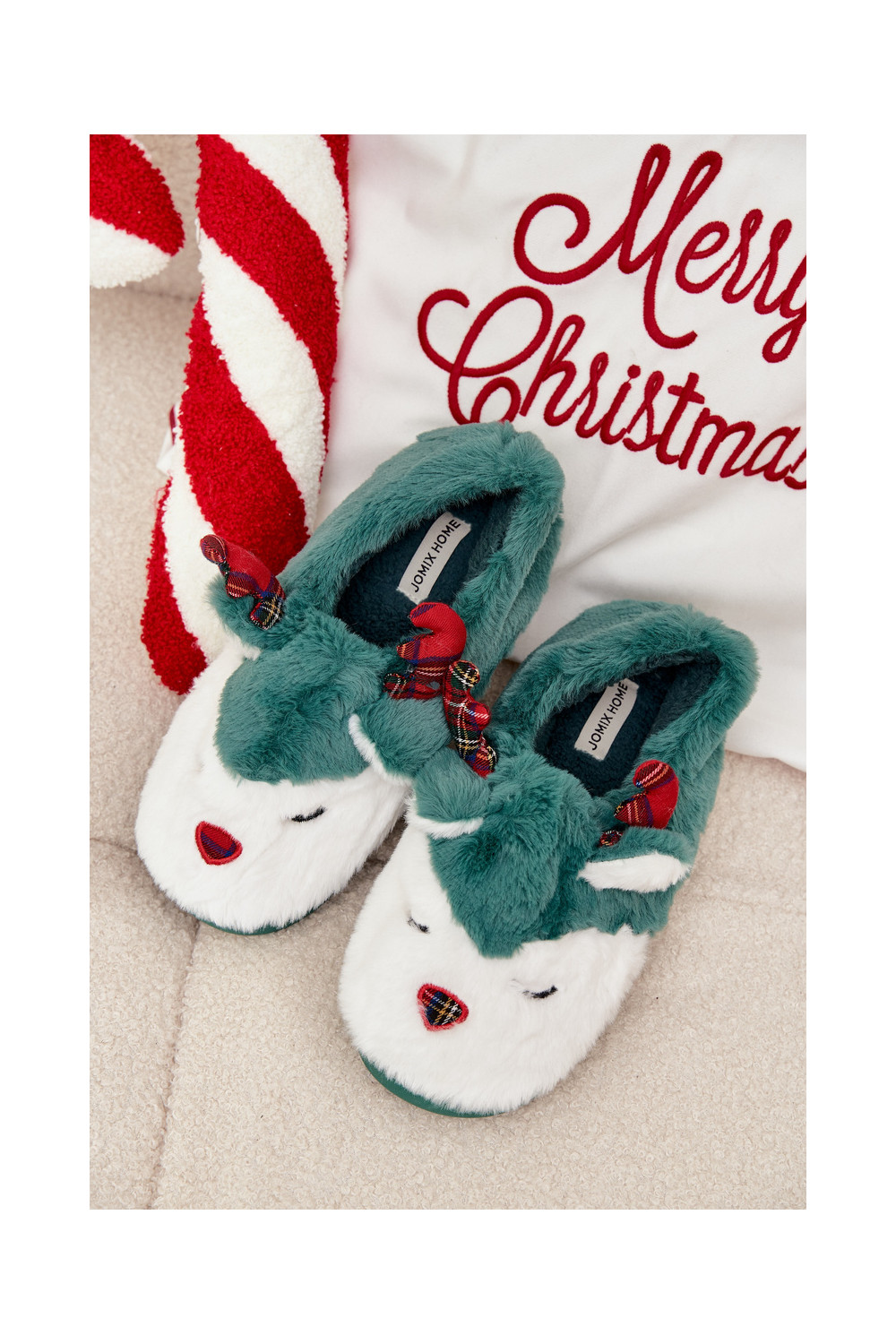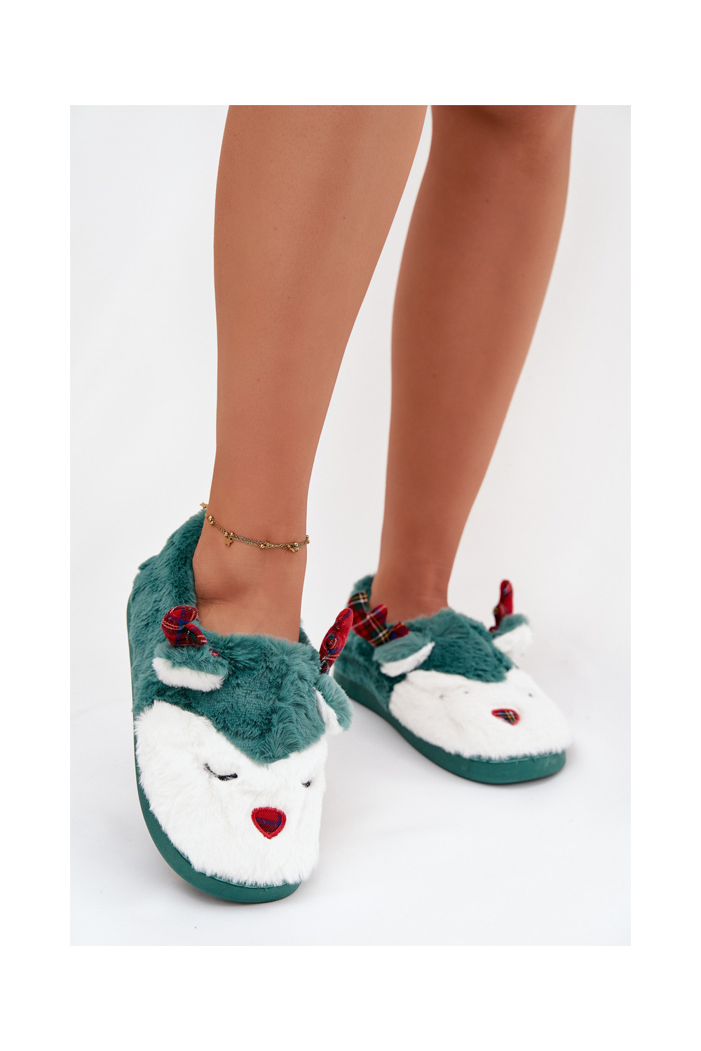 Christmas Women's Slippers With Reindeer Motif Fur Green Orsella