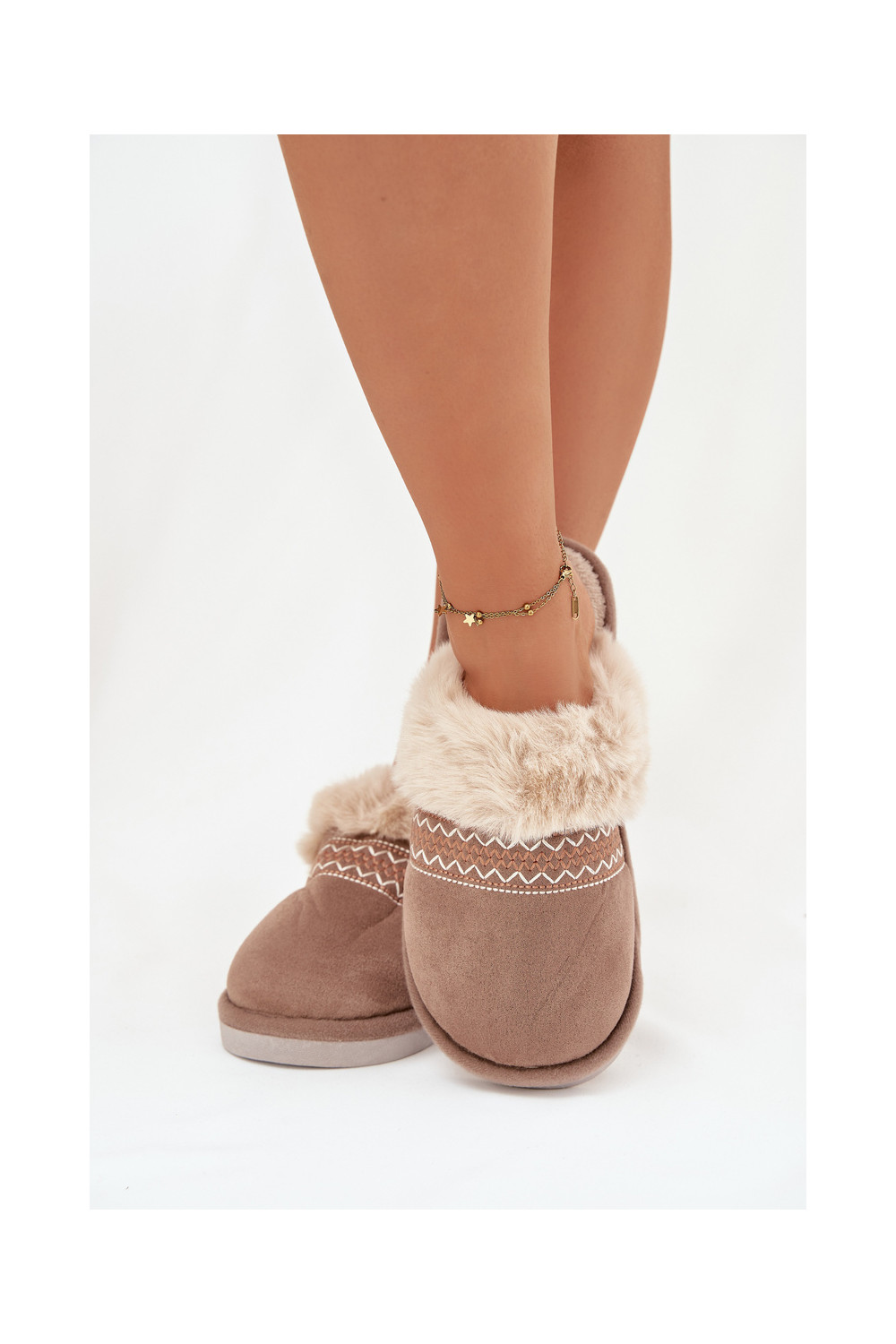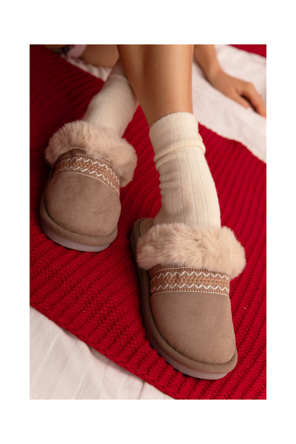 Khaki värvi Devianne naiste sussid karvaga ja tikandiga