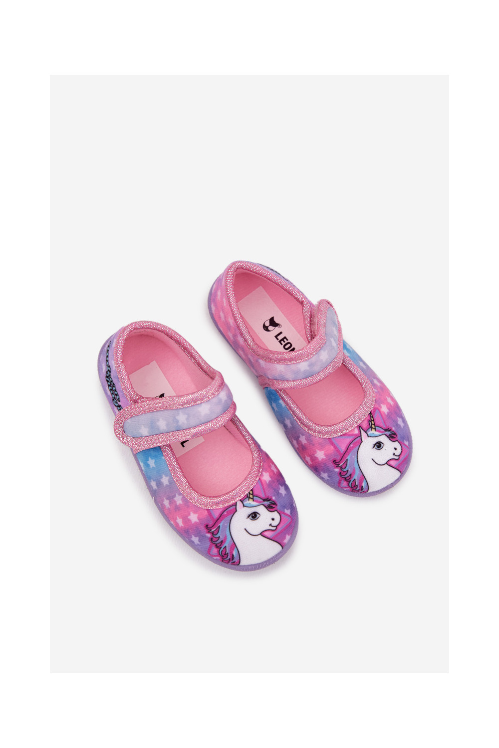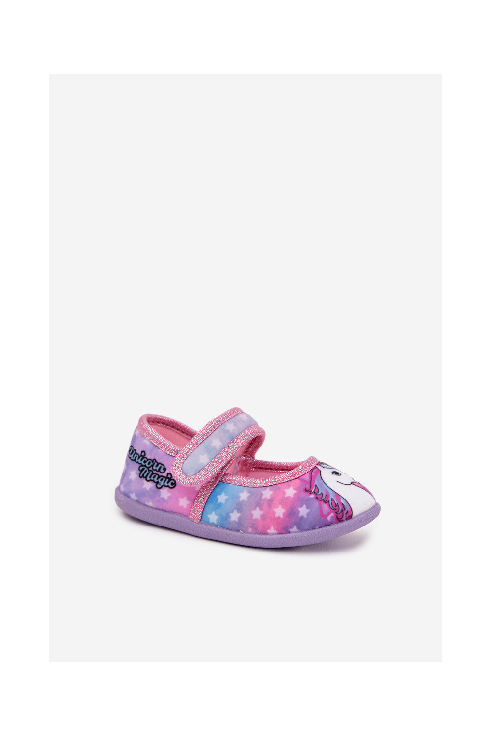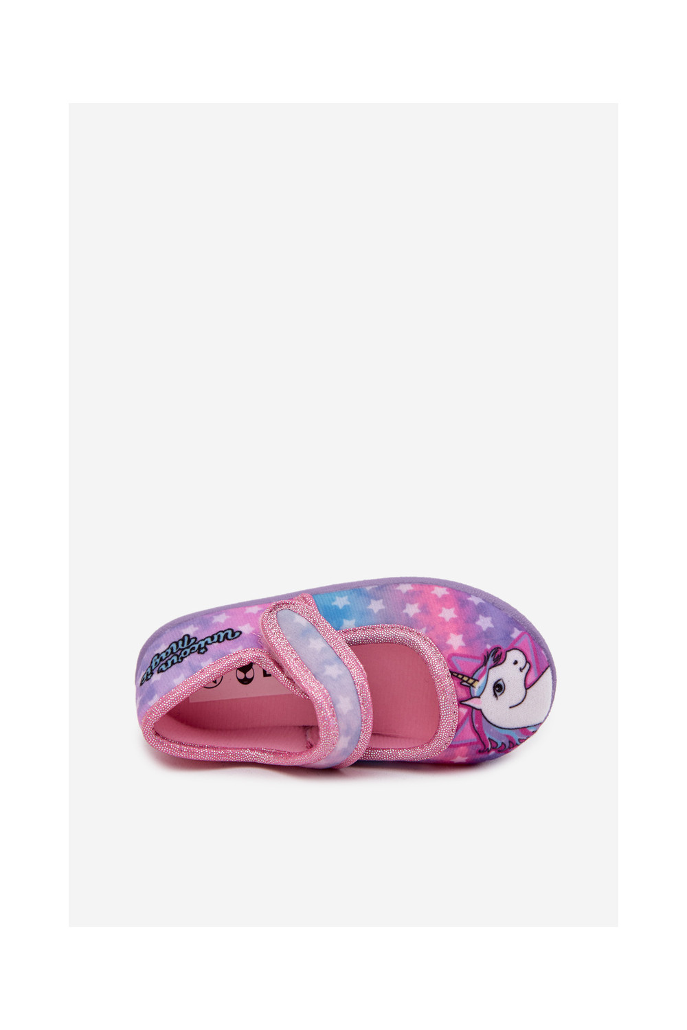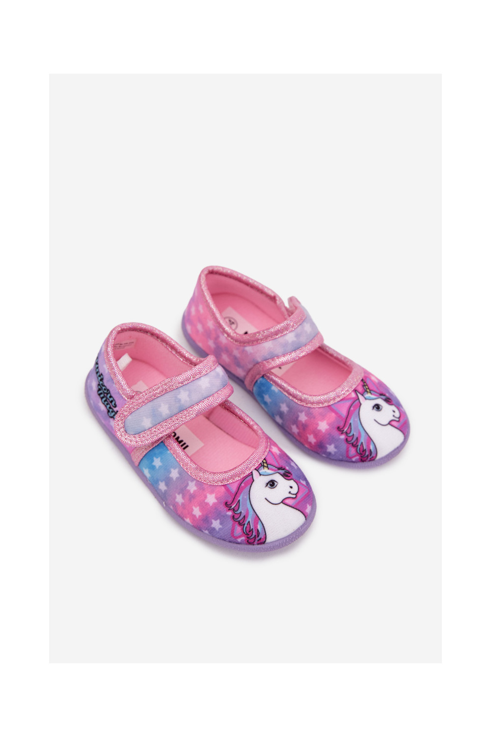 Ballerina Slippers For Girls With Velcro UNICORN Pink Silviera