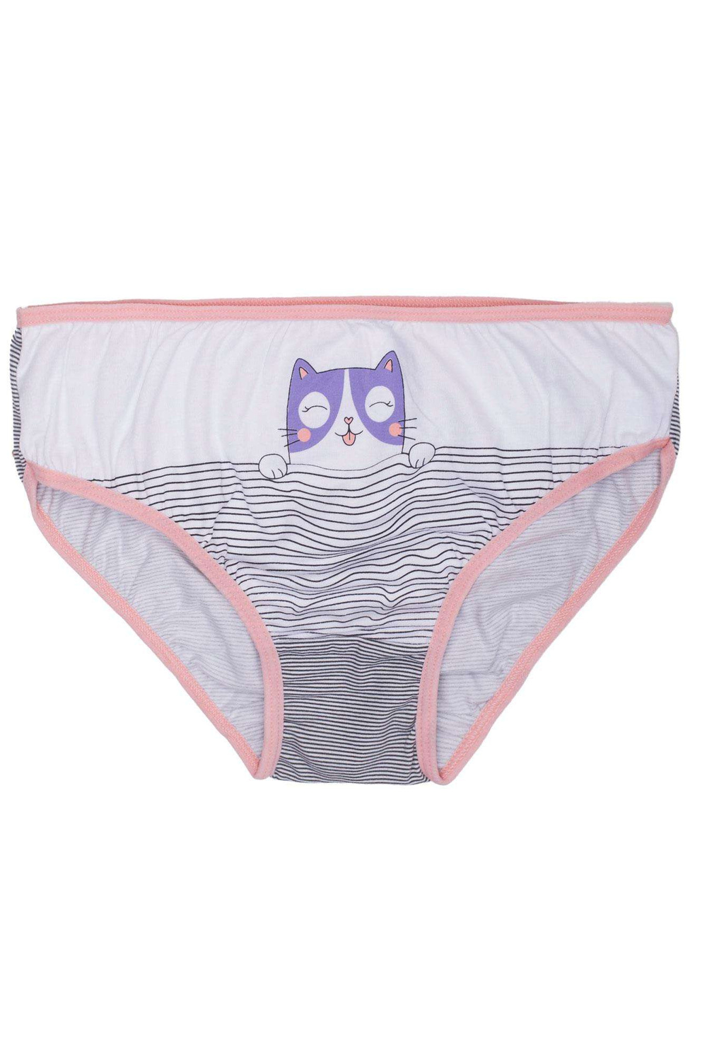 Valged ja virsikuvärvi mustriga tüdrukute aluspüksid.