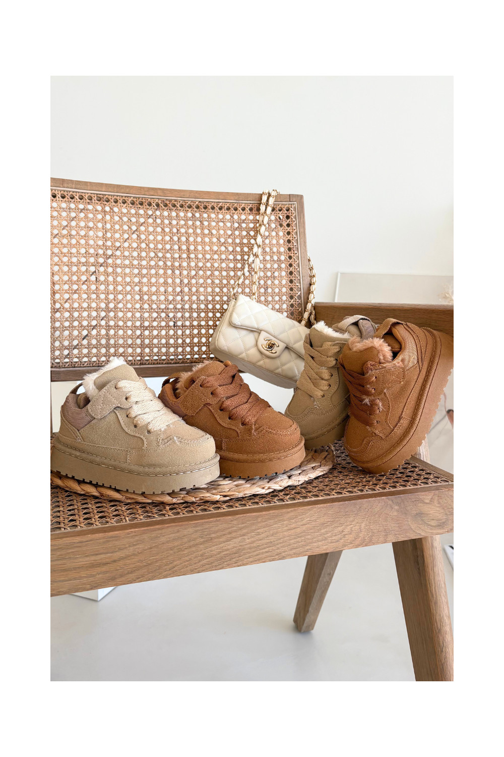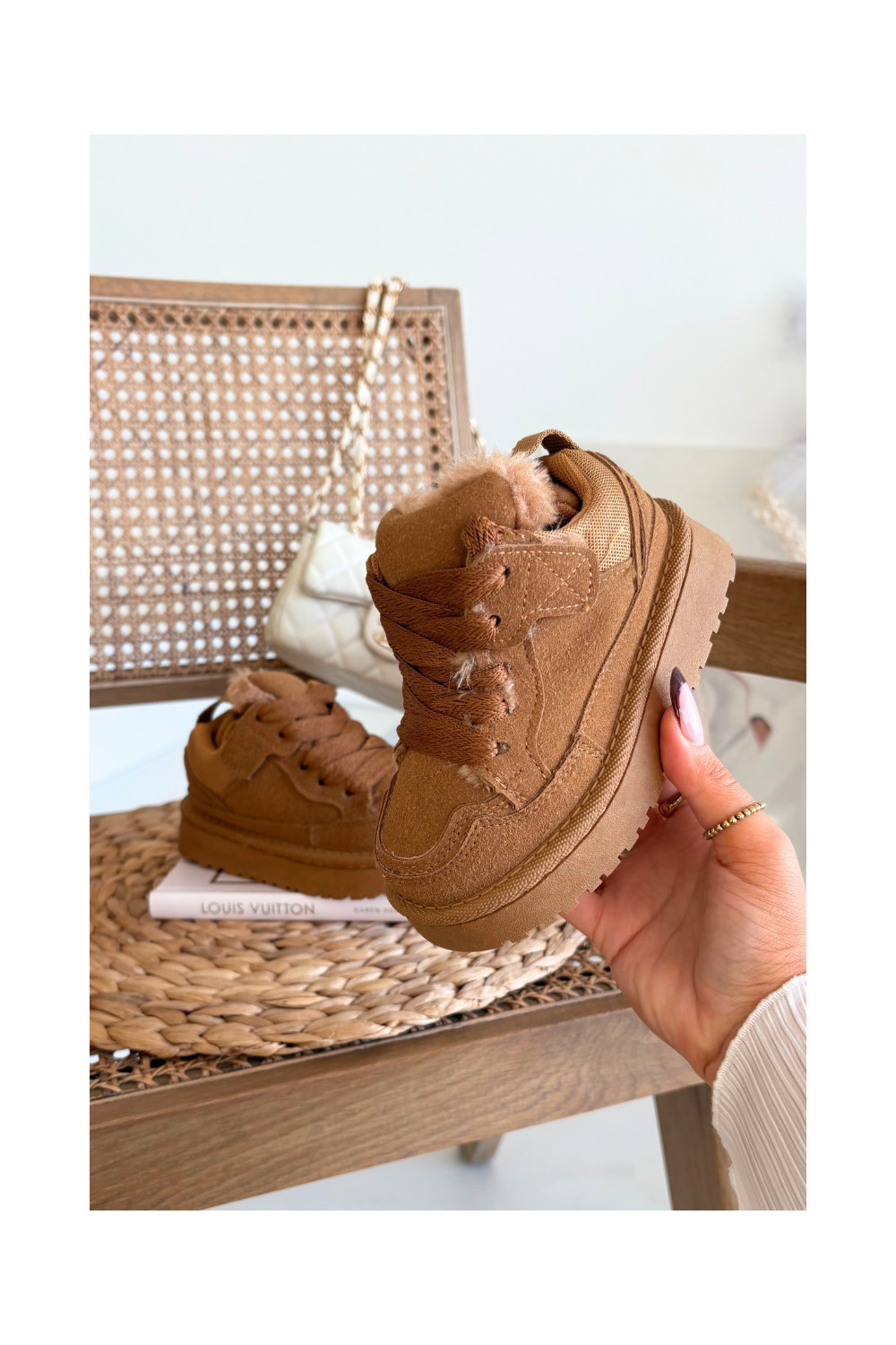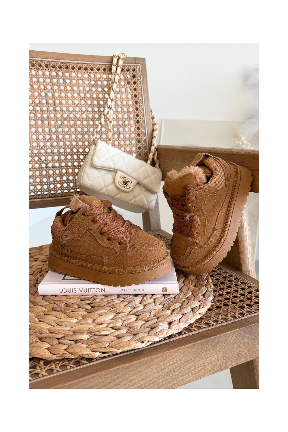 Pruna värv soe laste spordijalatsid karusnahaga Mireen