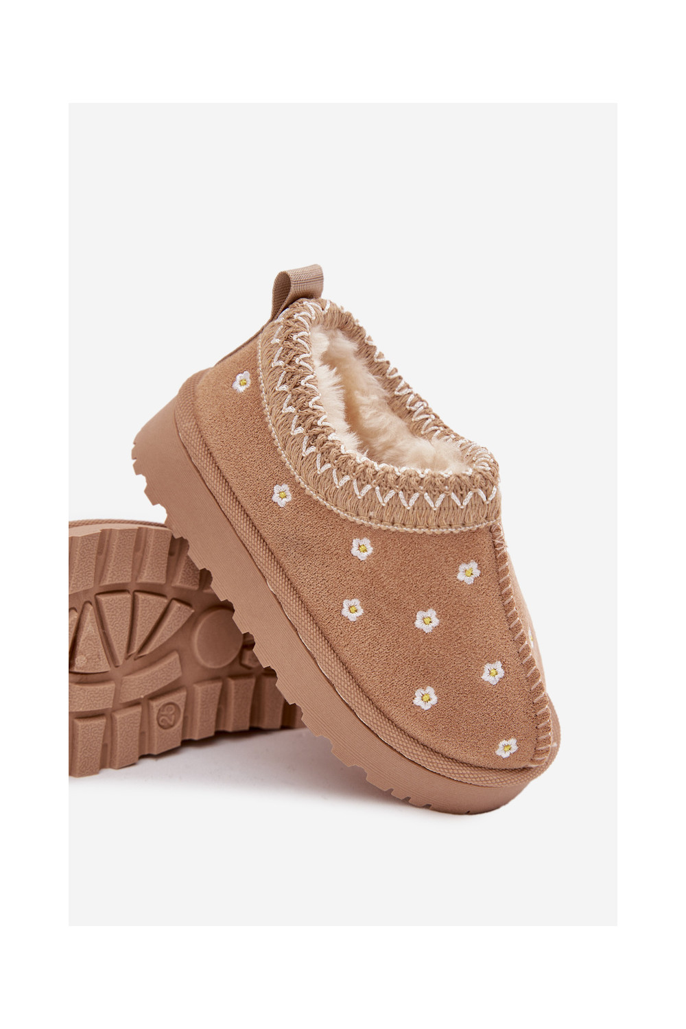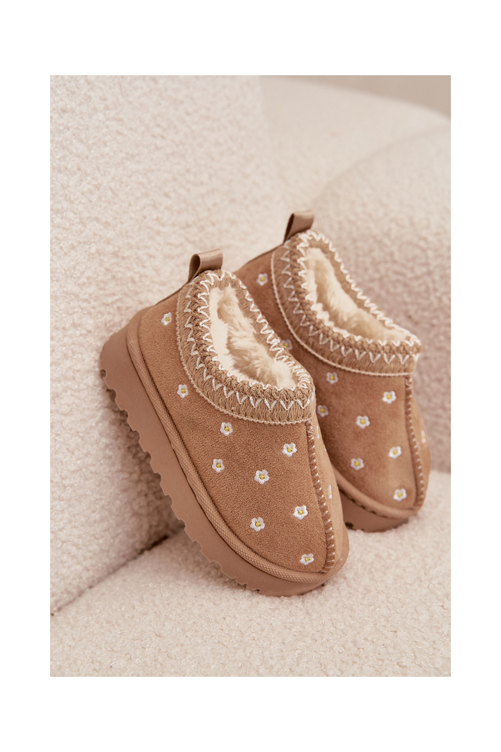 Laste lumesaapad lillemotiivide ja kõrvadega, soojustatud karusnahaga sees, Palina, liivakarva