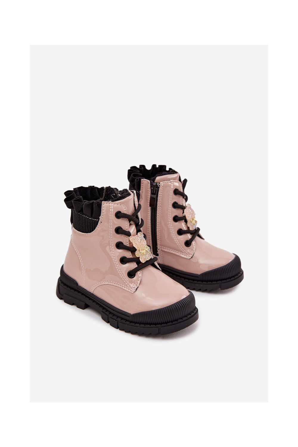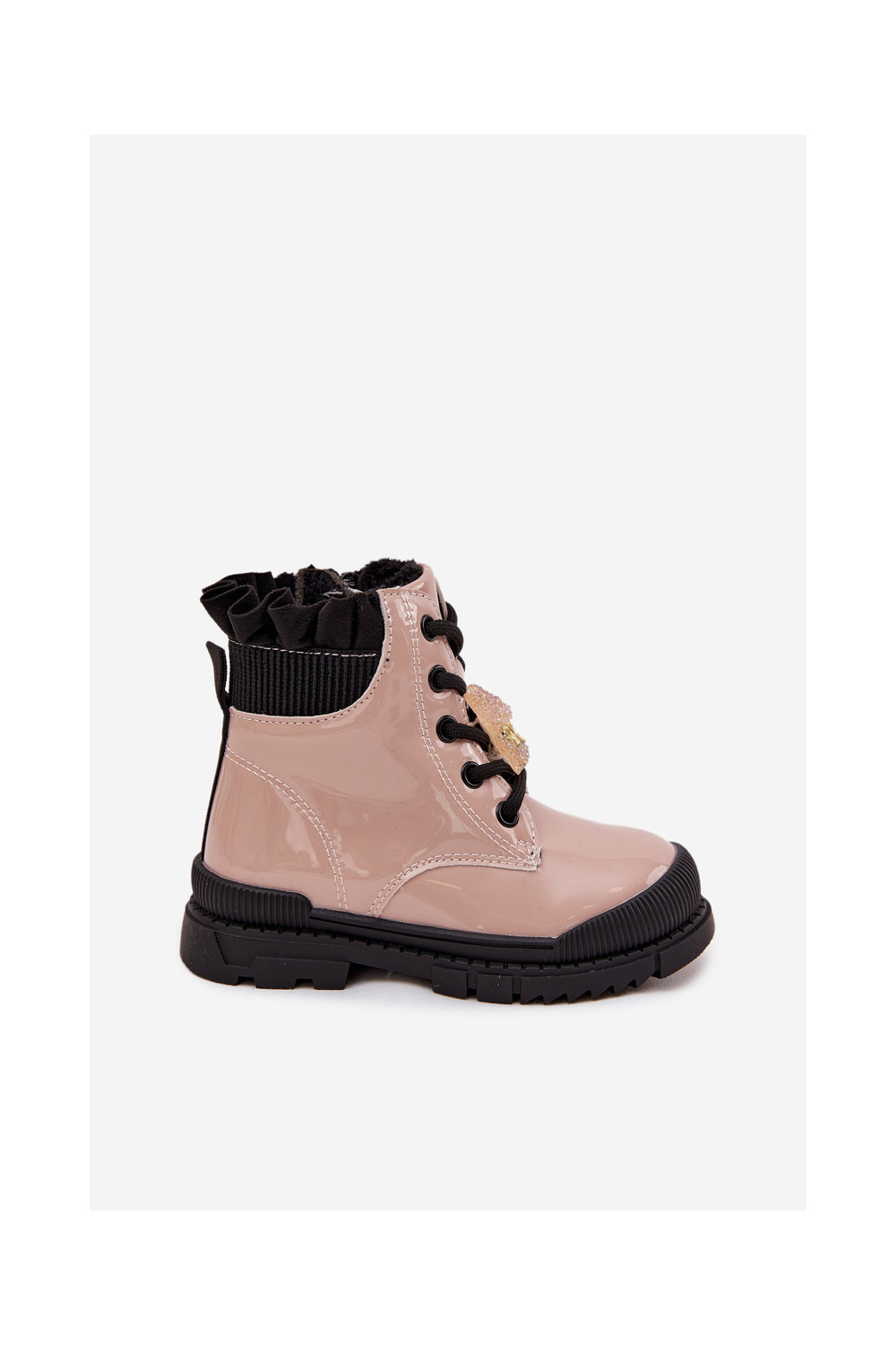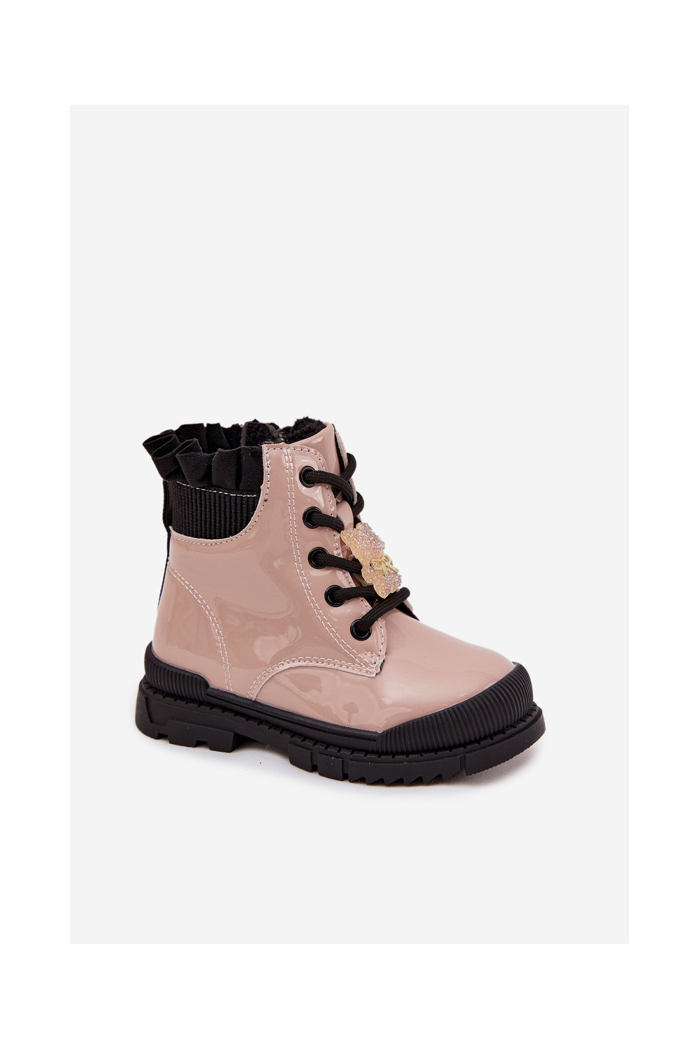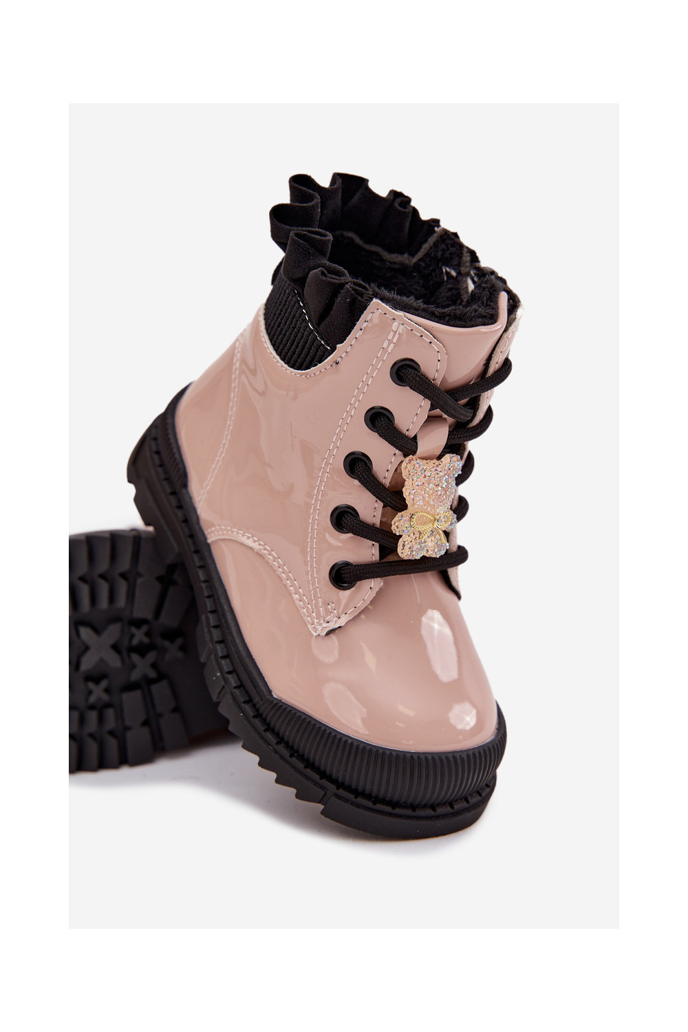 Laste lakitud soojad saapad kaunistustega "Karud" beež Fionessa