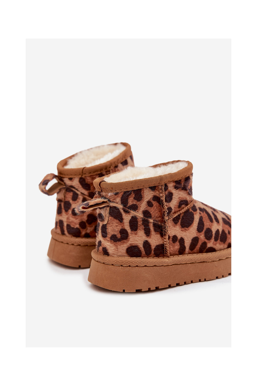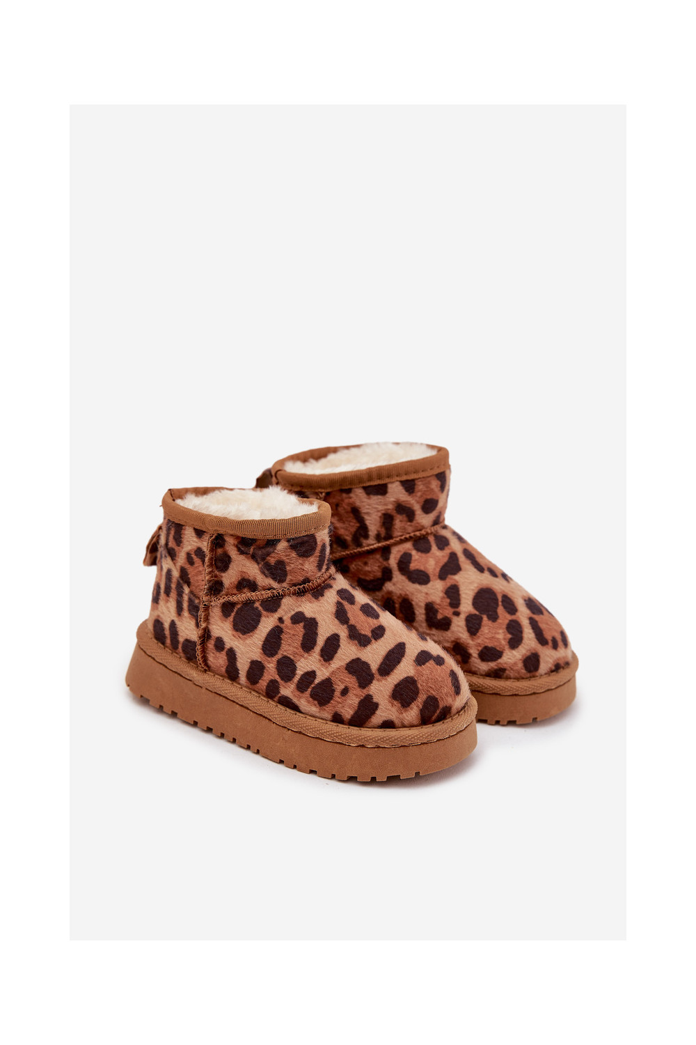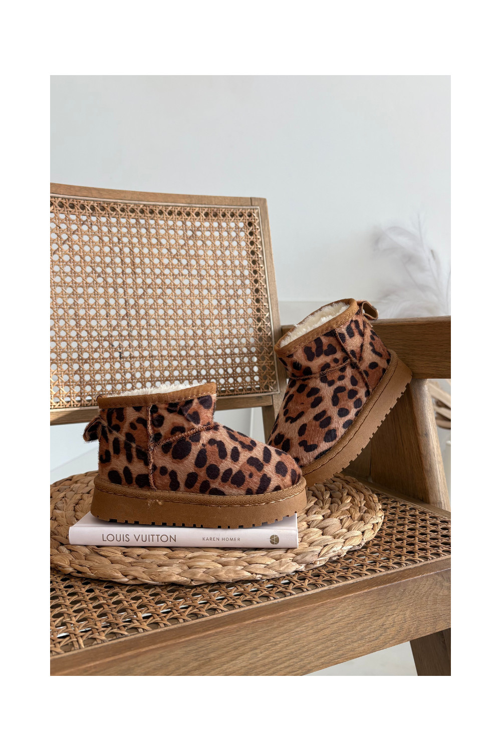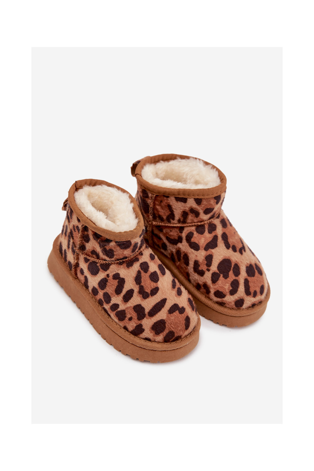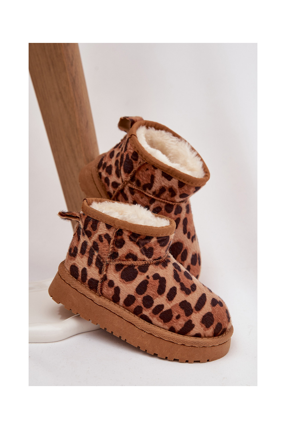 Children Youth Snow Boots Lined with Fur Panther Print Brown Mireya
