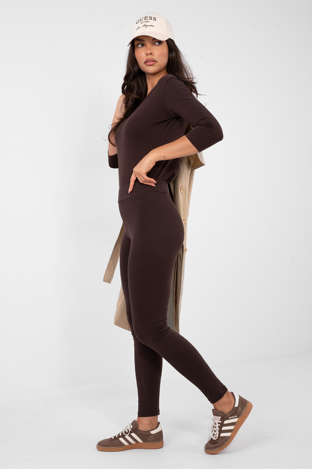 Mudel kannab S suurust. Mudeli mõõdud: pikkus 173 cm, rind 85 cm, talje 62 cm, puusad 95 cm .