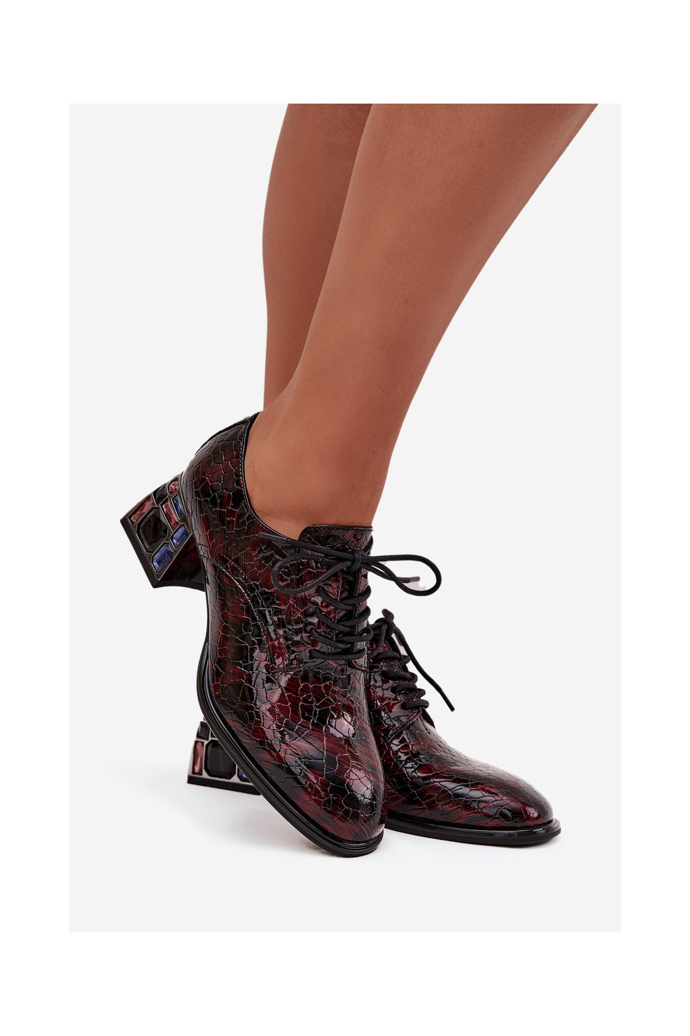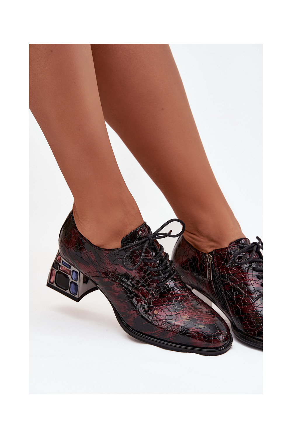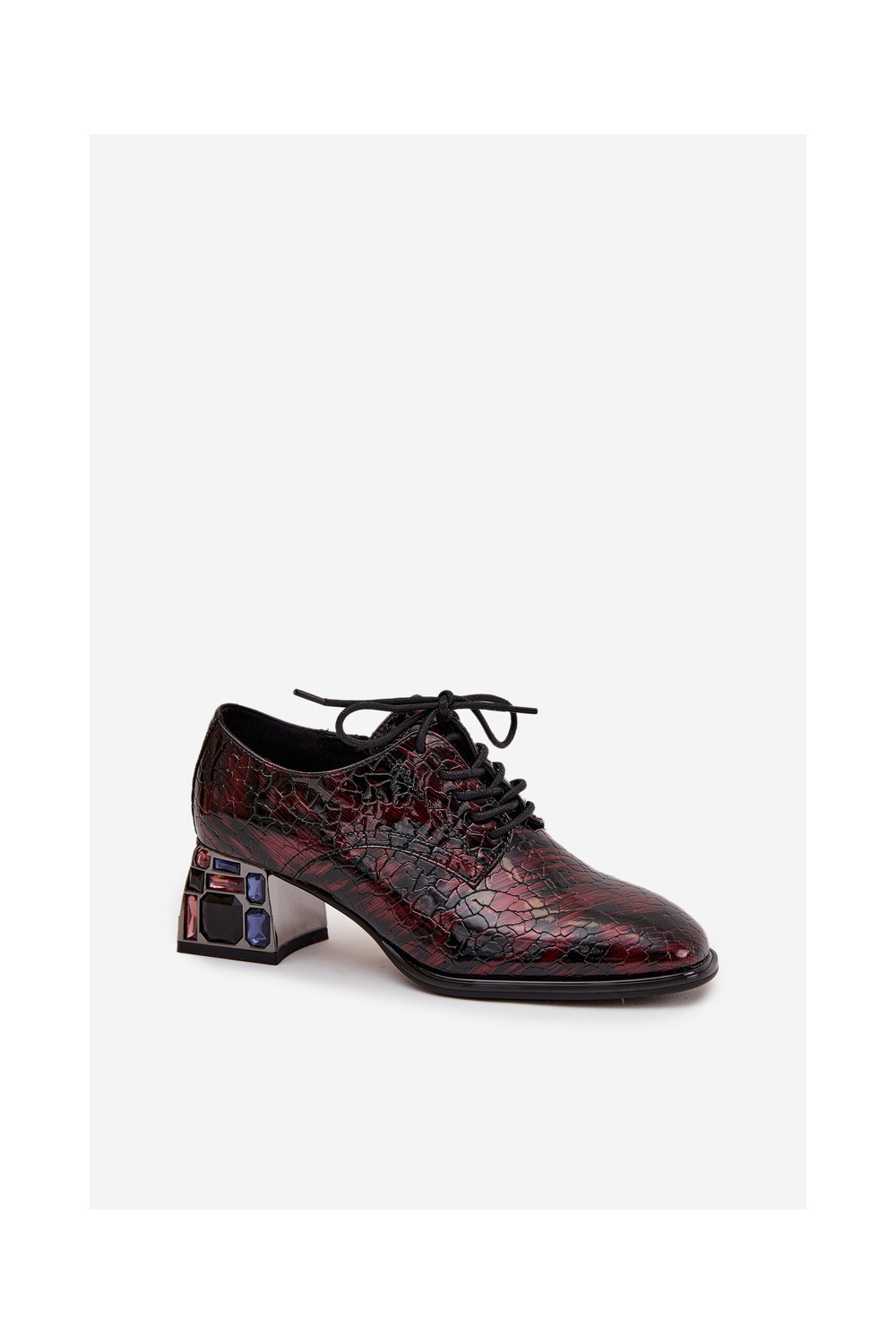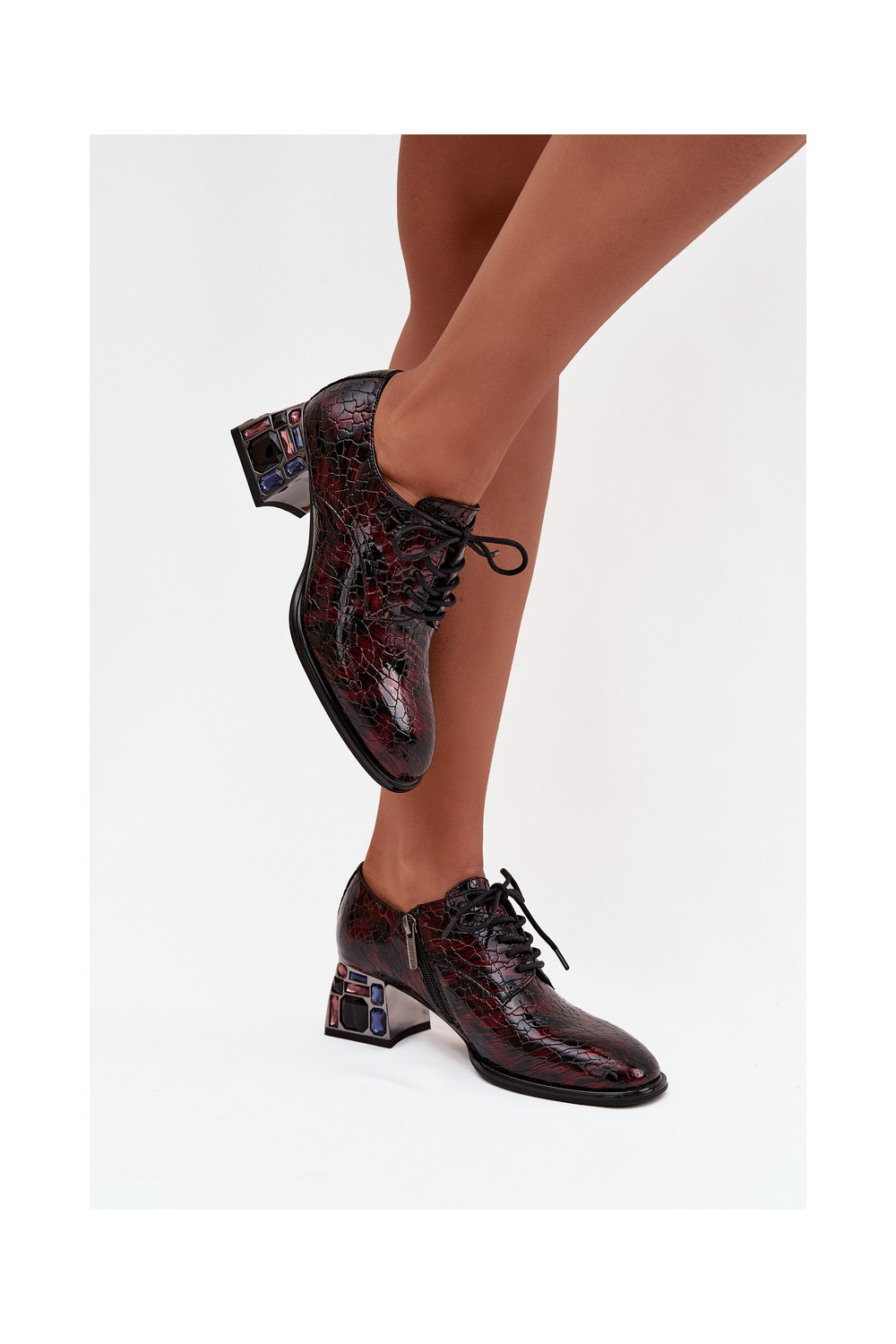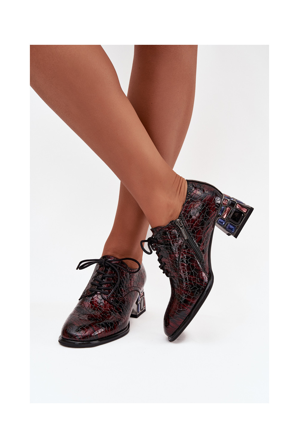 Lakitud naturaalnahast naisteriiklikud poolsaapad kontsade ja säravate äärtega Artiker 57C0073 bordoopunased